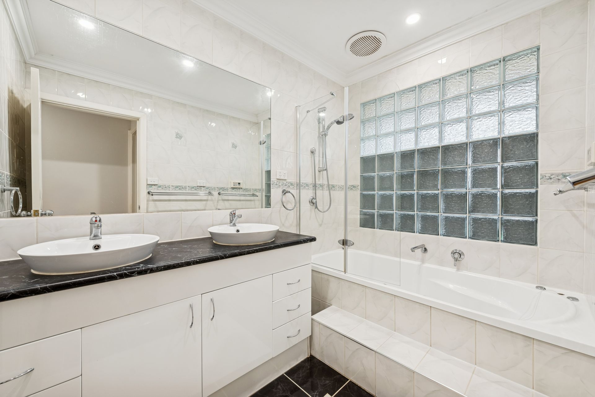 • Bathroom with shower over spa bath & double vanity