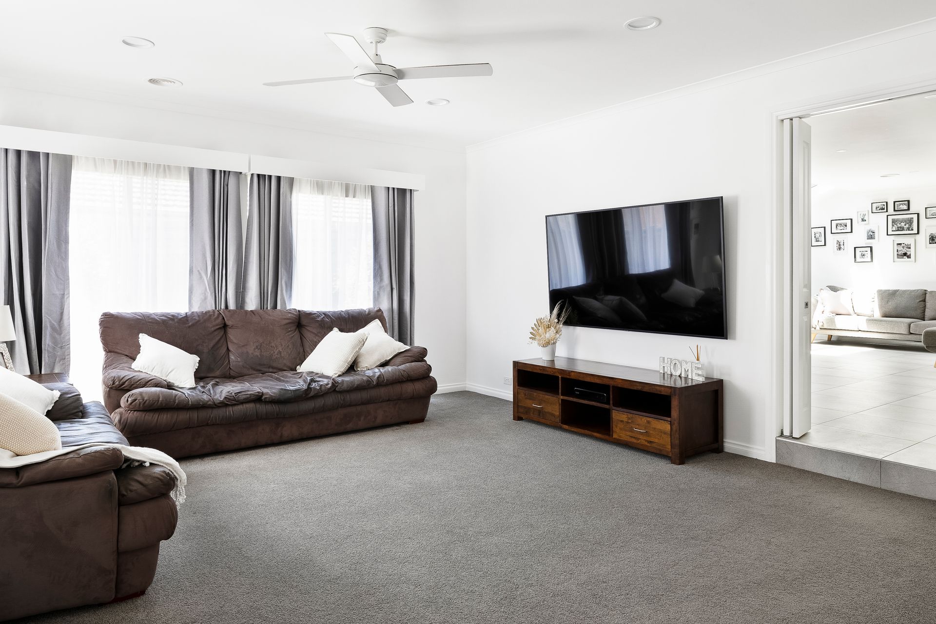 Positioned between abundant recreational delights and esteemed education, a modest façade immediately reveals a tranquil master suite (built-in robes) & ensuite, hinting at the fusion of rest and play beyond. Abundant living space with new carpet flows throughout delivering a sleek colour palette and simply sophisticated atmosphere, bolstering