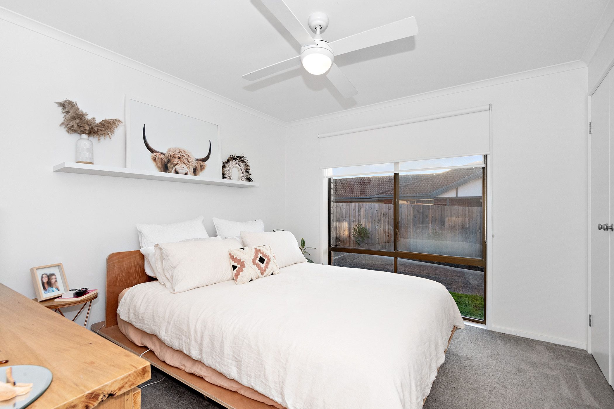 Soft carpet floors bring warmth to both bedrooms, and the master is equipped with ceiling fans, a built-in double robe and a wall panel heater.