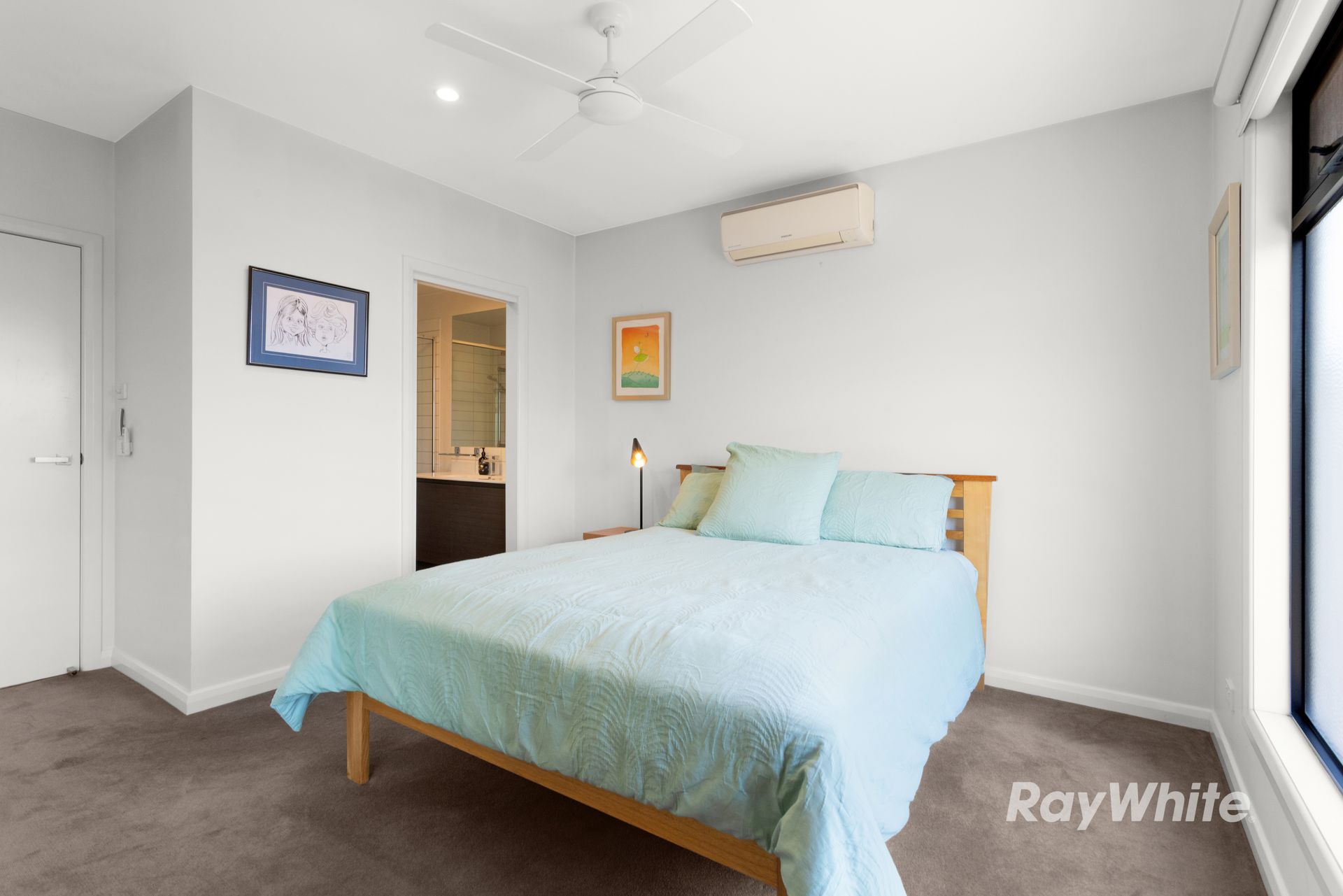Both bedrooms feature mirrored built-in robes and ceiling fans, with the main offering a private ensuite and split system comfort. A second bathroom with toilet adds everyday practicality, while a further split system in the living area ensures year-round ease.
