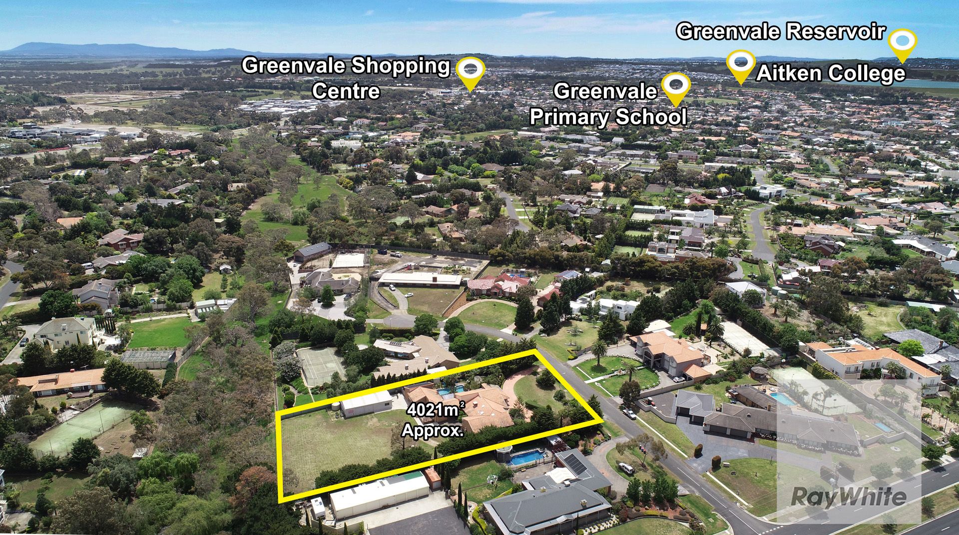 If you are seeking space, quality, location and value then look no further. Situated in one of the most desirable pockets of Greenvale & on approx 4021 m2 of prime land this stunning single storey residence which has had a face and internal lift with renovations throughout, it should be on the top of your list to view. Boasting a manicured front yard with a semi circular driveway for comfortable in & out access you are greeted by a fabulous entry to the home with towering high ceilings, open formal lounge and dining room flooded with natural light, bright spacious timber kitchen with ample cupboard space, walk in pantry with an adjoining meals area and family room with an open fire place which opens up via your stacker doors out to your timber decking entertainment zone overlooking your prime land of a backyard which has potential to place a tennis court/ granny flat or a great opportunity for a home business with a potential subdivision(stca) plus a separate rumpus room for those who want that extra family living with a built in bar, servery to Alfresco area & Cellar.