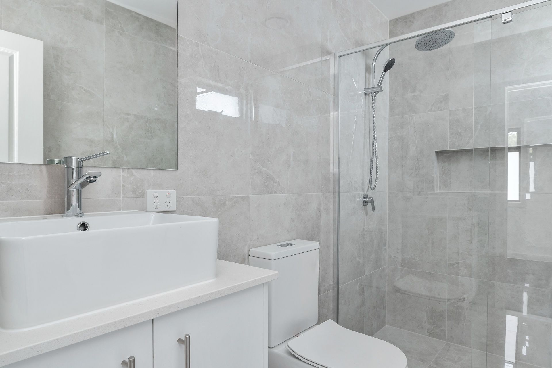 Upstairs is equally impressive, with a large rumpus area offering additional storage space. There are two generous bedrooms, each featuring mirrored built-in robes. And a stylish family bathroom. The third bedroom is a standout, with its own walk-in robe and ensuite, providing privacy and comfort.