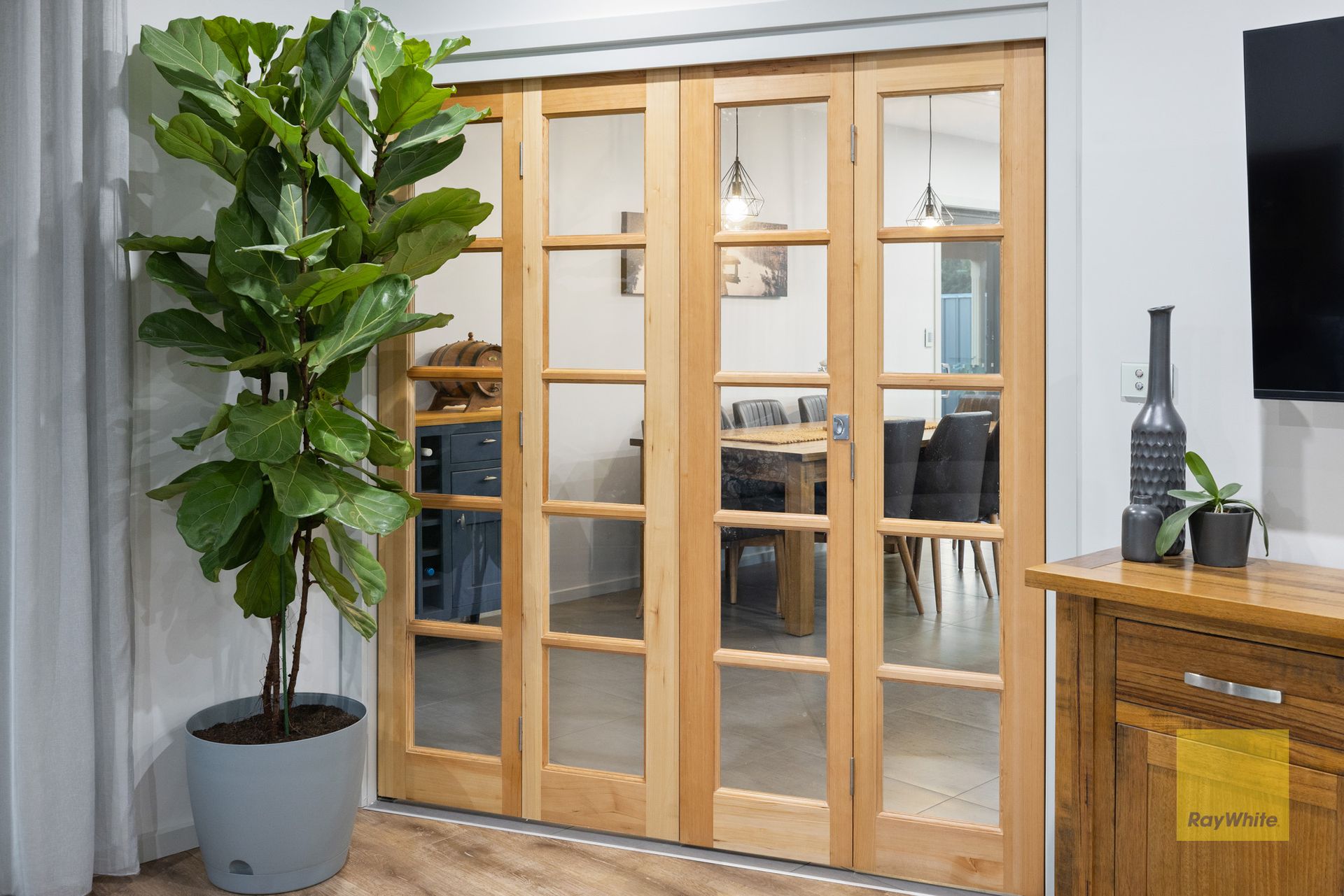 The intelligent layout begins with a formal lounge at the entrance, providing a welcoming retreat for guests or a peaceful escape from the main living areas. At the heart of the home lies a spacious open-plan kitchen, dining, and living zone that effortlessly connects to a stunning covered, decked entertainment area. The kitchen is a chef's delight, featuring quality stainless steel appliances, a wall oven, dishwasher, functional design, pantry, island bench, separate hot water heater and ample storage options.