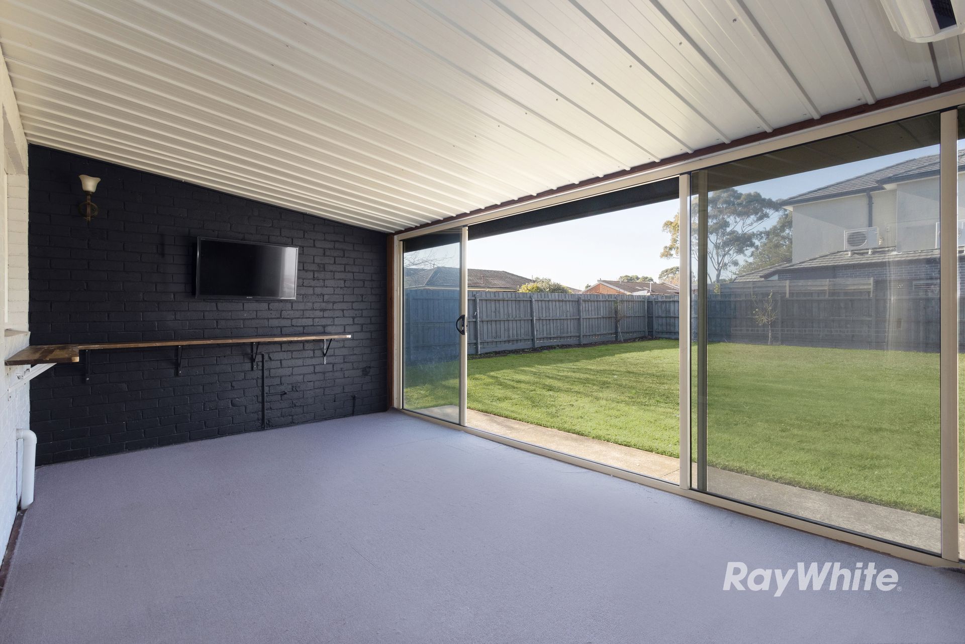 • Versatile sunroom or home office with wall-mounted TV-ideal for remote work or extra living space