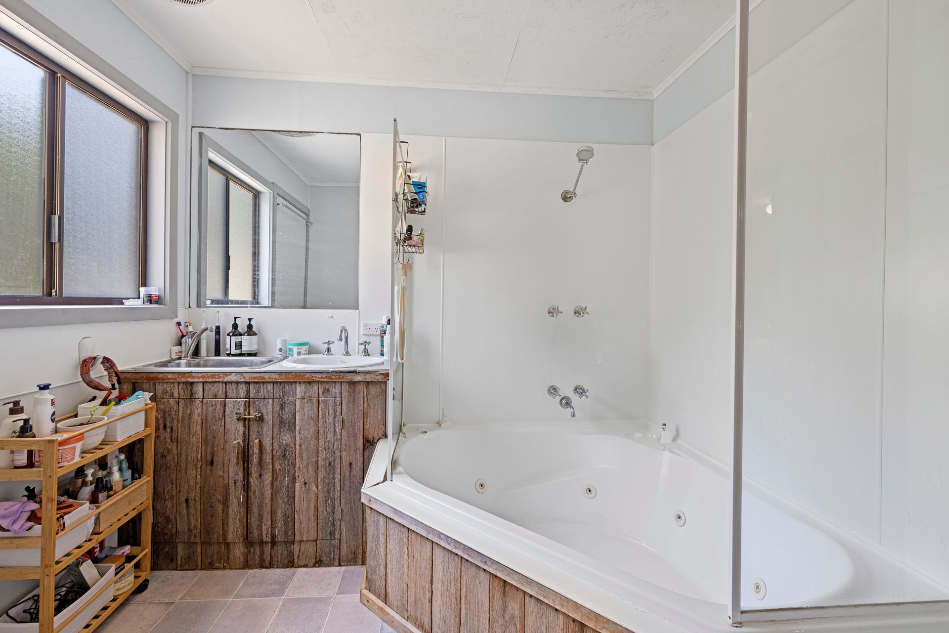 Venturing down the hallway, you'll discover three cozy bedrooms and a central bathroom that boasts a shower over a large corner bath.