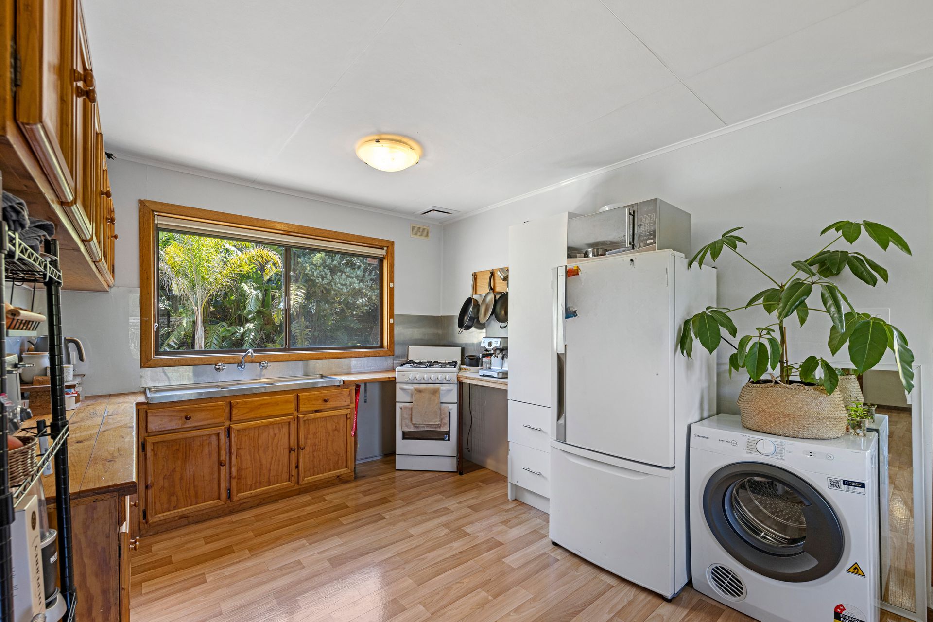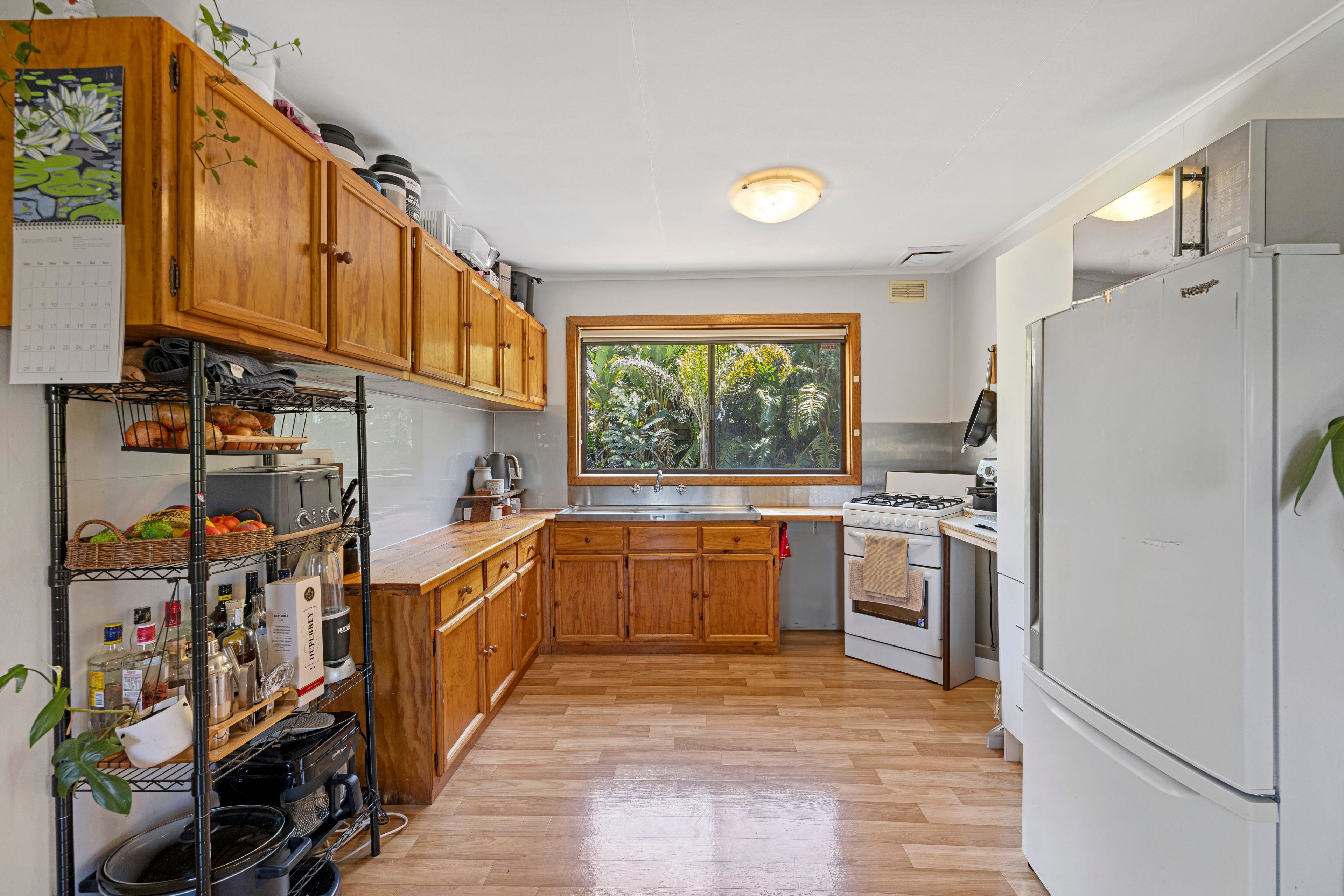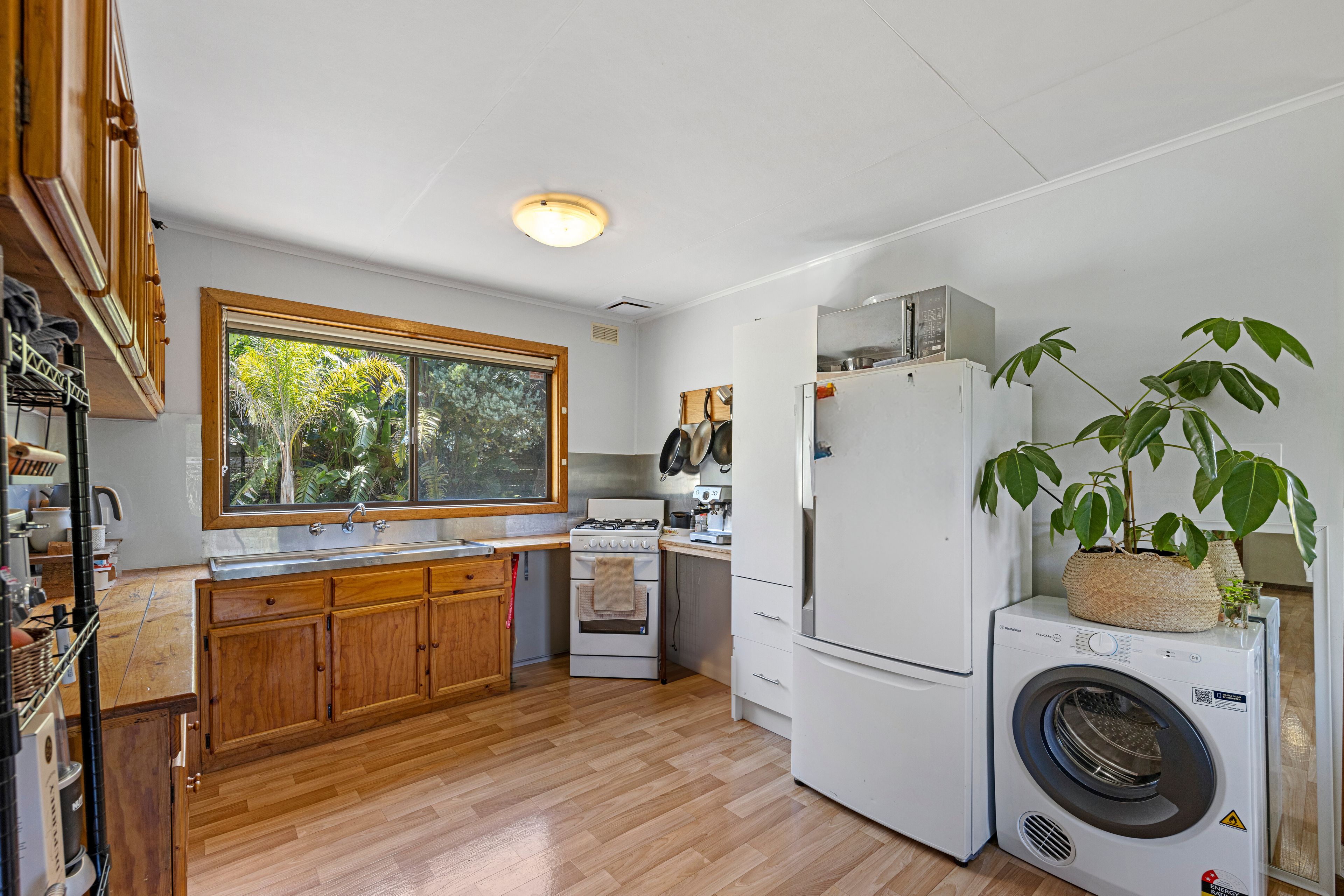 As you step into this inviting home, you're welcomed by a light-filled and open-plan kitchen and living space. The kitchen is equipped with all the essentials, featuring an electric cooktop and oven, along with ample cupboard space for all your culinary needs.