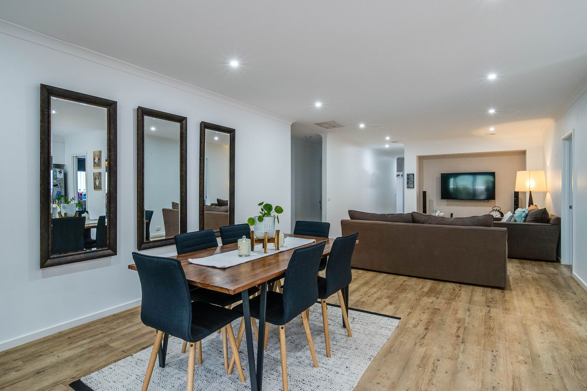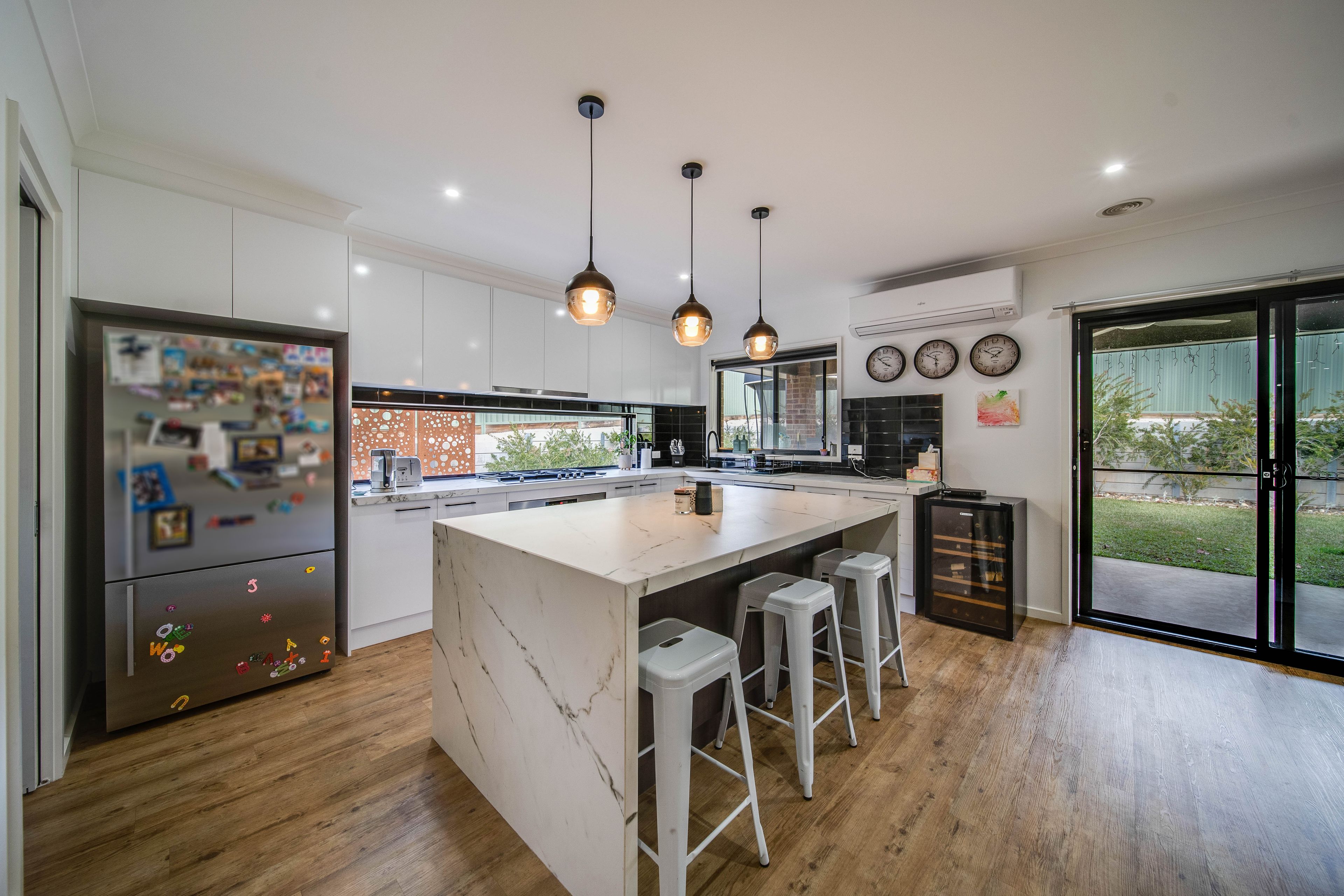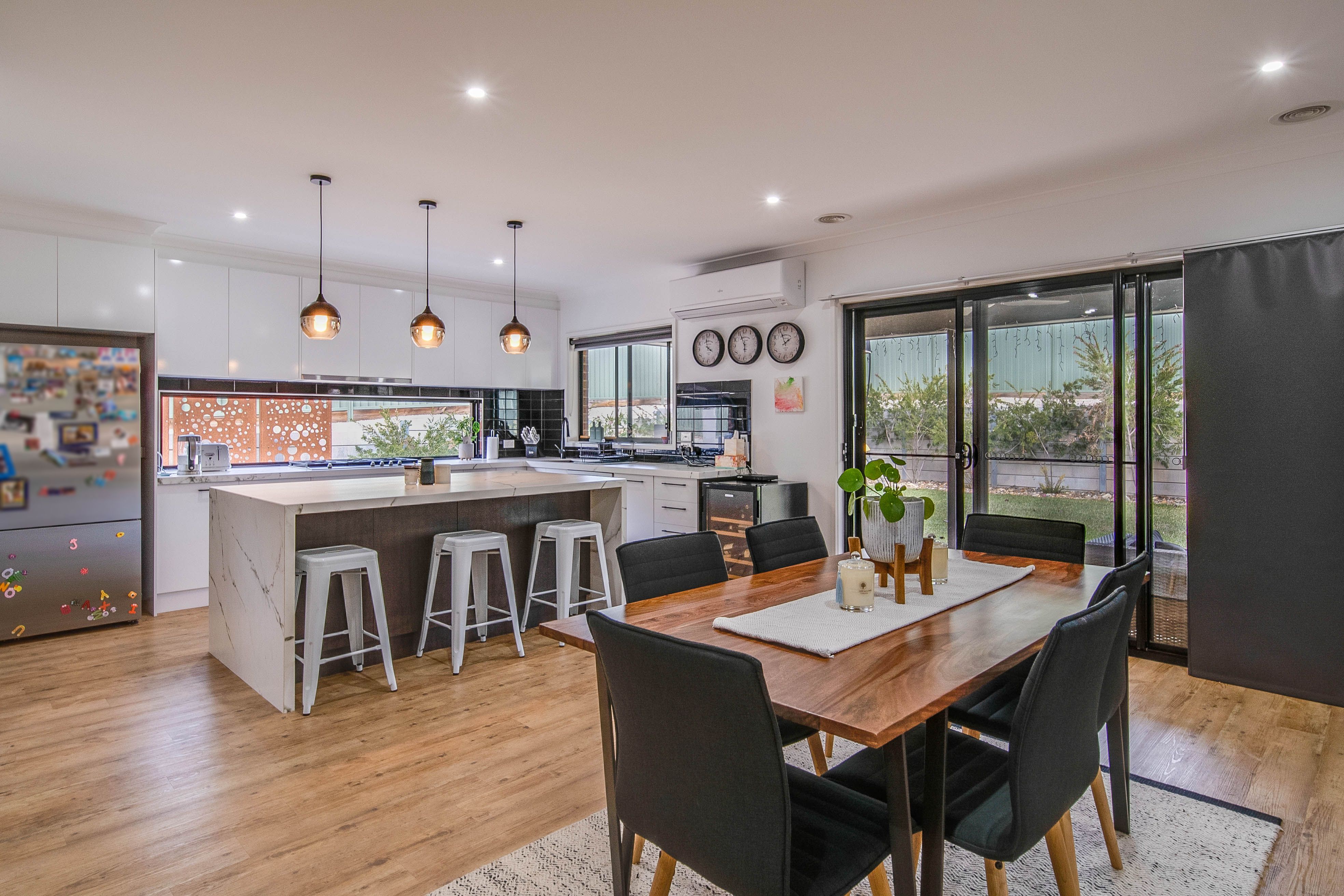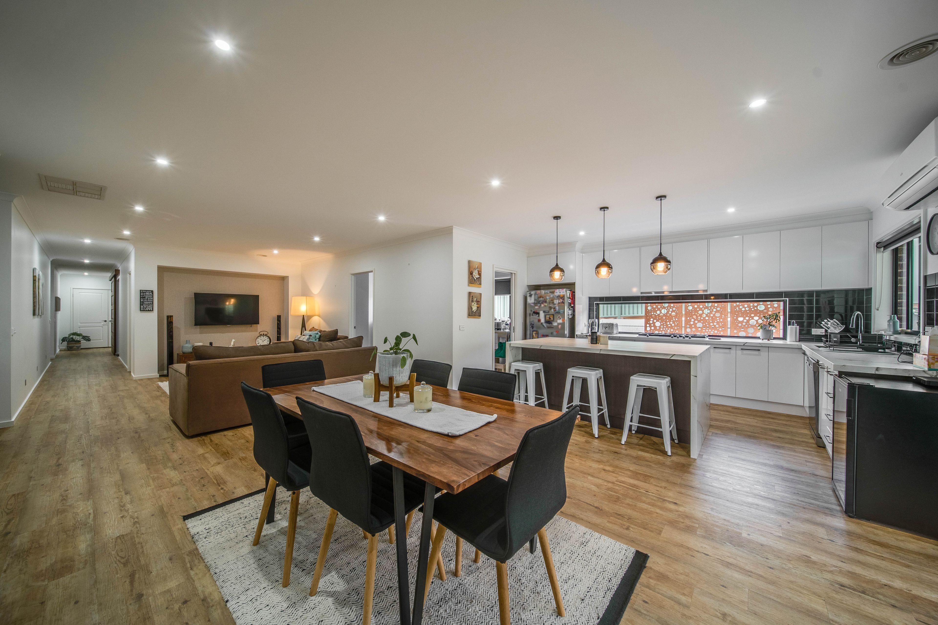 The open plan kitchen, living and dining space presents with a stylish and quality finish the kitchen offers a large walk in pantry, island bench and an abundance of bench and storage space throughout.