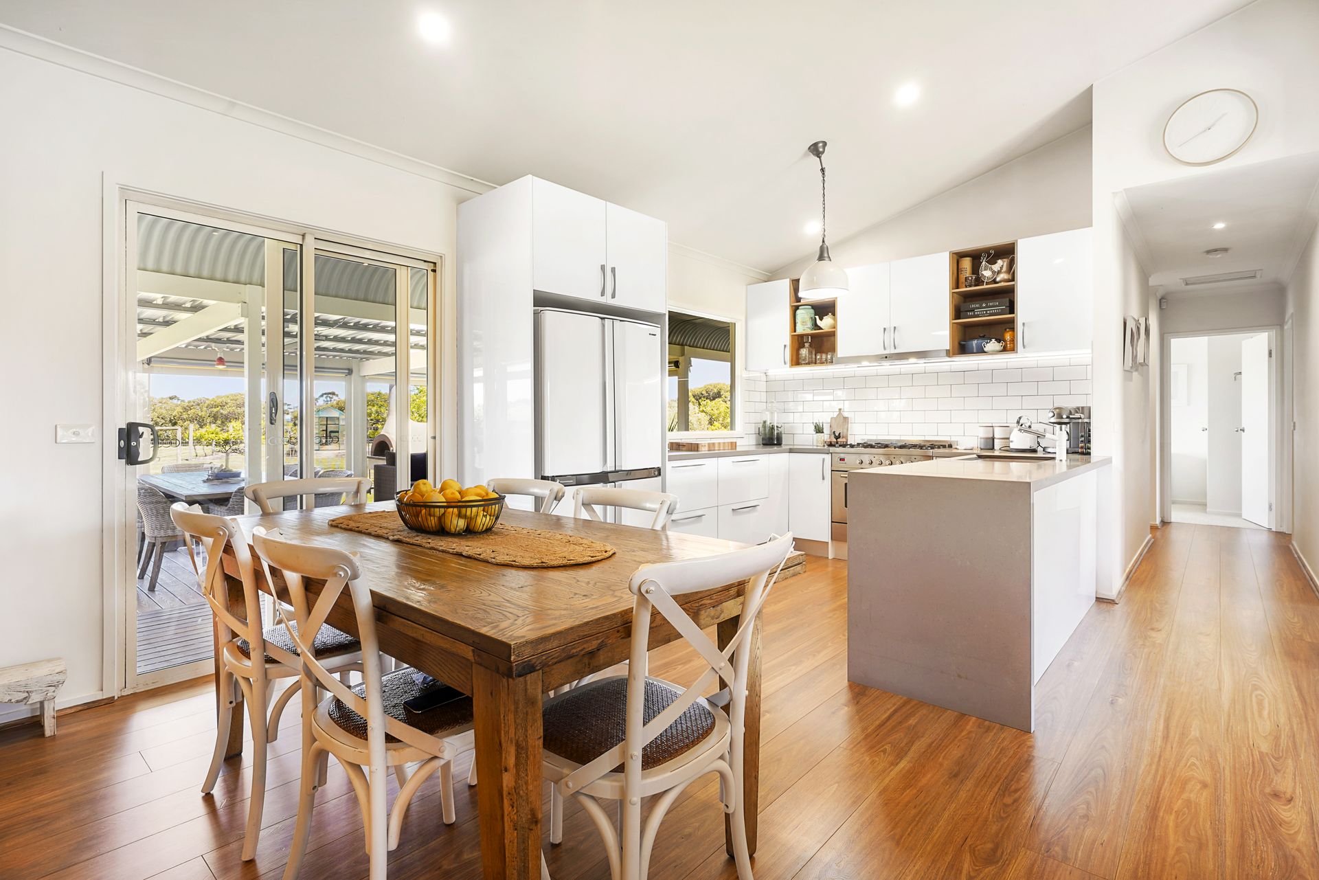 A family home offering 4 bedrooms plus study, 2 bathrooms and modern kitchen with dining area provides views of every room to enjoy the many aspects of the property. Spacious lounge area overlooking the rose garden plus outdoor covered dining/entertaining area with built-in bbq kitchen, large pizza oven and fire pit area capturing gorgeous sunset views.