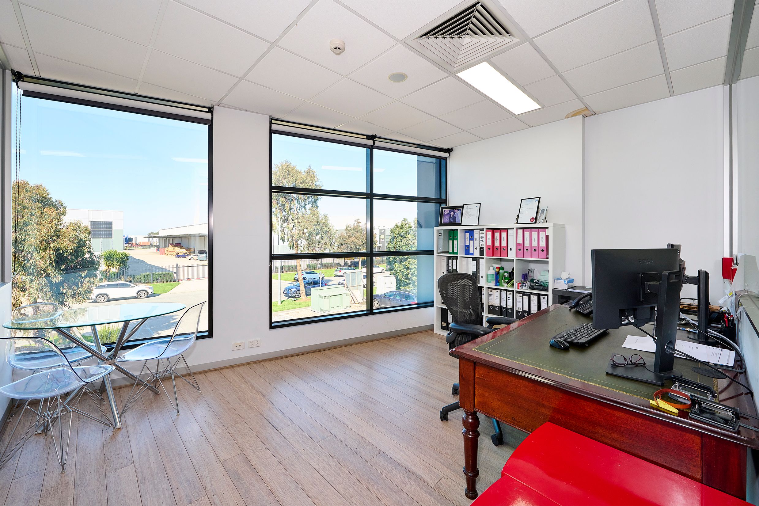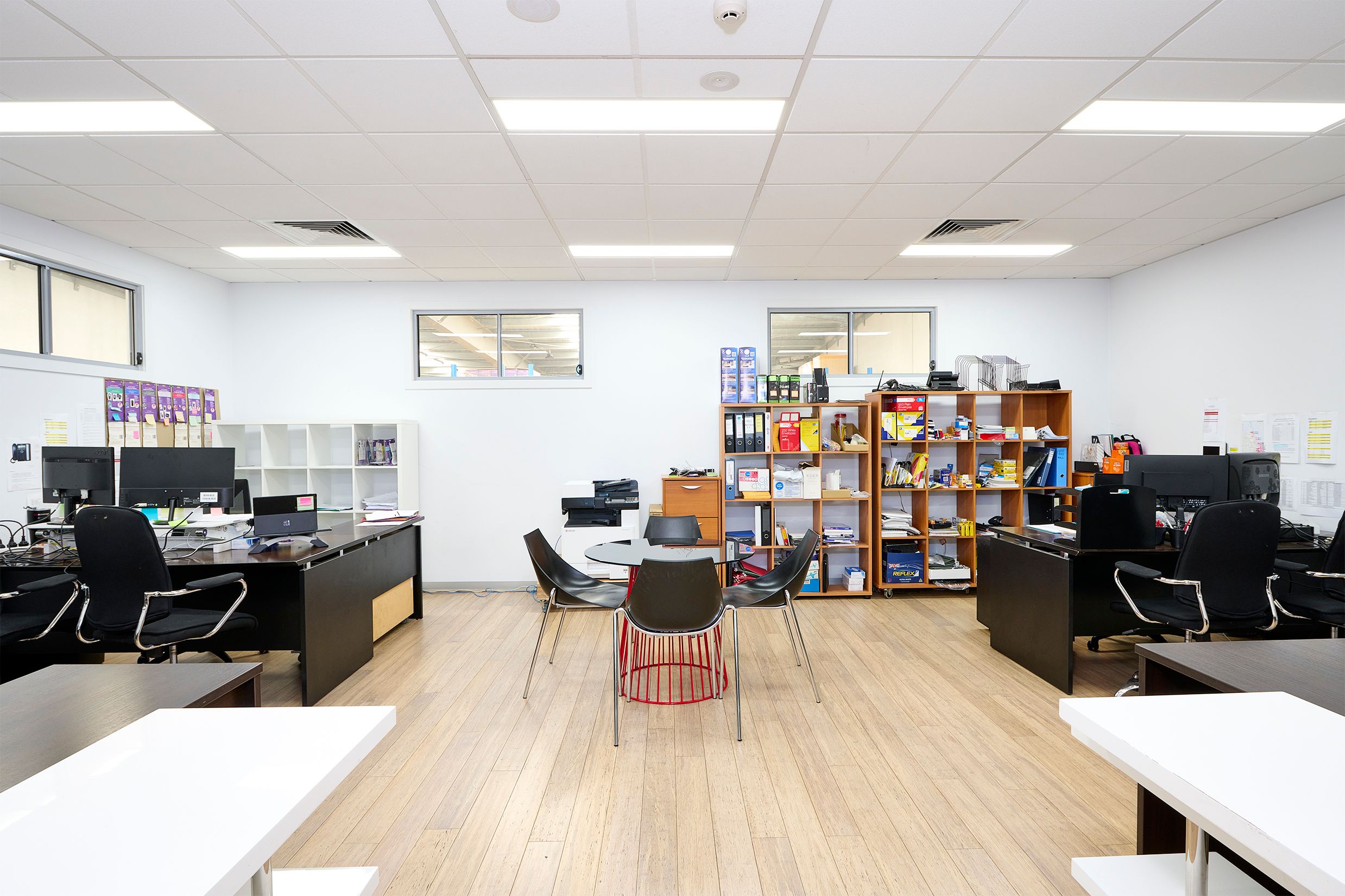 Total building area is 476 sqm*. Spread over two (2) levels, the property offers a reception area, boardroom, factory or warehouse area and a number of office spaces. Ceiling clearance is 6.9m * at the centre of the warehouse area. Toilets are located on both the ground and first floors and there are two (2) staff break areas with kitchenette facilities.