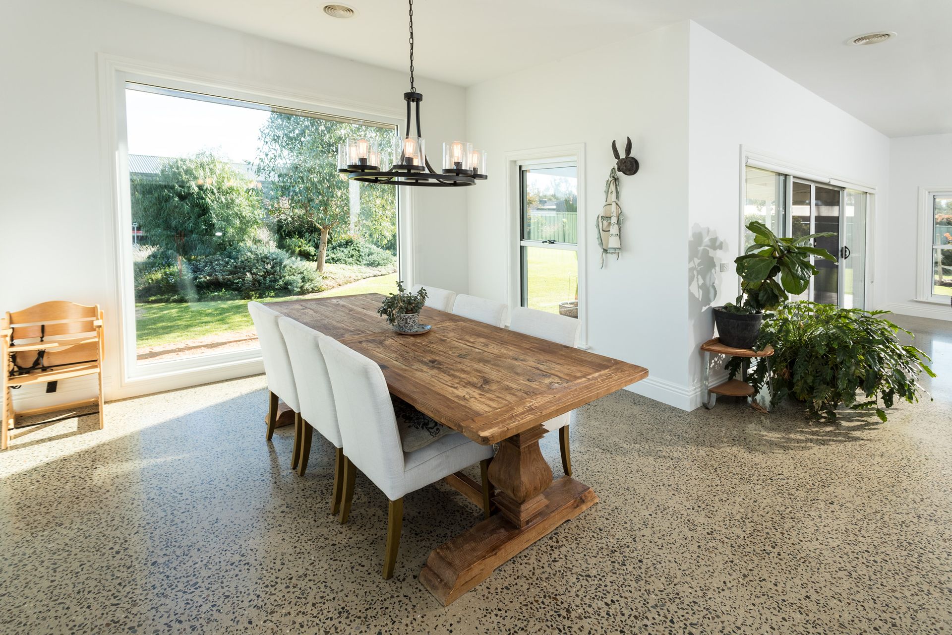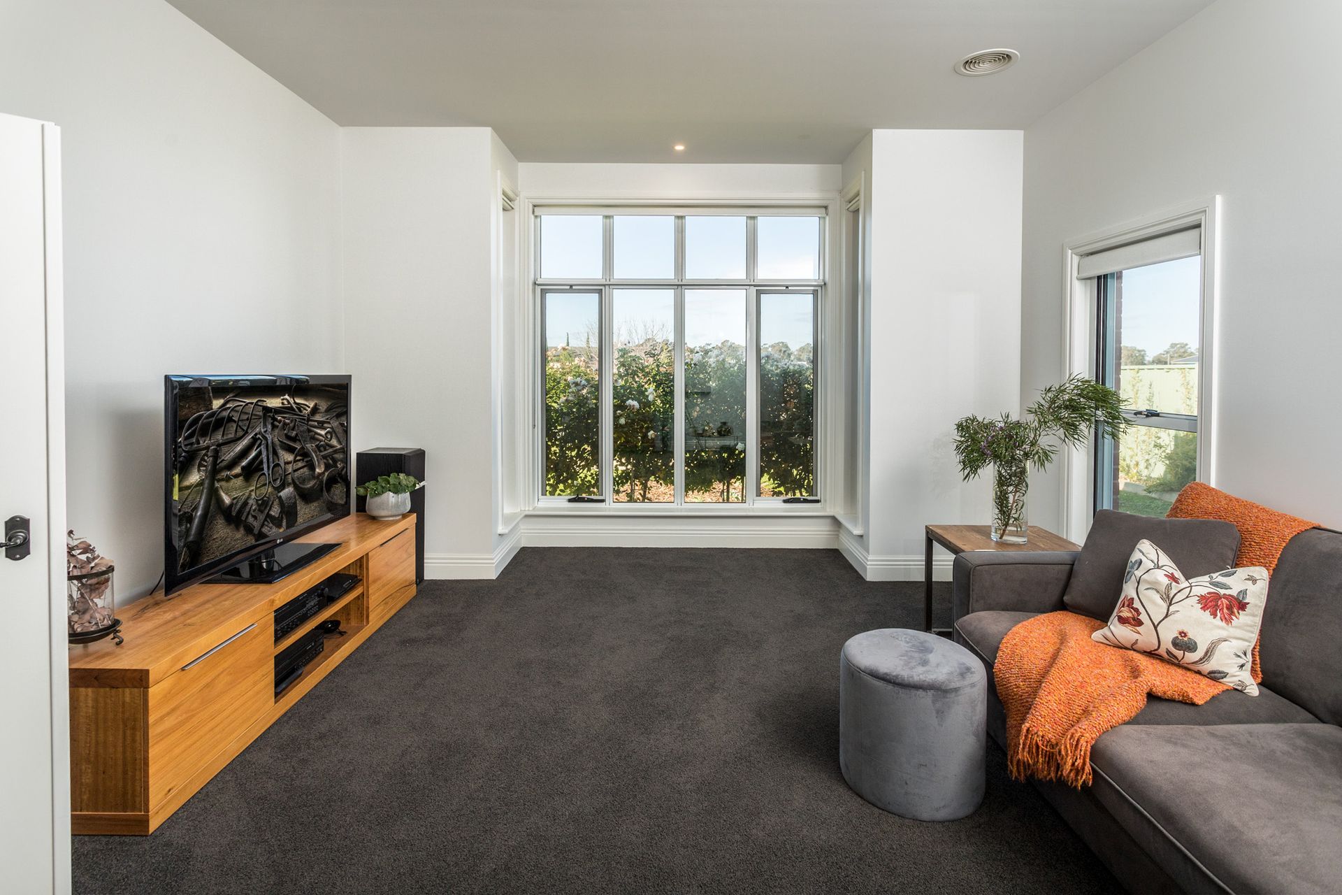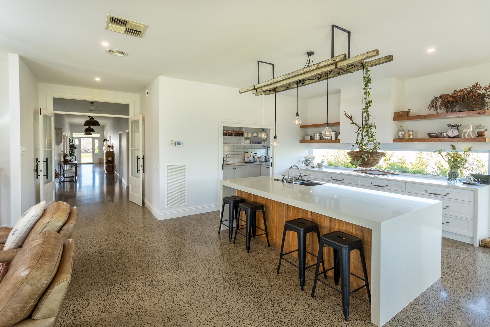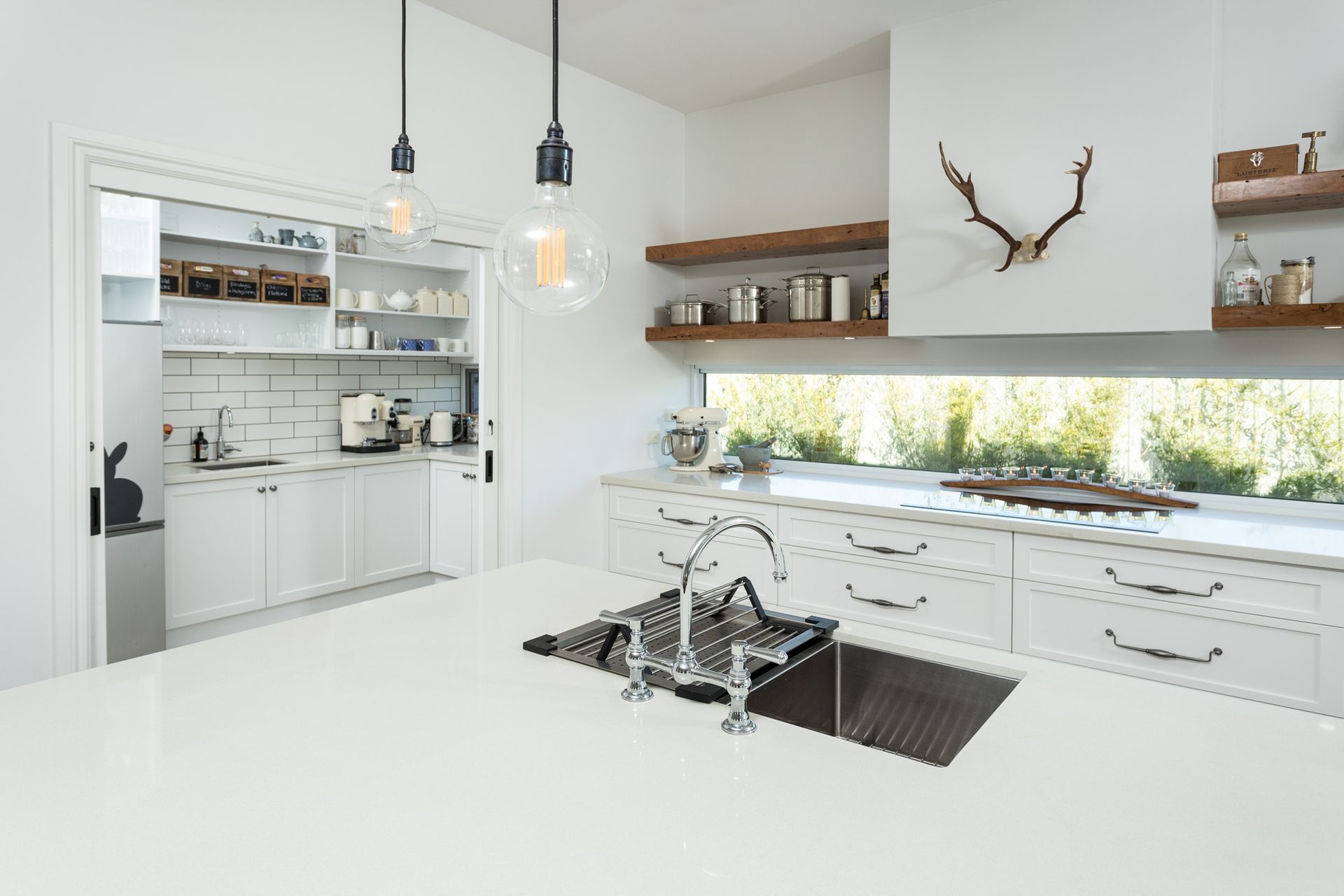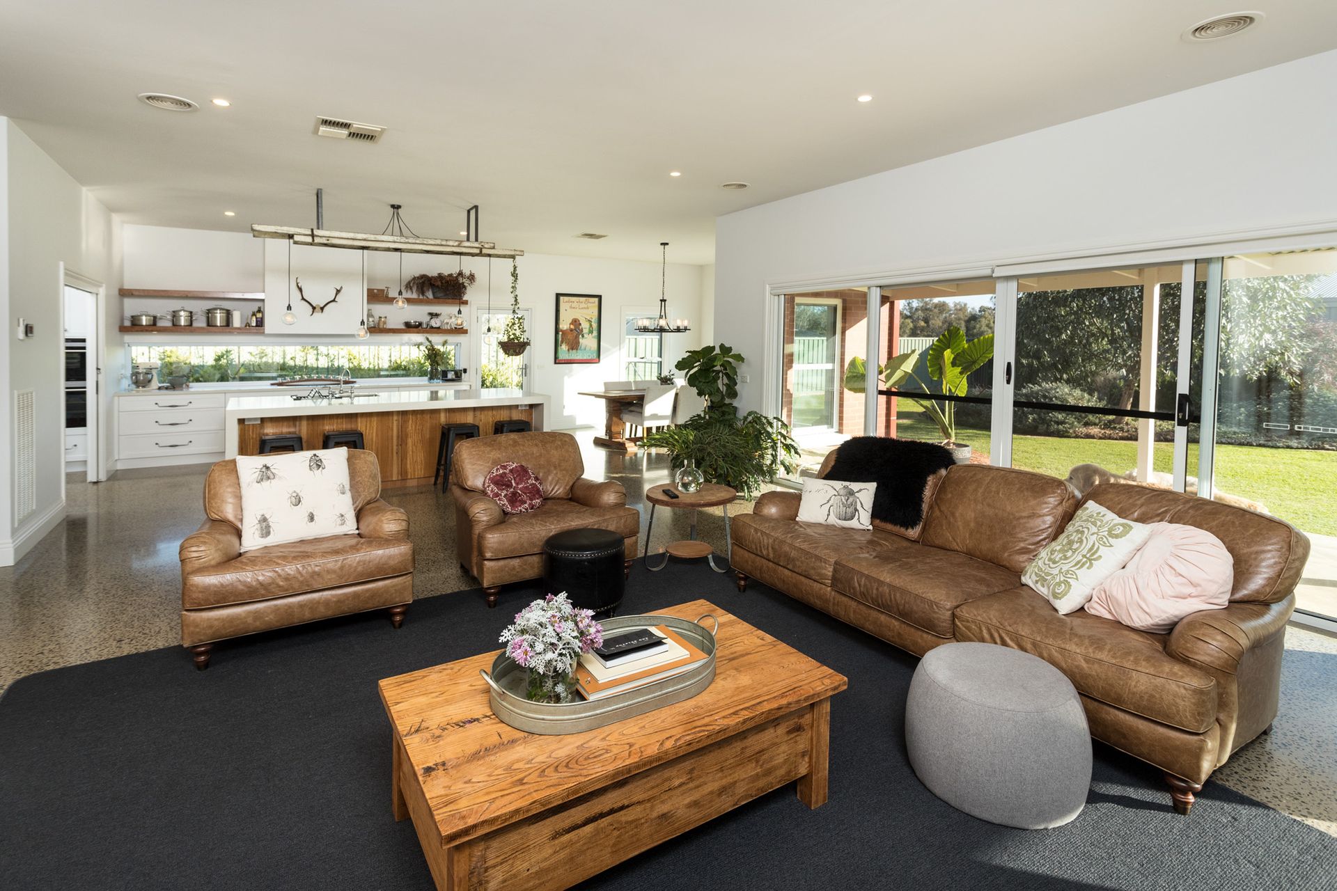 The front lounge with box window inspires relaxation while the open plan living / kitchen dinning creates a wealth of space for the whole family. The kitchen unites style and functionality with stone bench tops, butler's pantry and Siemens appliances.