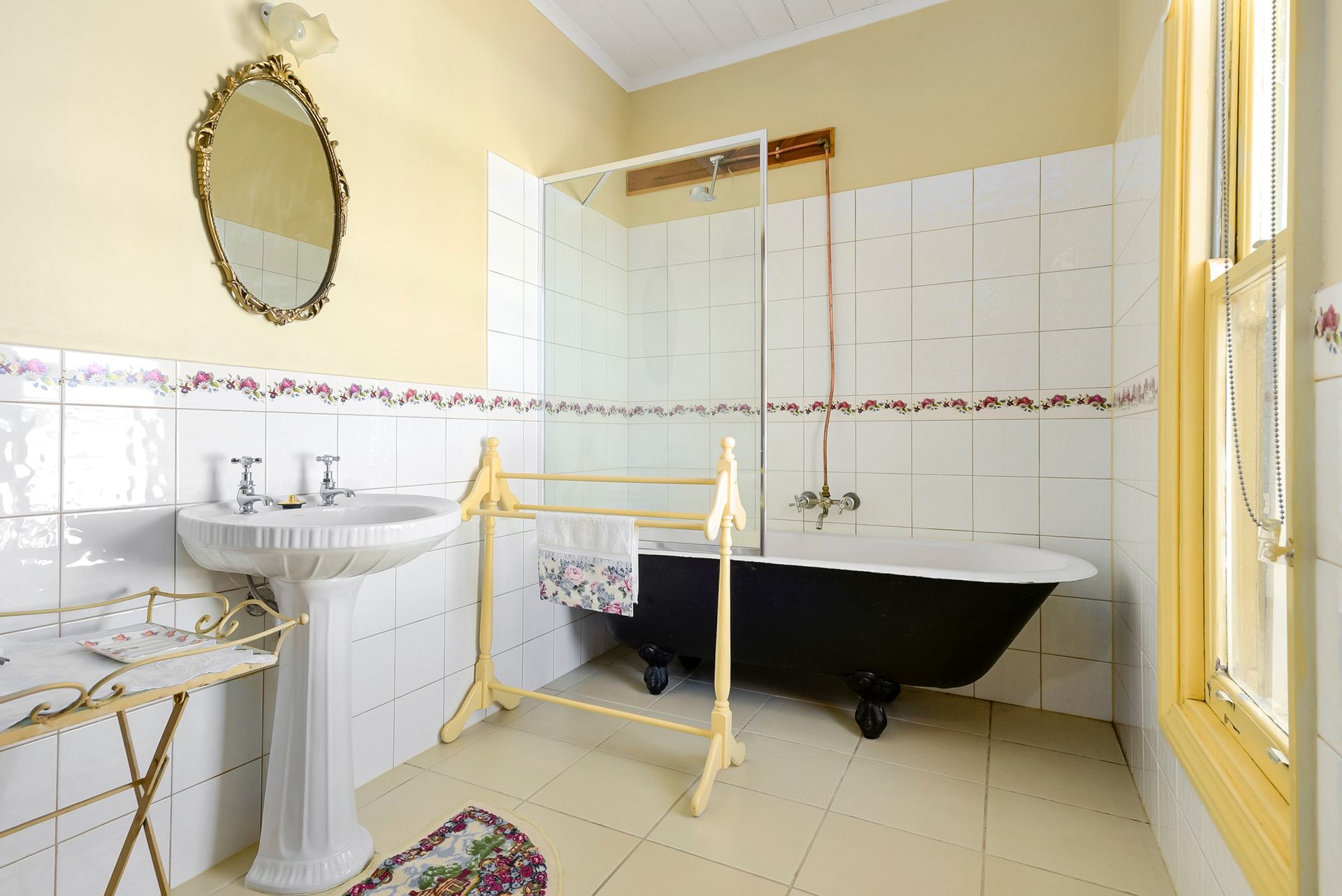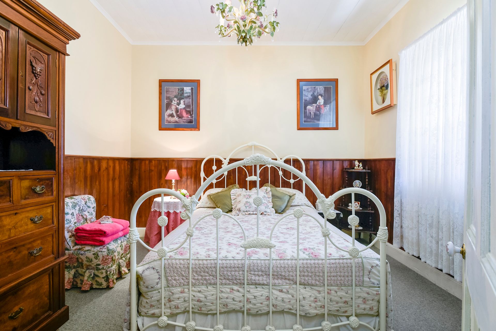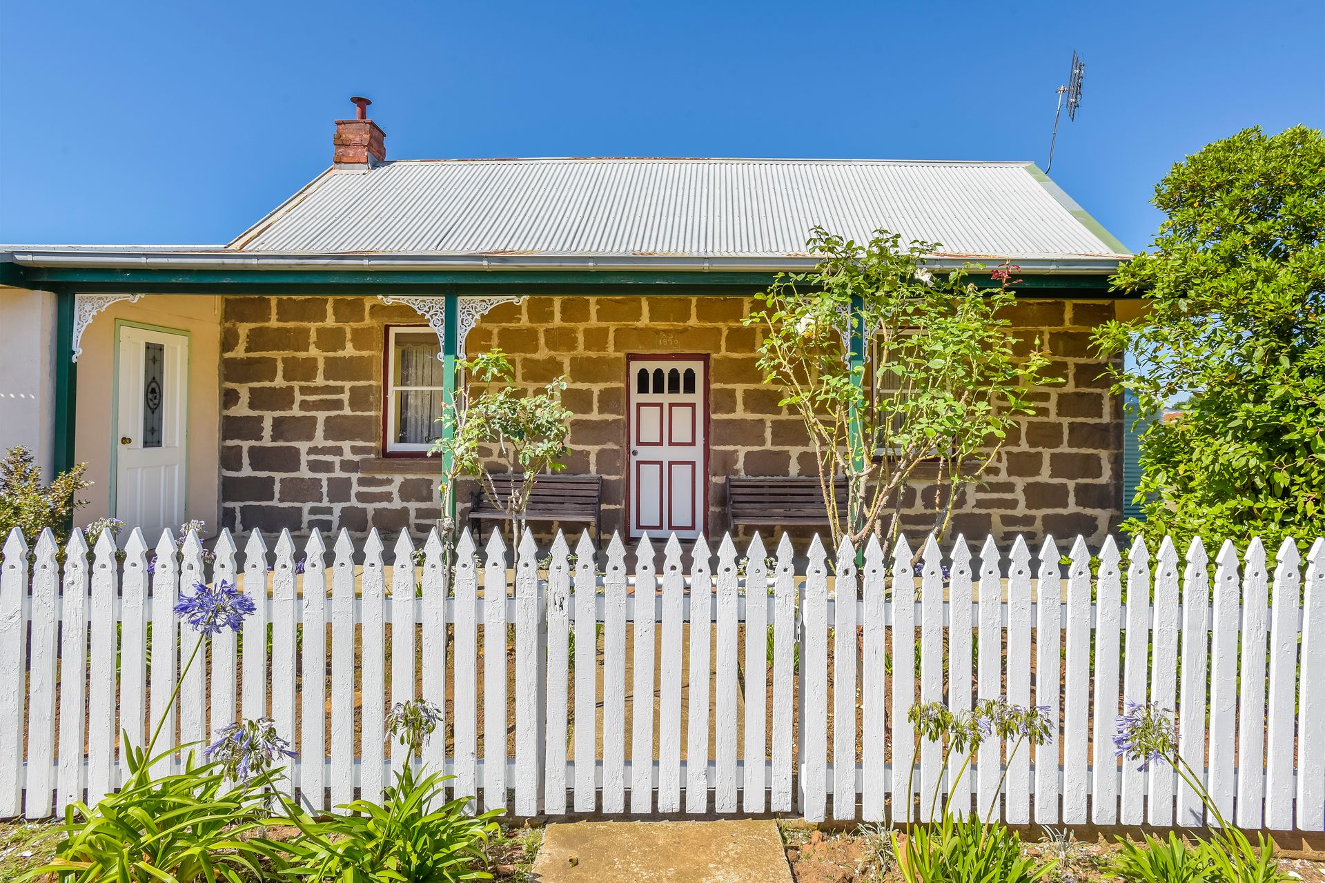Quinn Cottage - As you enter the 1870 bluestone cottage, you immediately notice the high timber lined ceilings and warm wooden dado panelling. The home comprises of two spacious bedrooms, both as equally charming as one another with features such as an ornate mantel piece with an electric heater and elegant chandelier. As you continue up the hallway, you enter a cosy living room with a skylight and fireplace. The ample eat-in kitchen features two tone retro cabinetry and a gas cooker. To the rear sits the 1980's extension, which houses a separate toilet and bathroom with deep soaking clawfoot bath.