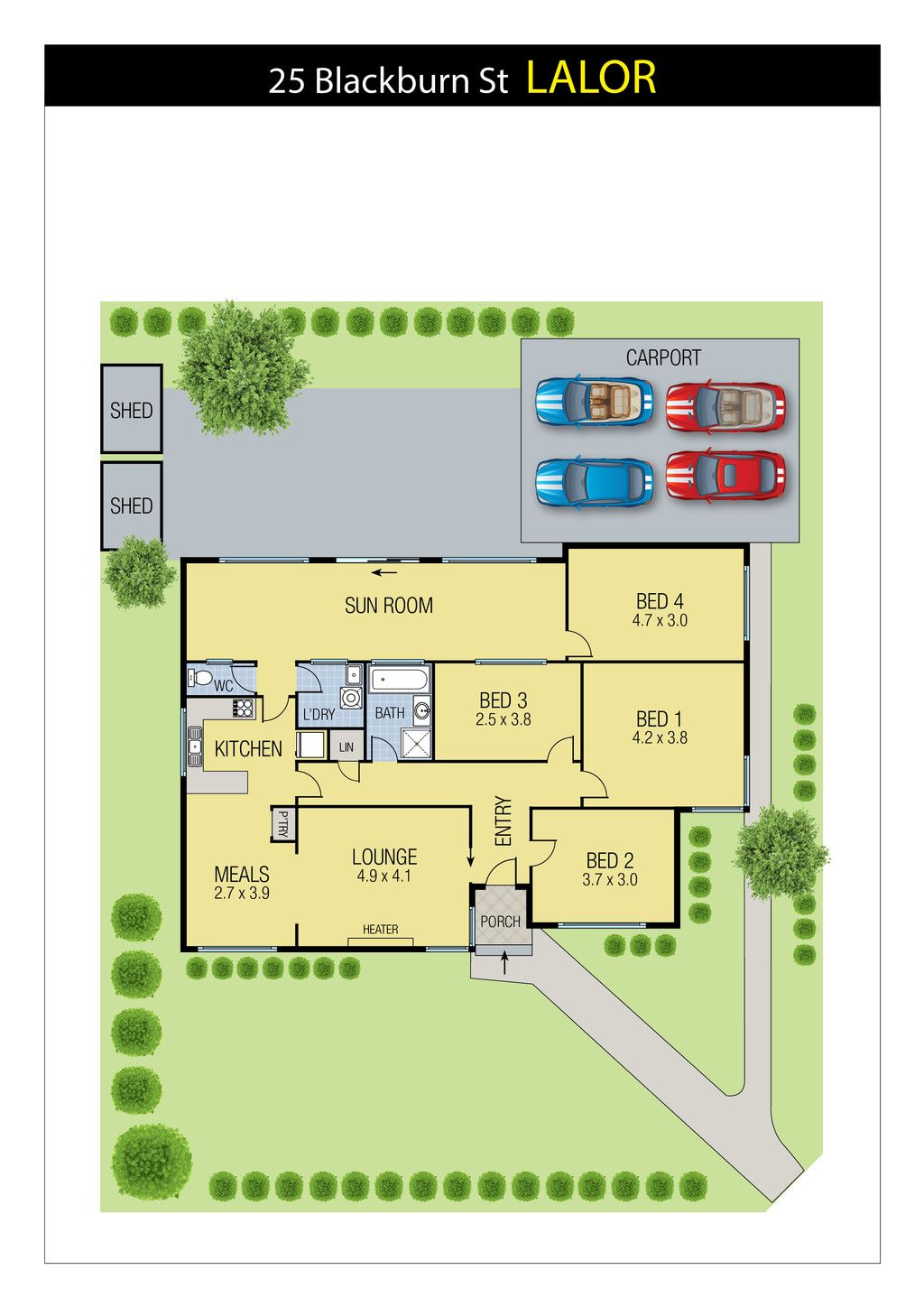 This quality home is largely in original condition is located on a corner block and boasts high ceilings, ducted heating, evaporative cooling, 4 large bedrooms, kitchen/meals, sunroom, great back yard and double carport.