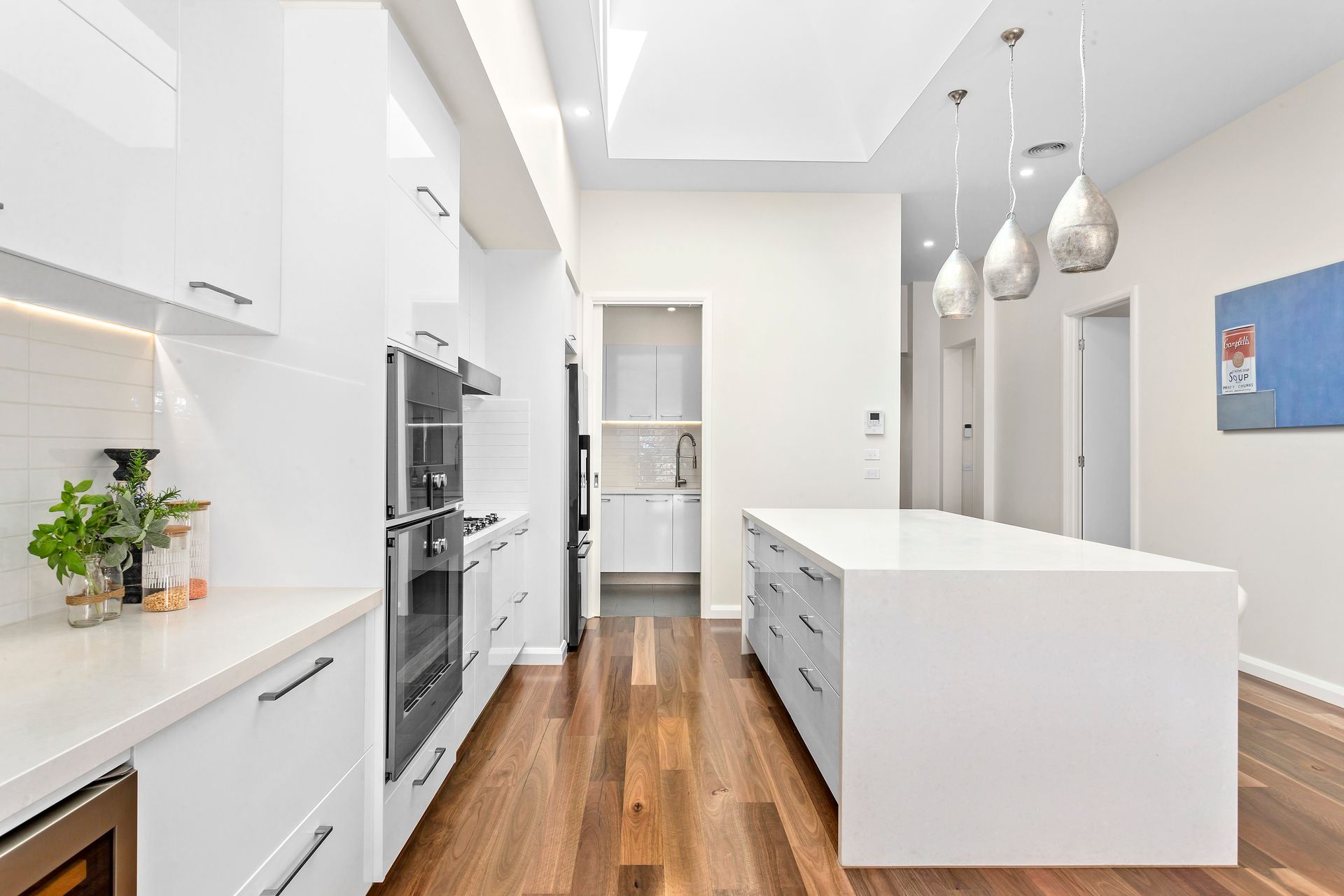 - Polytec ravine and thermolaminated vinyl gloss finish to kitchen/pantry doors and shelving