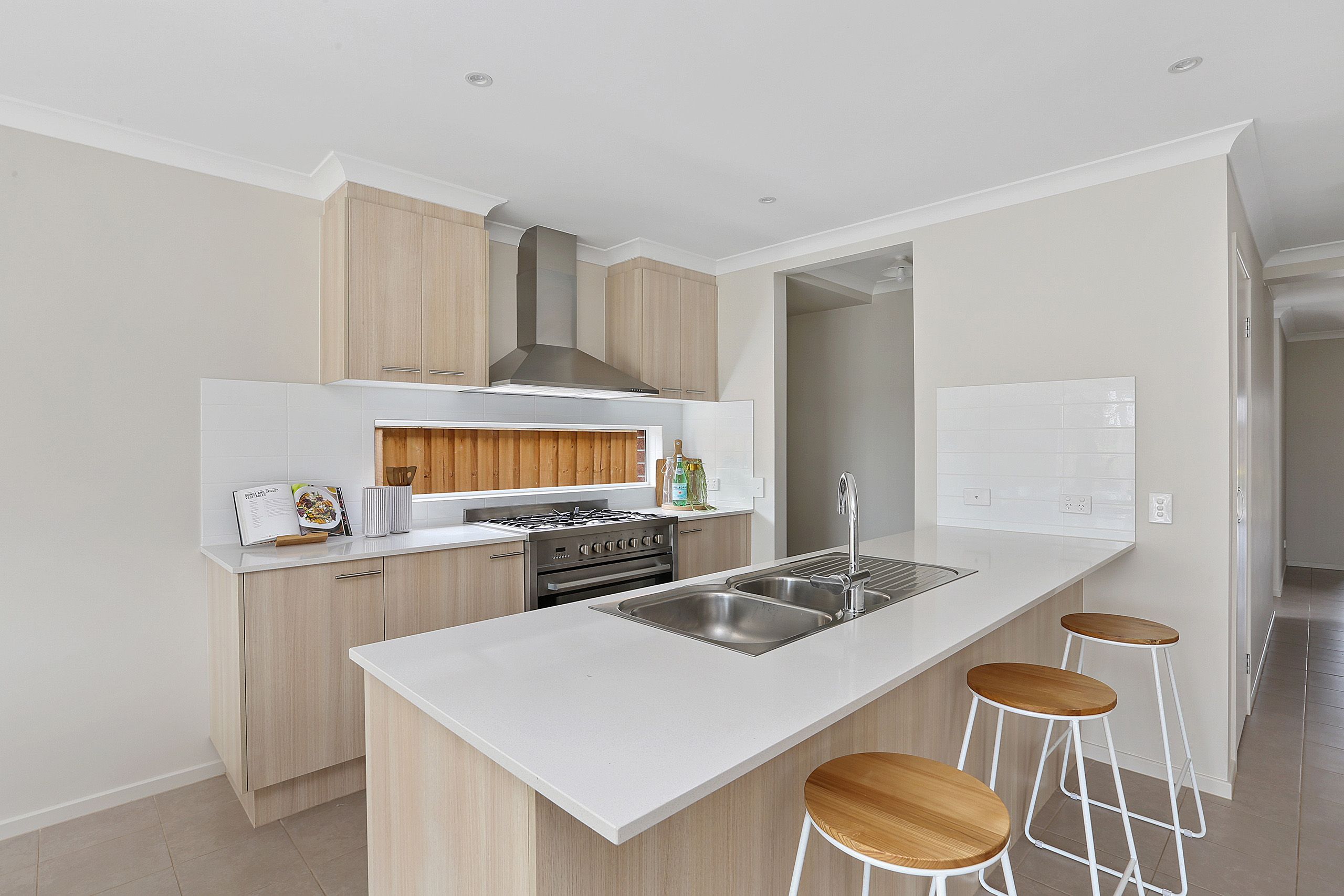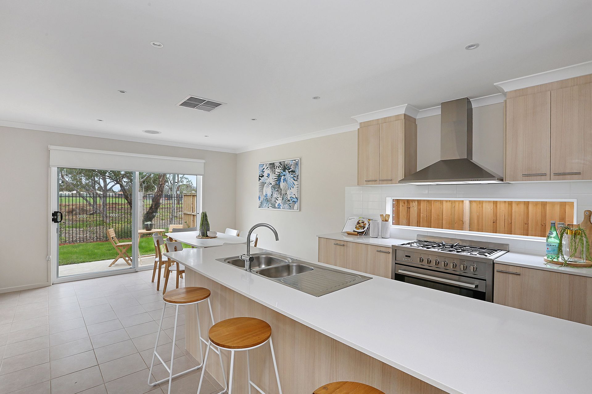 A light-filled open plan meals and living area adjoins the fantastic galley style kitchen complete with stone benches, 900mm stainless steel oven, canopy rangehood and walk-in pantry.