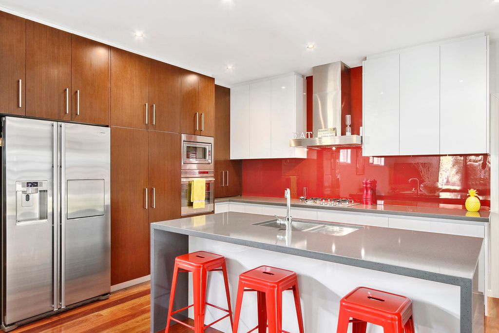 Contemporary architectural style, with a casual edge and a strong emphasis on lifestyle, the kitchen forms an unobtrusive backdrop to the living and dining areas. Featuring strong lines and a combination of high-quality surfaces, stone bench tops, glass splash back and island bench providing the perfect space for entertaining. A further option for entertaining and relaxing is the paved undercover alfresco area accompanied by the soothing sounds of the water feature.