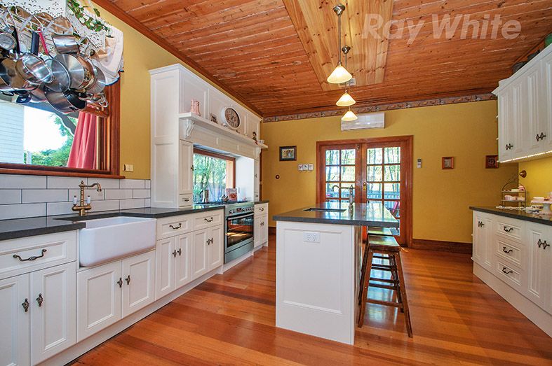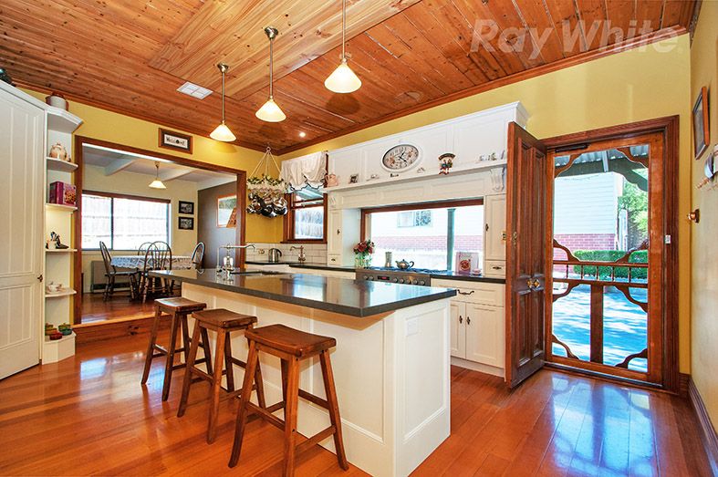 Step back in time and secure a slice of history with this exquisite Victorian residence, built in 1886 (approx.). Beautifully renovated, it offers you a split-level design, classic allure and modern comfort. This superb address is walking distance to Lilydale station, shops, buses, Lilydale High and Lilydale West Primary; close to Oxley College, Chirnside Shopping and Mount Lilydale Mercy College. A manicured, enclosed landscaped garden, verandah and magnificent Yarra Valley views will have you at hello. Parking for your cars, van and boat is easy with an auto 4-car garage featuring twin doors, workshop, storage, high ceilings and rear through roller door. The elegant, light-filled interior impresses with green outlooks and ornate detail, including entry hallway with archways, 11-ft high ceilings, Baltic pine polished floors, ceiling rosettes and picture rails. Tasteful dcor, ducted heating, 2 split systems. Three double-sized bedrooms, a separate toilet and lovely character-style bathroom resplendent with claw foot bath are quietly zoned. Cooking will be a pleasure in the near-new designer-style kitchen appointed with thick CaesarStone benchtops, porcelain sink, s/s 900mm oven, s/s gas cooktop, island bar, extensive storage and picture window framing garden views. Enjoy casual get-togethers in the sun-kissed family/meals room, or open the double French doors to the sensational entertaining, comprising north-facing deck, extensive paving, verandah and splendid, low-maintenance landscaped gardens with deluxe powder room and lawn areas for children. Plus: garden shed, external storage area and laundry with storage.