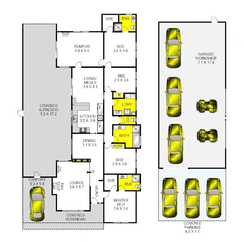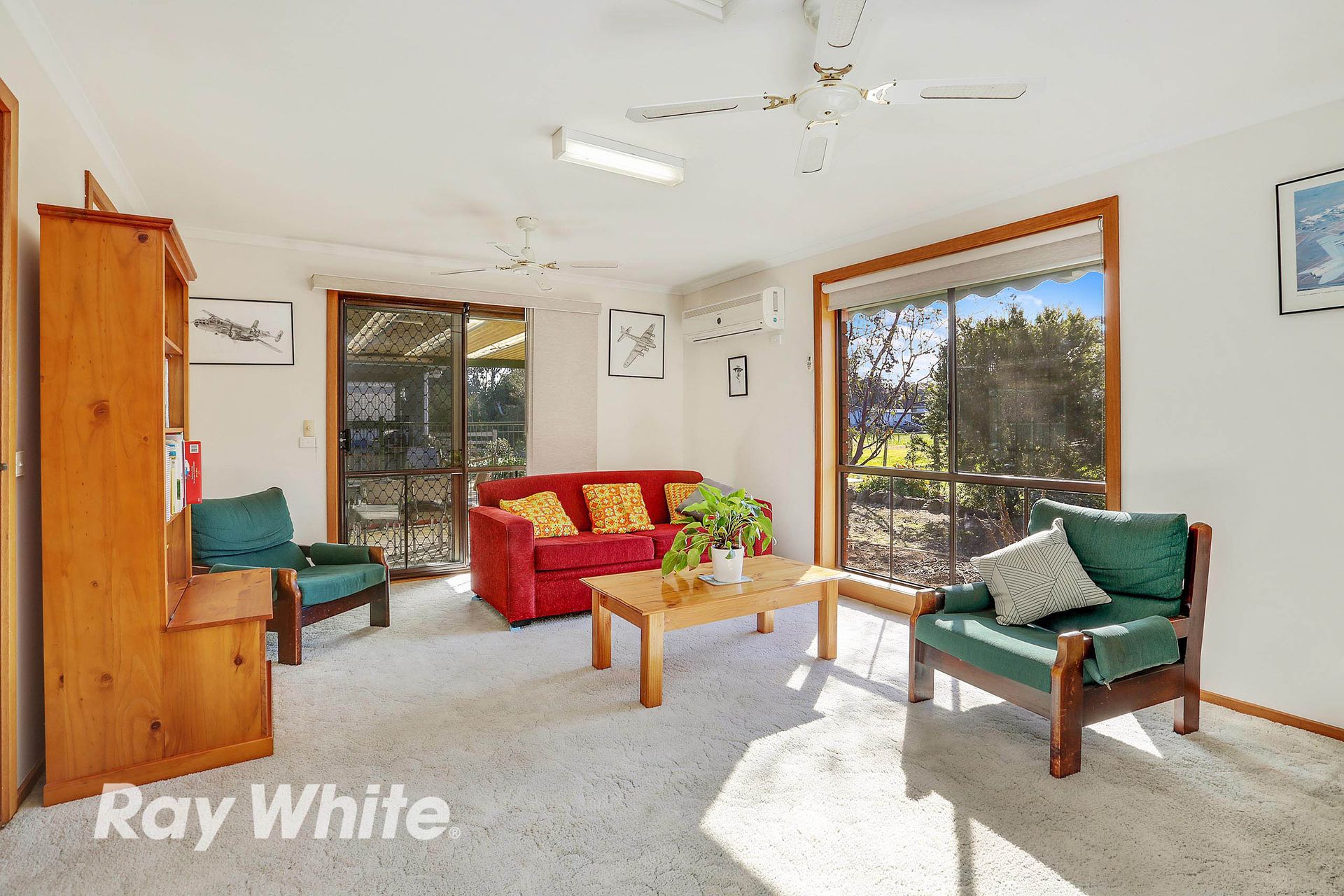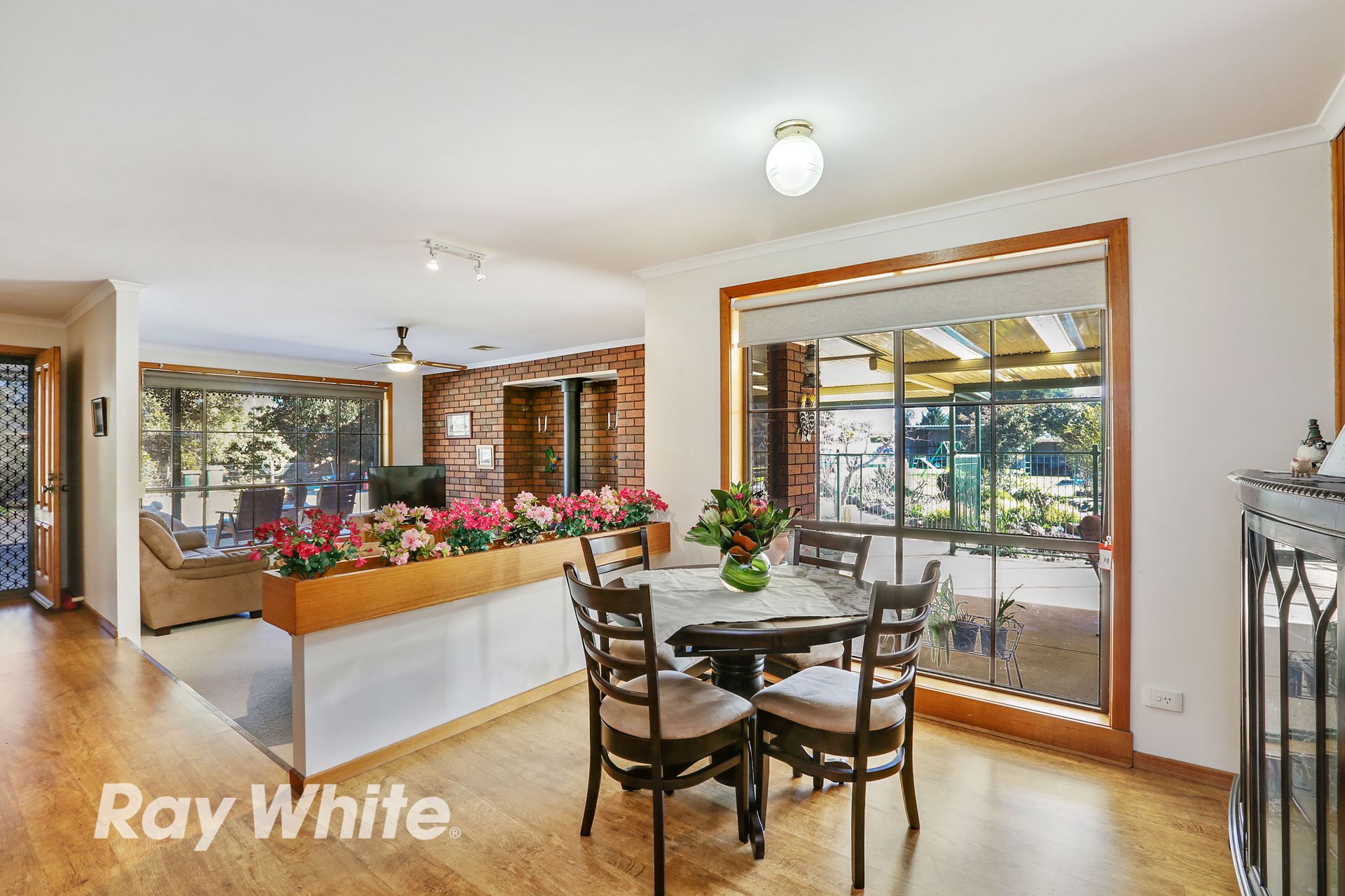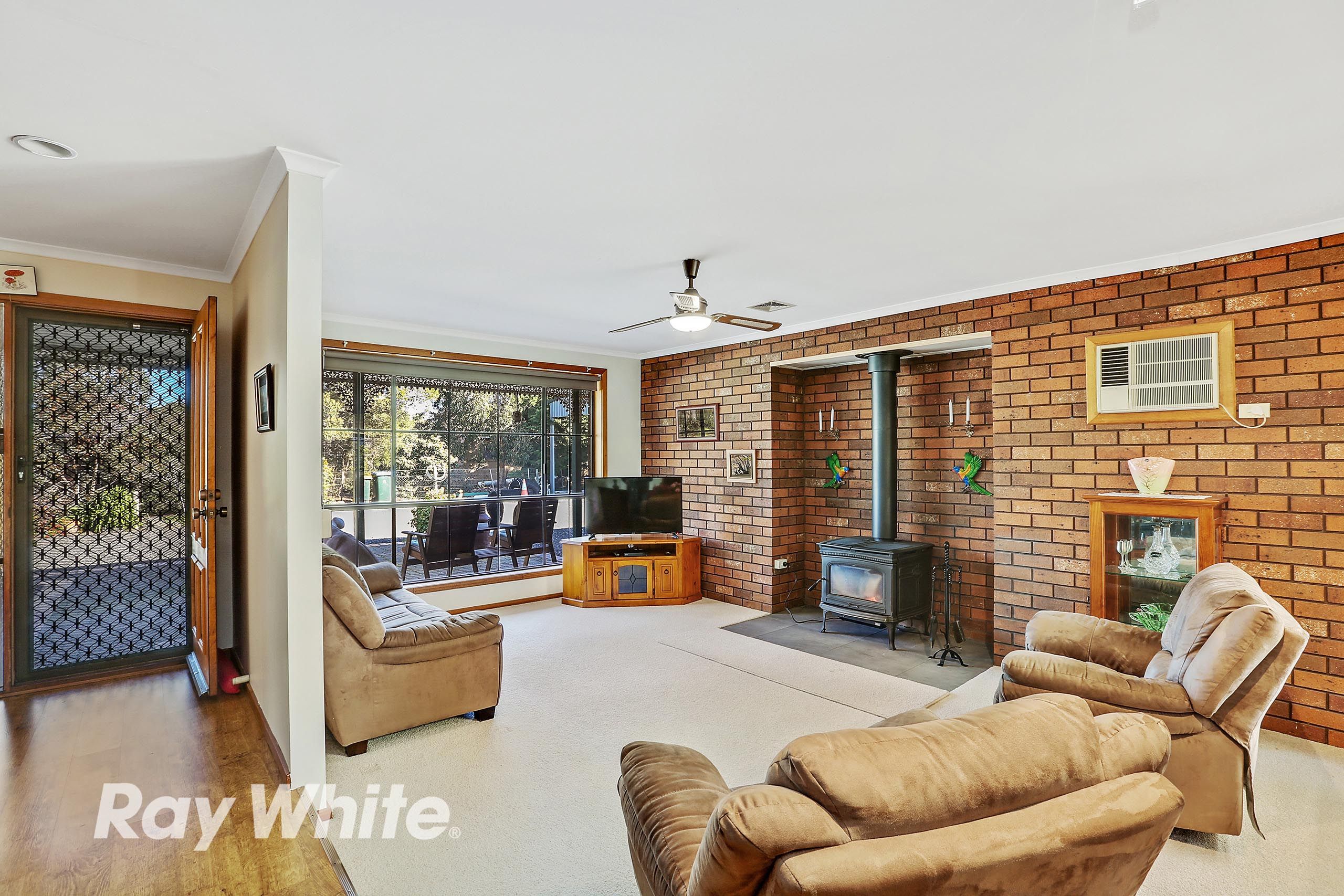 3 separate living spaces including a sunken lounge complete with coonara wood fire and adjoins the dining area, informal living zone and a spacious rumpus room with split system air conditioner which has direct access to bedroom 4 and could easily be used for semi-independent living for parents or teenagers.