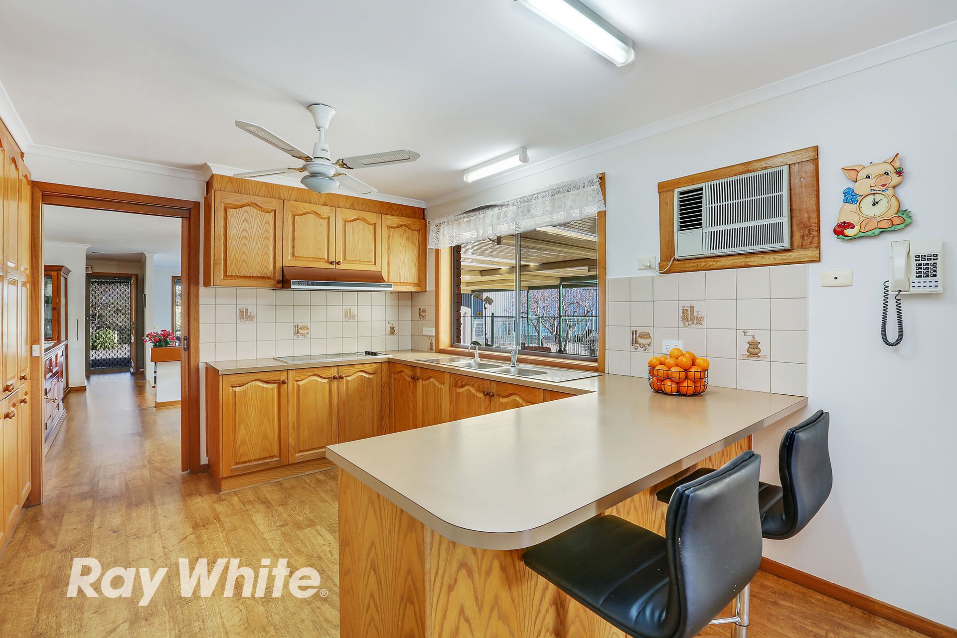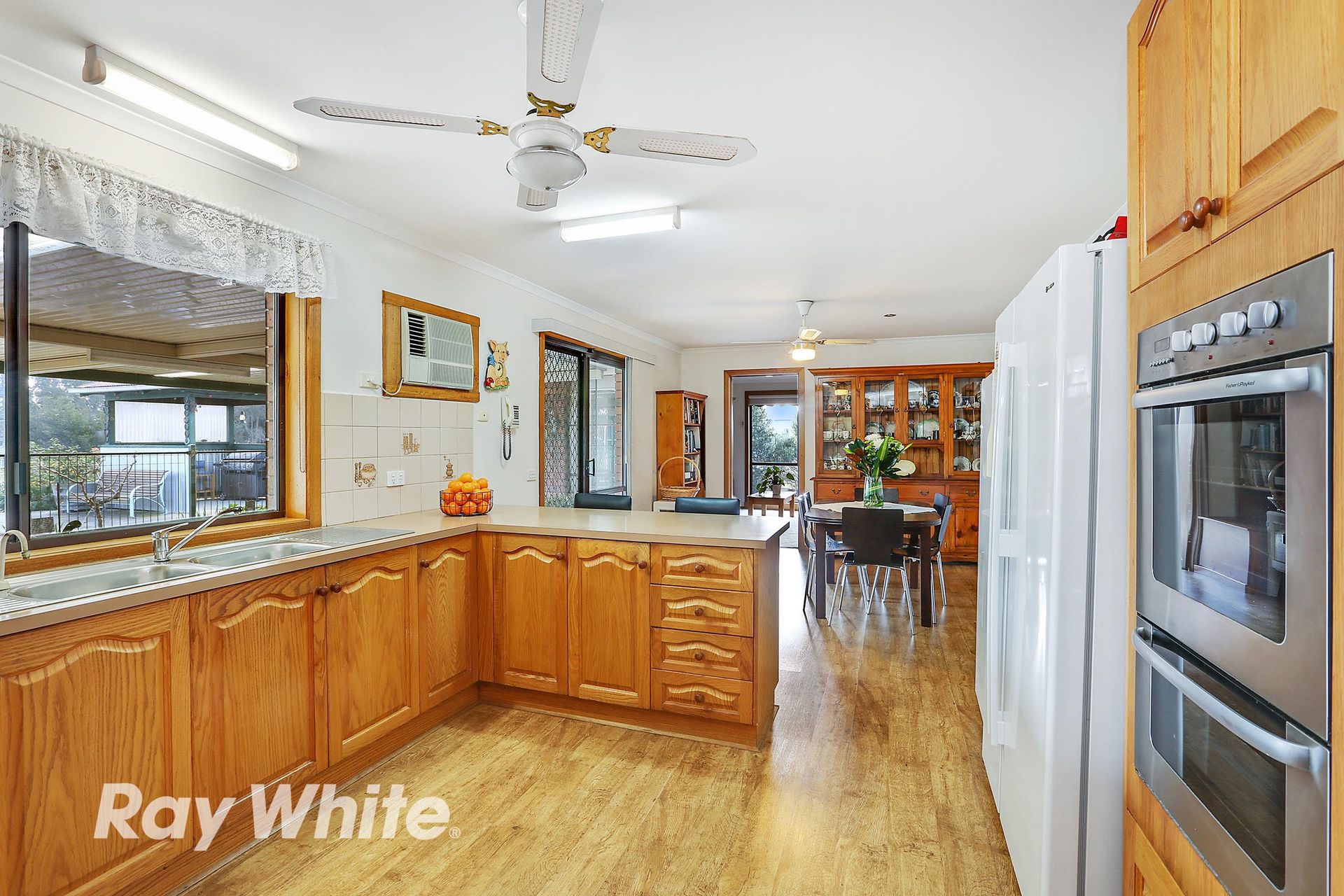 Functional kitchen with electric appliances overlooks the massive covered pergola area perfect for entertaining all year round.