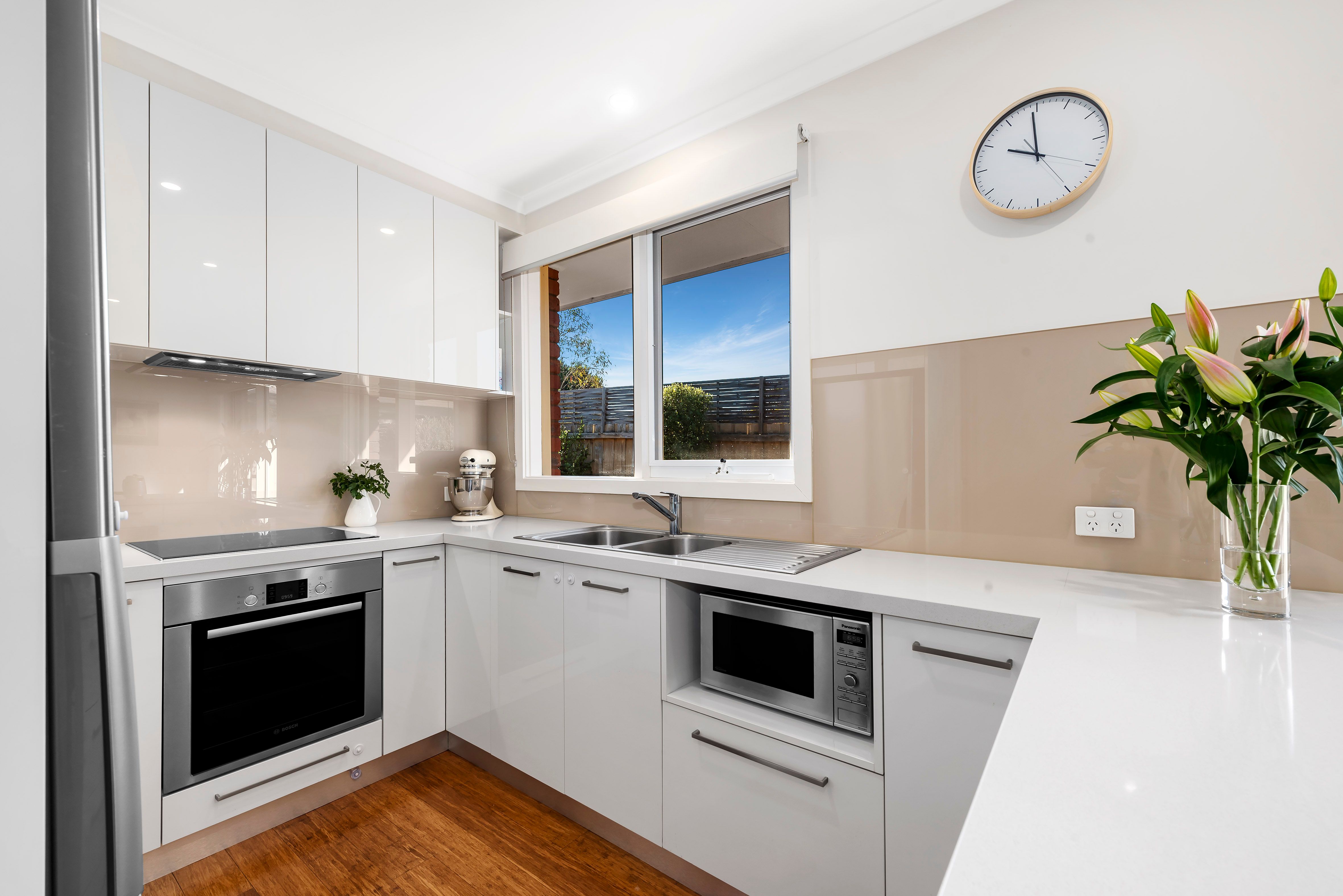 Brimming with light and one in a boutique block of three, the as-new interiors of this classy home feature an expansive living room and sleek kitchen with meals area. Boasting chic CaesarStone counters, Bosch appliances and soft-close cabinetry, this stylish space opening to a neat courtyard garden proves the ideal spot for easy entertaining. Generous bedrooms, master with bay window, feature built-in robes, while the on-trend fully tiled bathroom showcases a deep tub and attractive stone topped floating vanity.