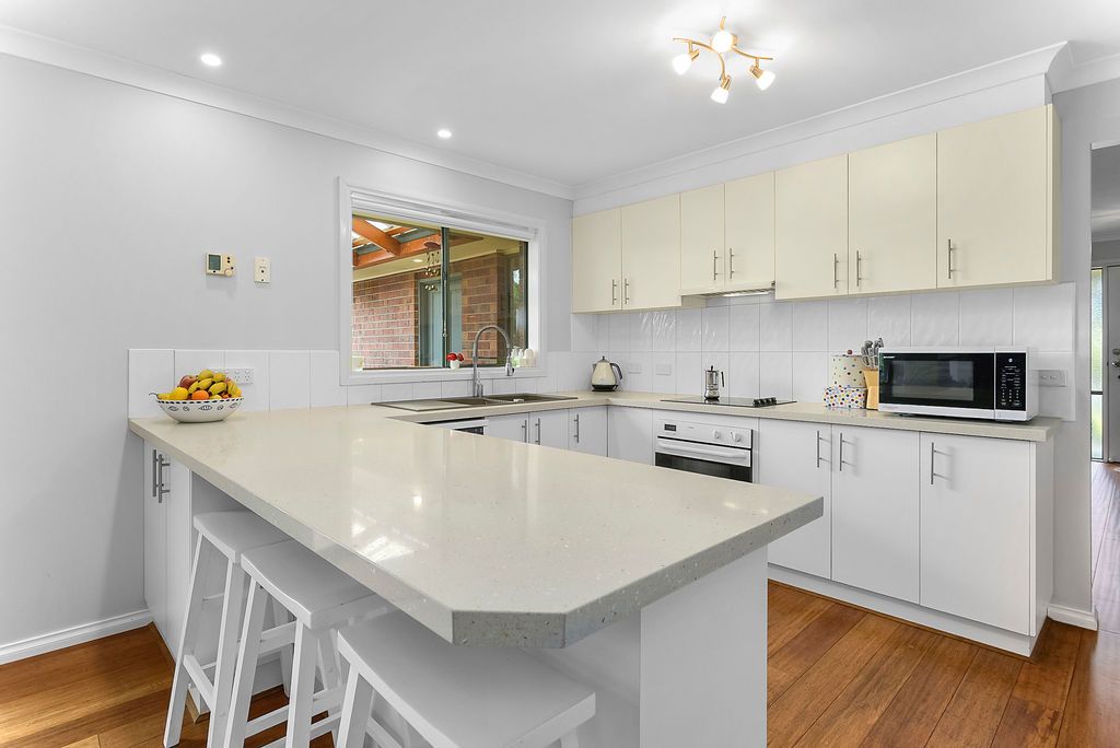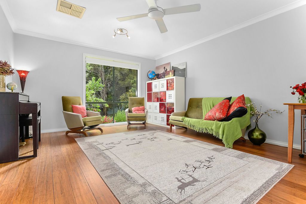The kitchen sits as the hub of the home, with a commanding central bench and stone tops throughout featuring all the modern appliances you would expect. Beautiful bamboo floating timber floors allow the warmth of the solid wood heater to be carried throughout the home. A third living space with north facing windows is light filled and has lovely views of the rear garden.