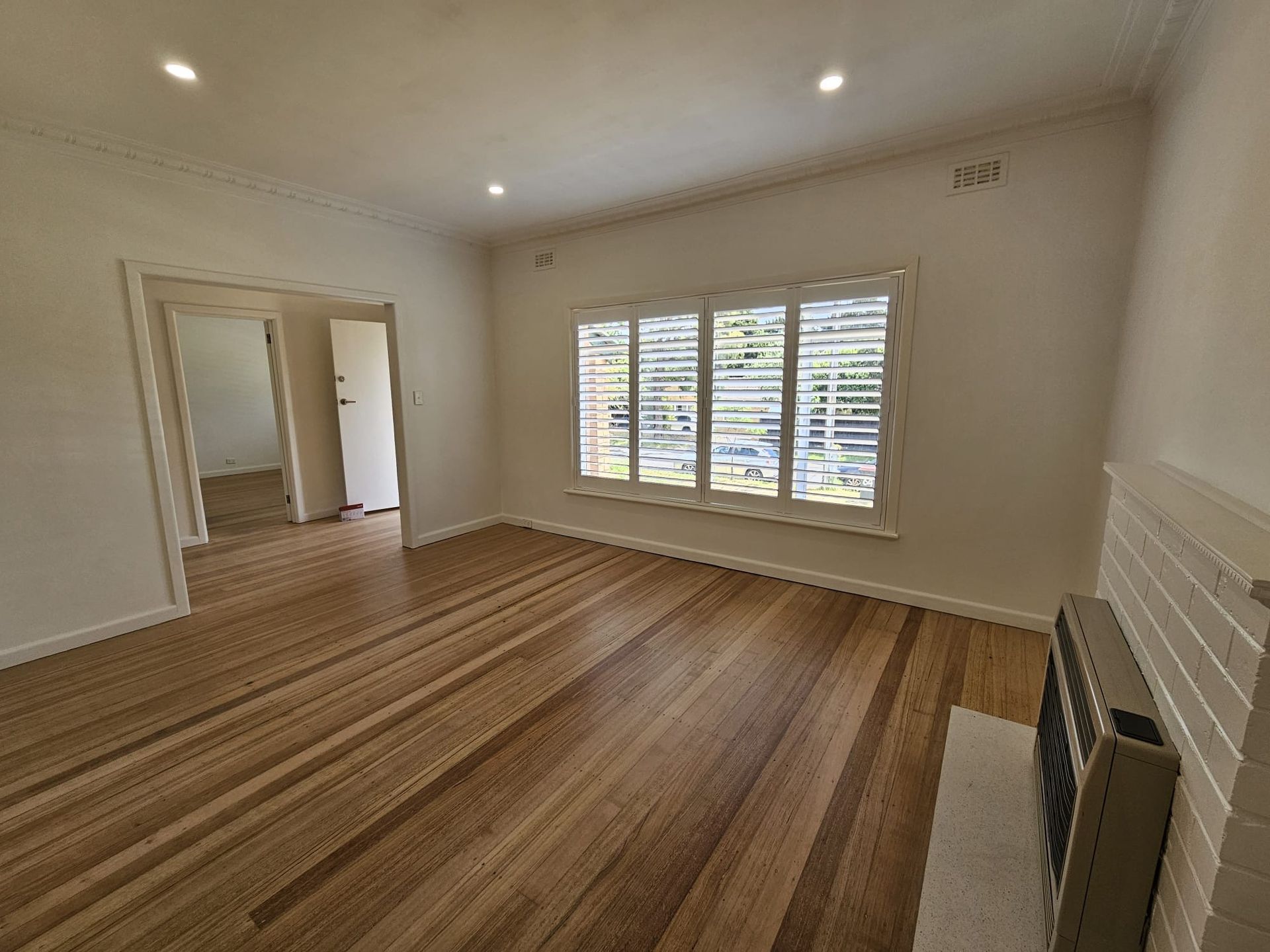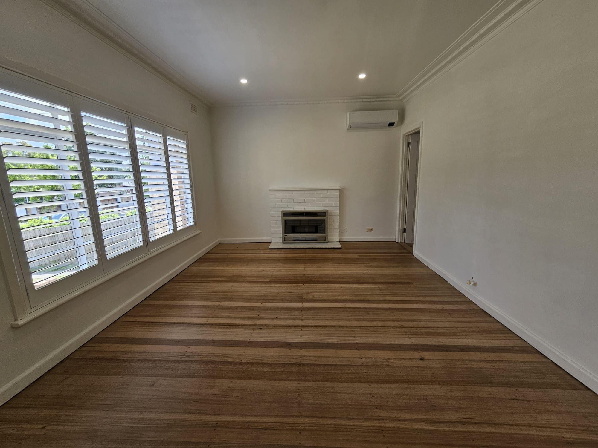 * Hardwood floorboards throughout