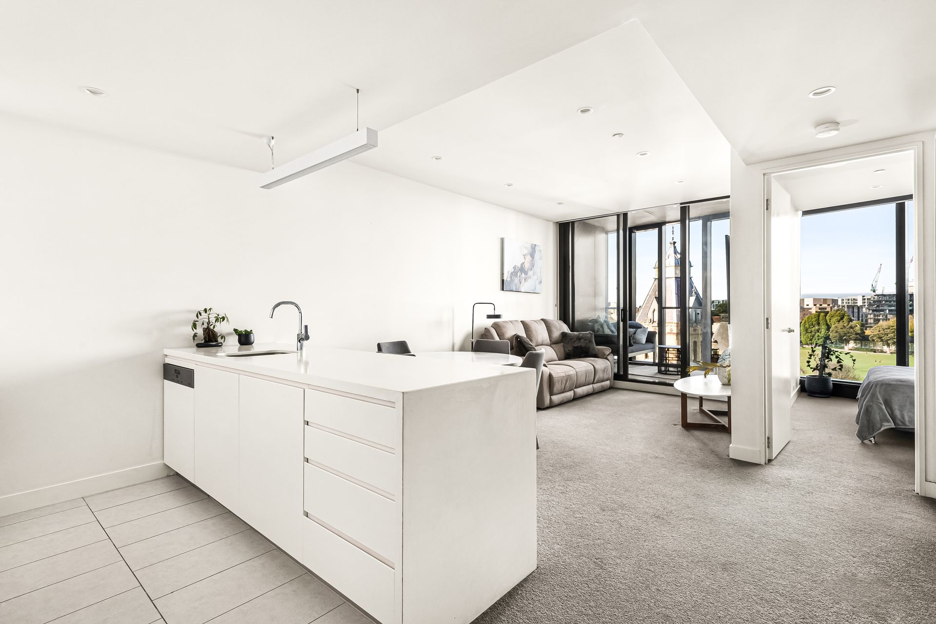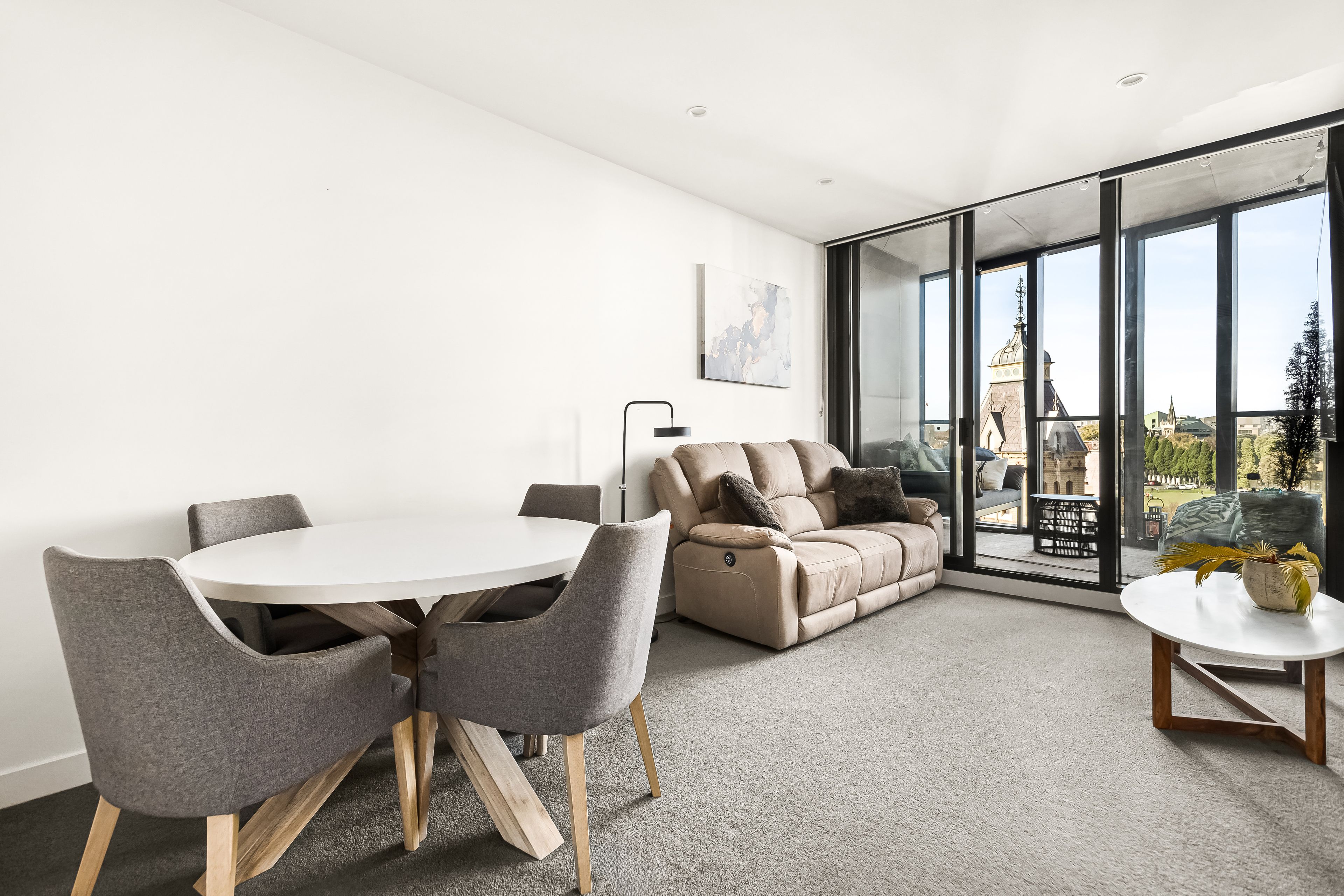 Overlooking the heritage-listed gardens of Wesley College and surrounds, the superbly appointed kitchen, dining and living area with seamless connection to a spacious terrace, is a brilliant place to sit back, relax, and unwind.