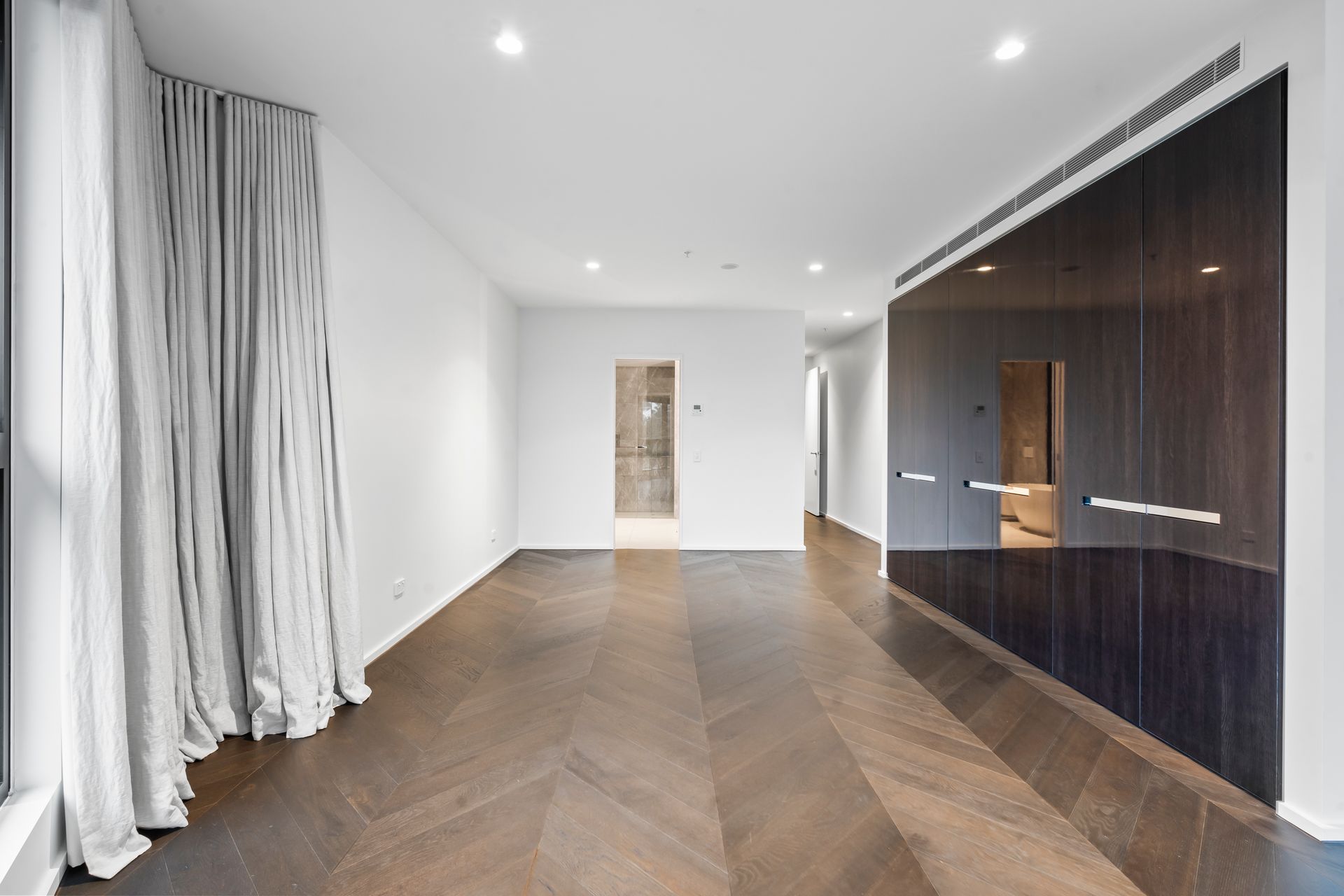 This spacious home offers refined living with its impressive main bedroom, featuring a grand walk-in robe at the entrance with ample storage options and built-in lighting. The bedroom also has a cozy nook, perfect for a desk or home office, and includes ducted heating and cooling, premium Barlow & Hunt linen block-out blinds, and windows with a fly-screen option for fresh air.