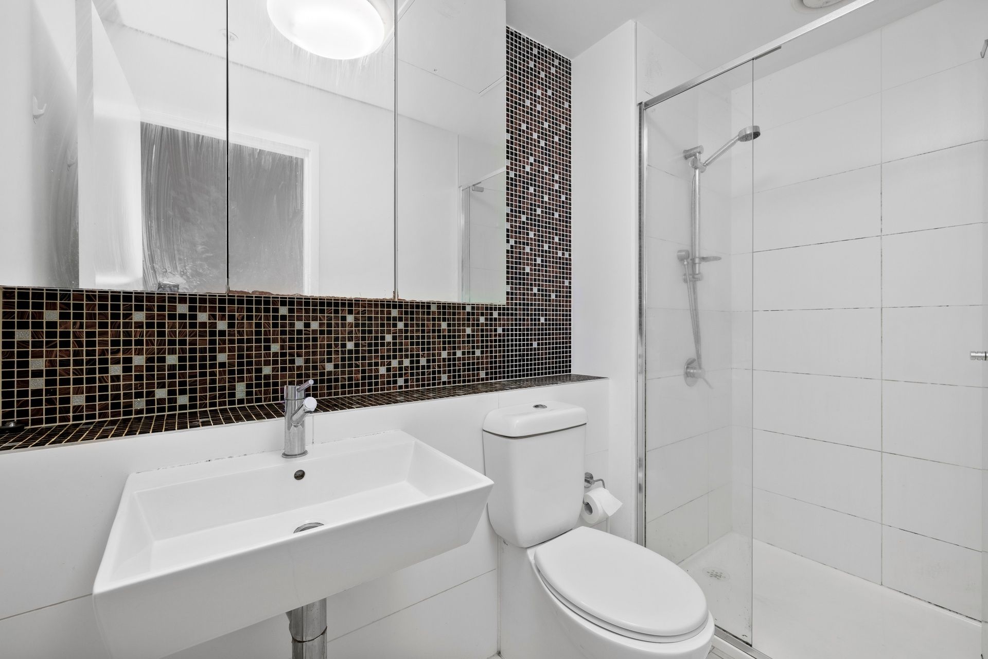 -Modern bathroom with fully tiled shower