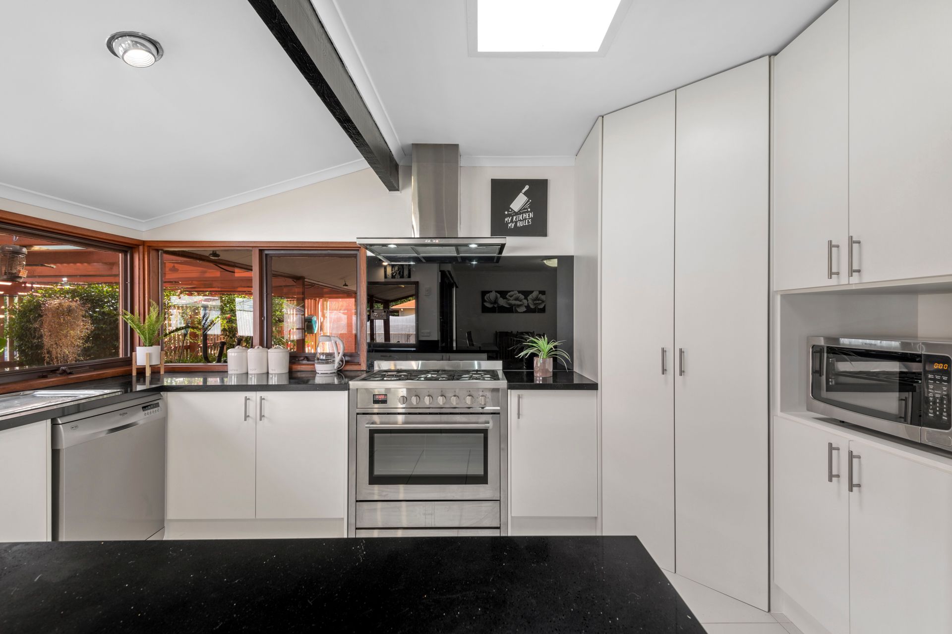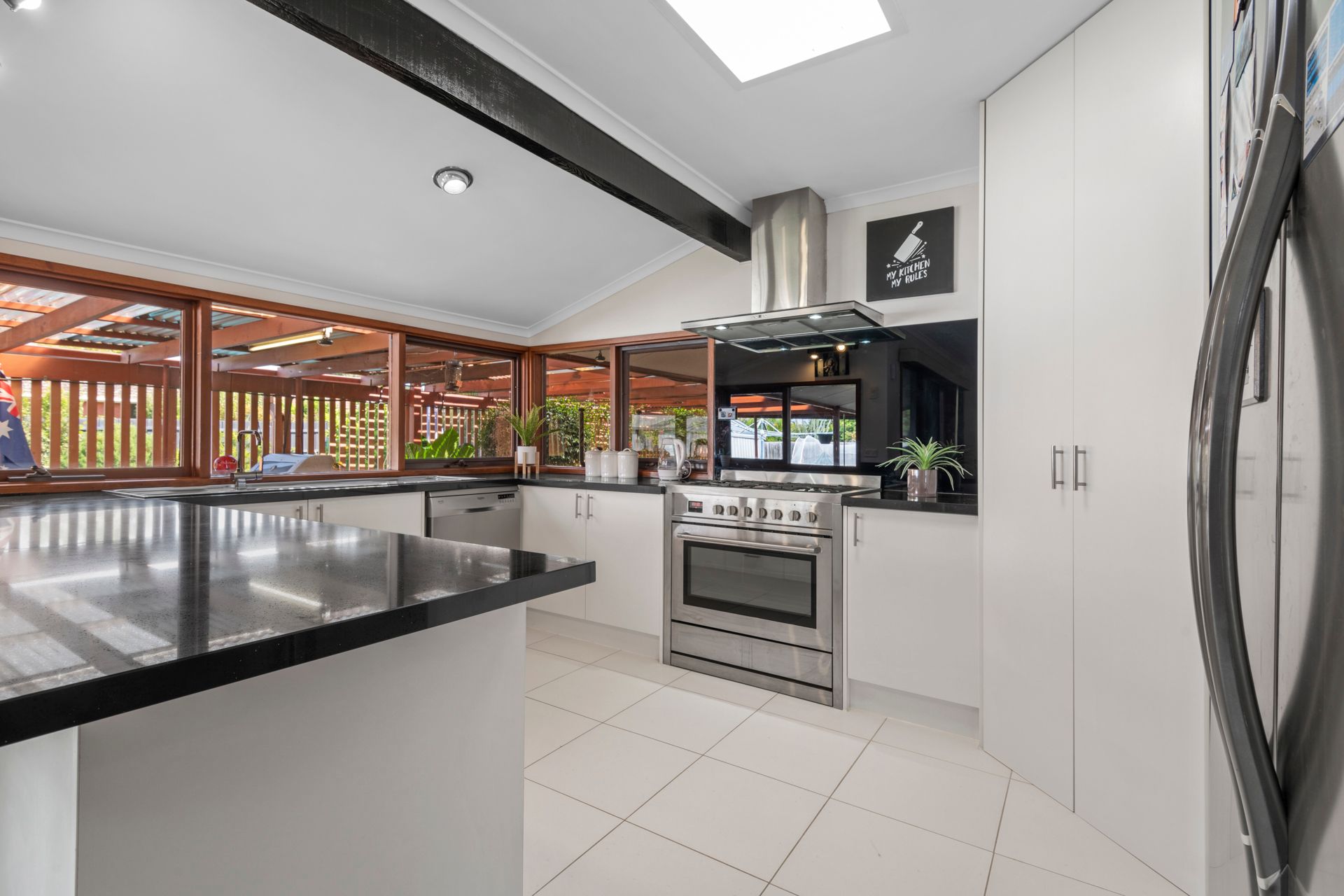 Showcasing three bedrooms all with built in robes, master suite with walk in robe and ensuite. Space to relax and entertain with dual living zones including a sunken formal lounge equipped with a fireplace perfect for those cold winter nights and an open plan meals area that integrates well with indoor and outdoor living. The central hub of the home hosts a stunning kitchen featuring 900mm s/s kitchen appliances, dishwasher, stone bench tops, and ample cupboard space perfect for the master chef within.