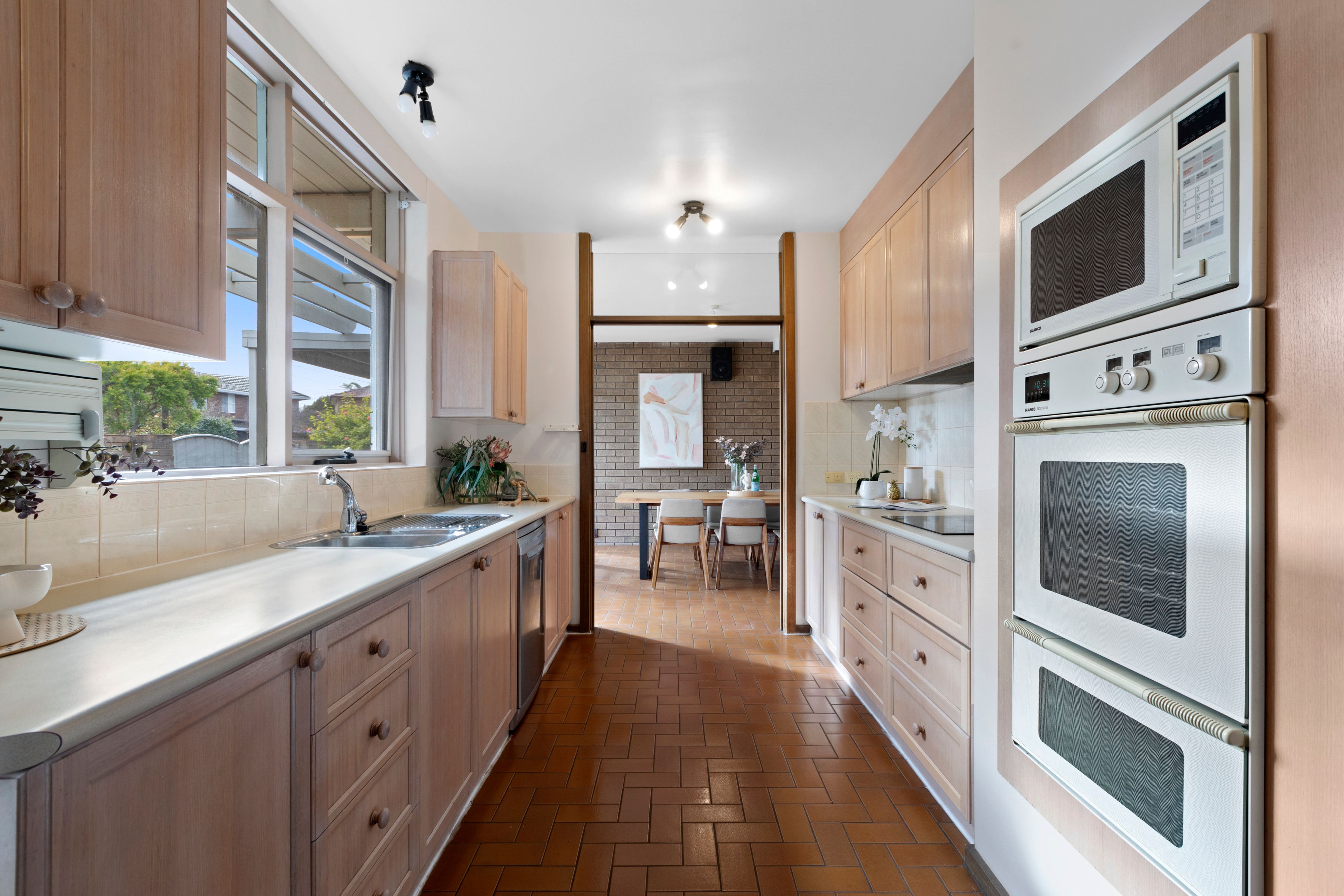 Occupying a prime corner allotment with prized dual street frontage, this impeccable home opens to a formal lounge showcasing original exposed brickwork, clerestory windows, and lofty cathedral ceilings. Further on, an elegant dining room sets the scene for intimate gatherings, whilst a rear family room provides plenty of space for casual get-togethers. At the heart of the home, the well-appointed kitchen is ideally positioned for both indoor/outdoor entertaining - it boasts quality Blanco appliances plus ample cupboard and preparation space.
