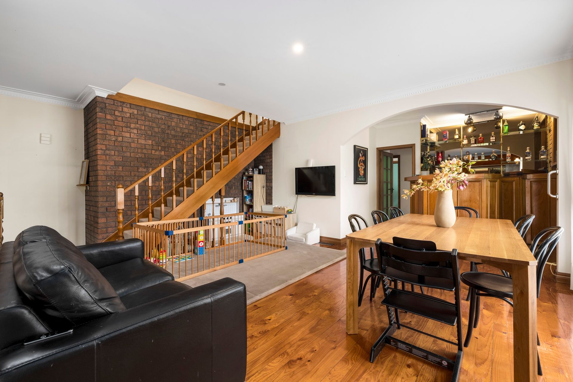 Step inside to discover two spacious living domains on the ground floor. The front lounge and formal dining area are bathed in natural light, while the rear family room features a built-in bar and direct alfresco access, perfect for entertaining. The central kitchen boasts a breakfast bar, 4-burner gas cooktop, and plenty of cabinetry, connecting seamlessly with the meals zone.