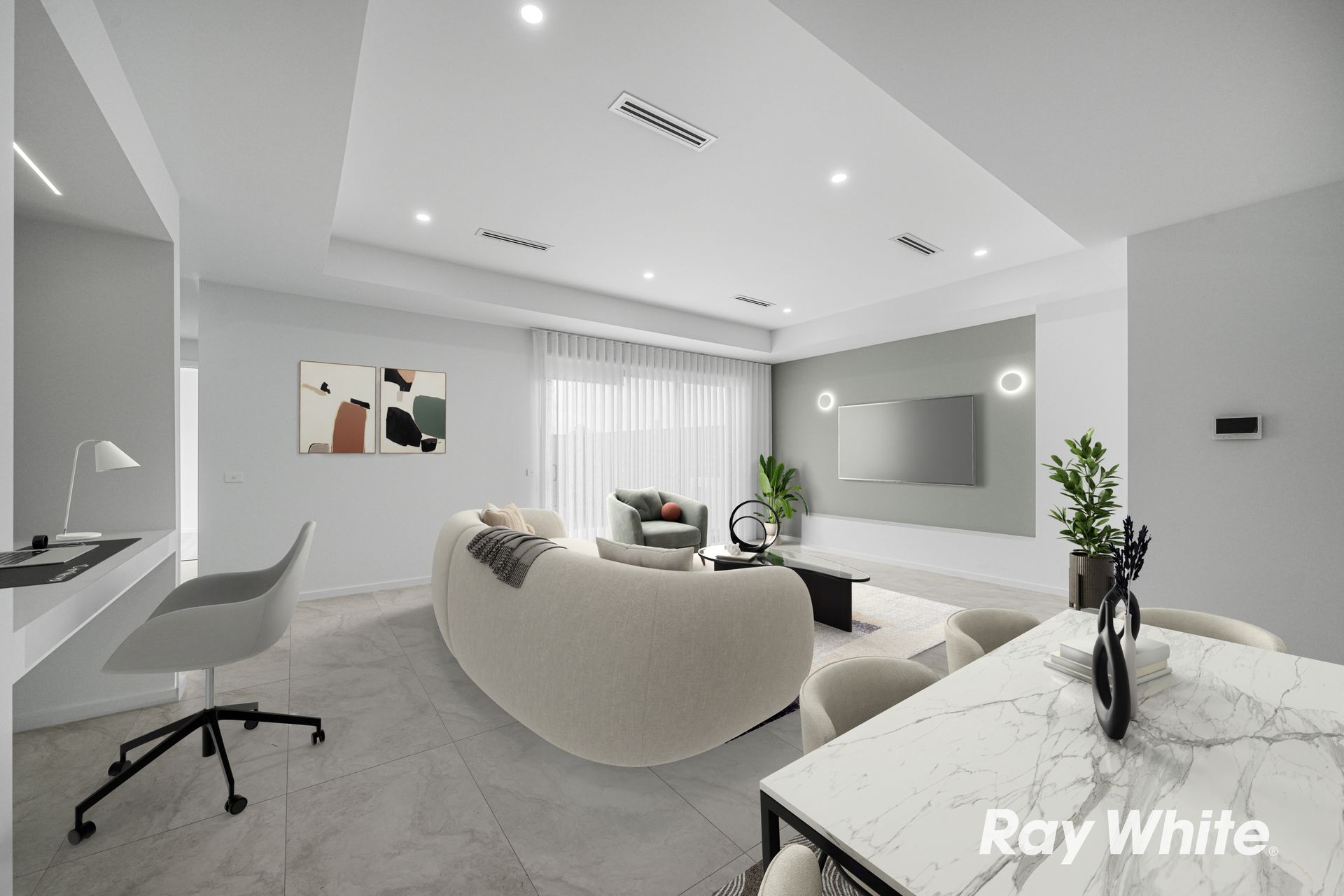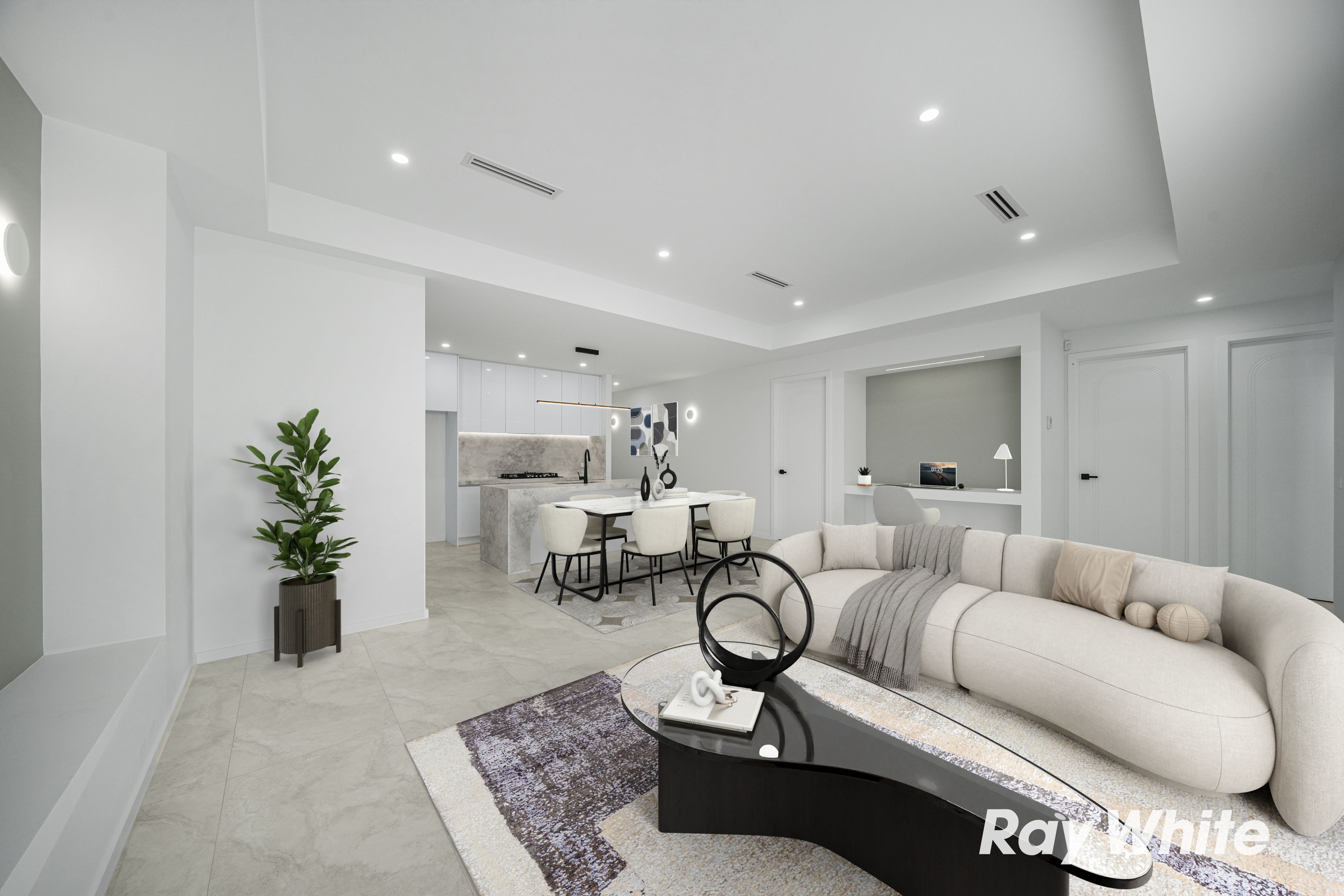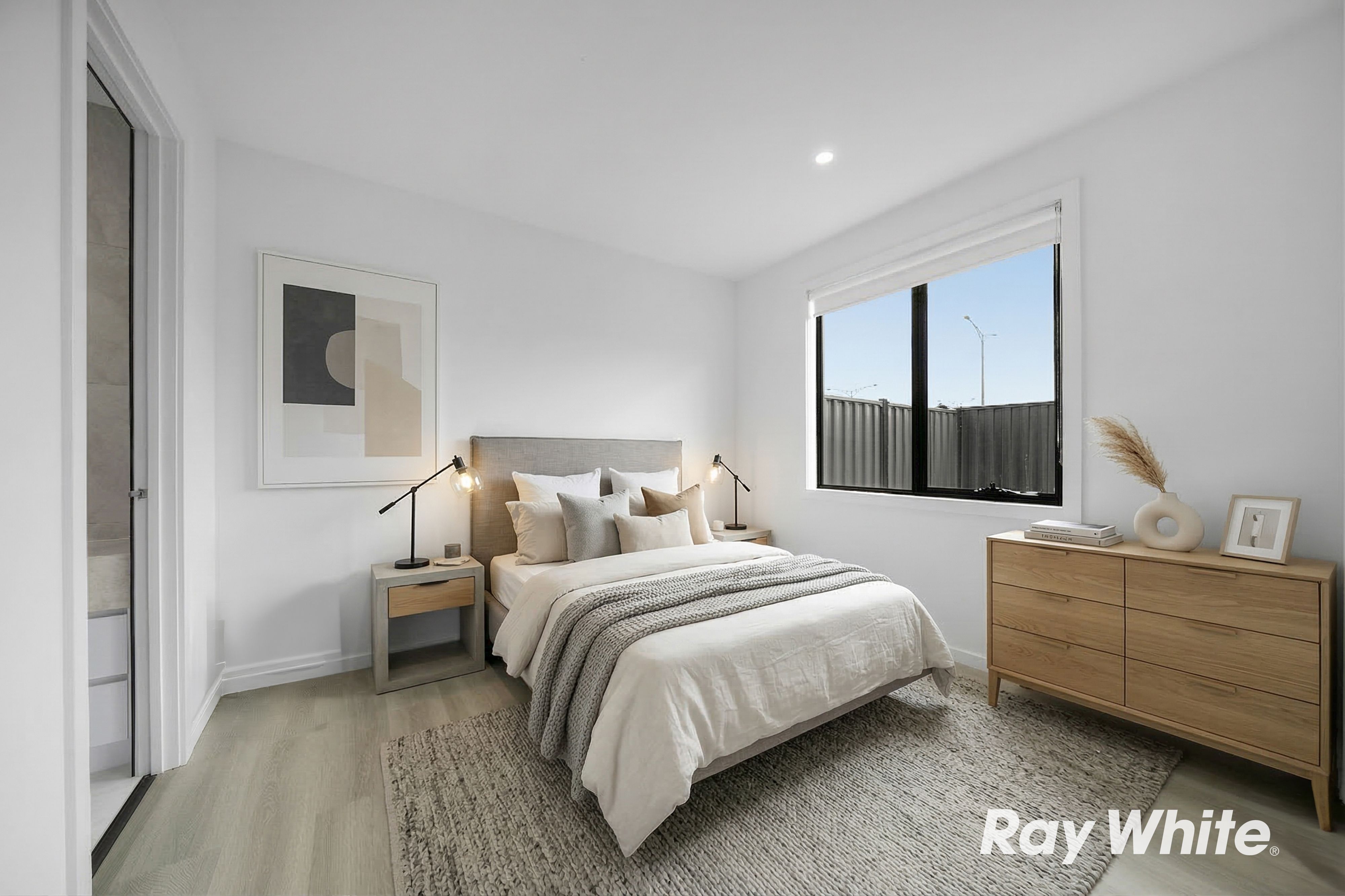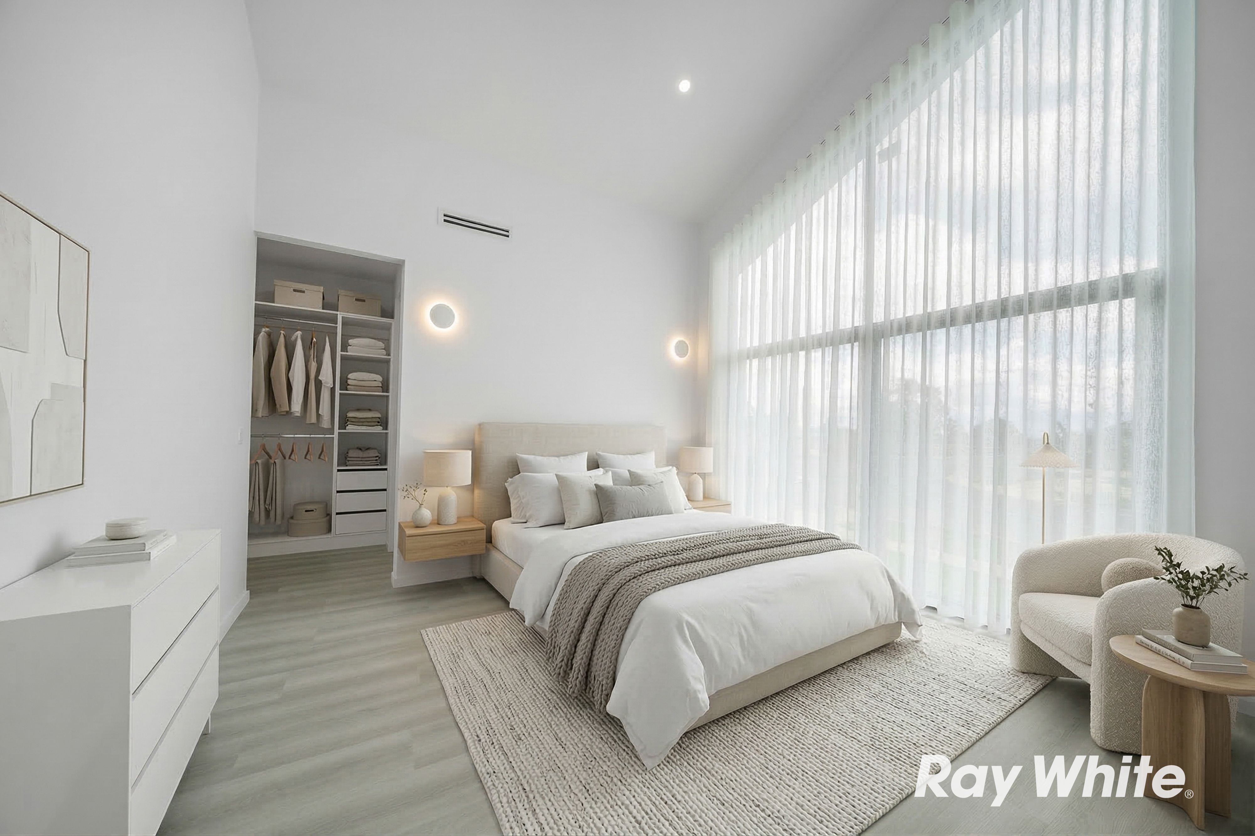 Step inside and be welcomed by impressive 3-metre ceilings in the main living area, creating a bright and open atmosphere. The home showcases 600x1200mm designer tiles throughout the living zones, while the bedrooms are fitted with hybrid flooring for warmth and comfort.