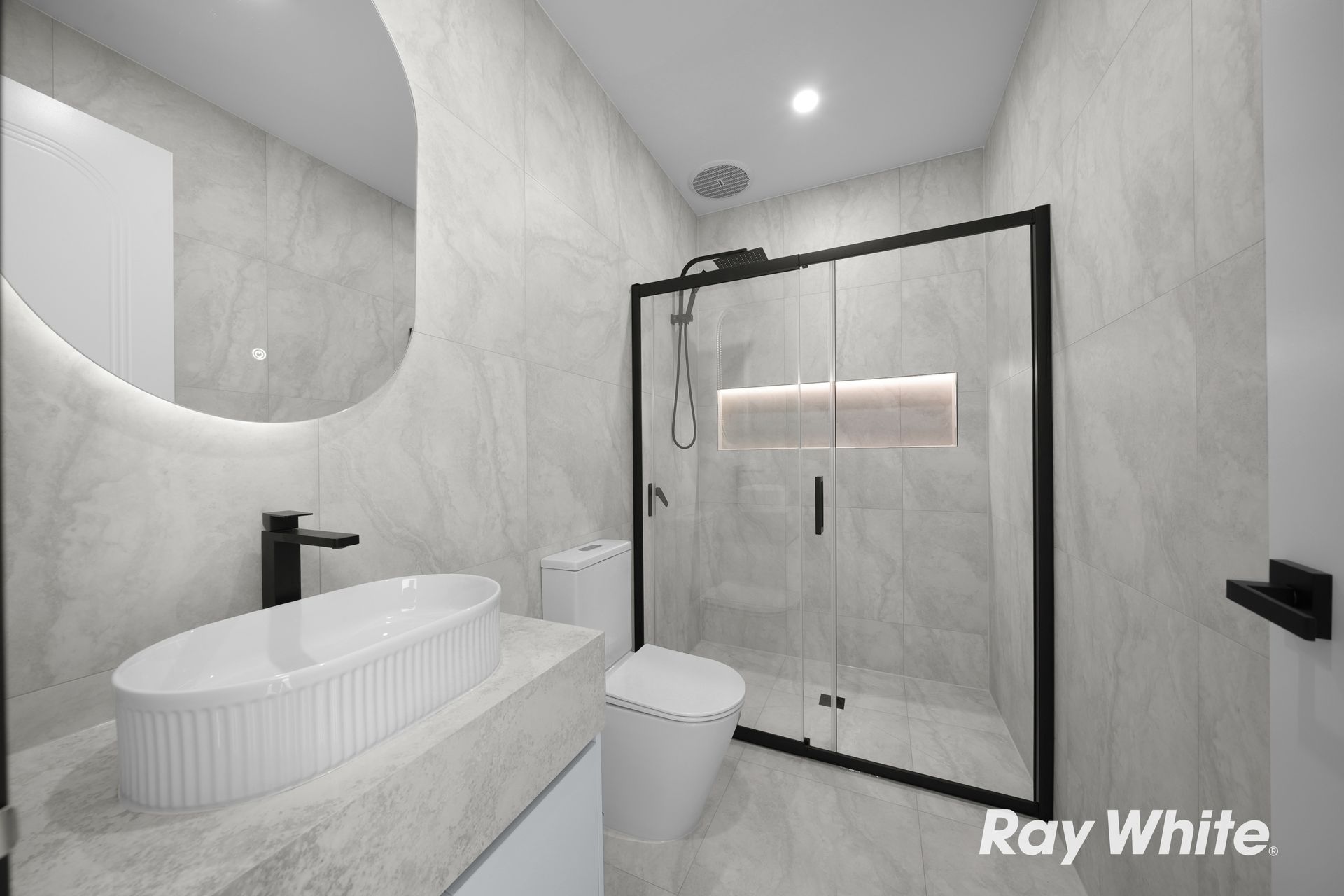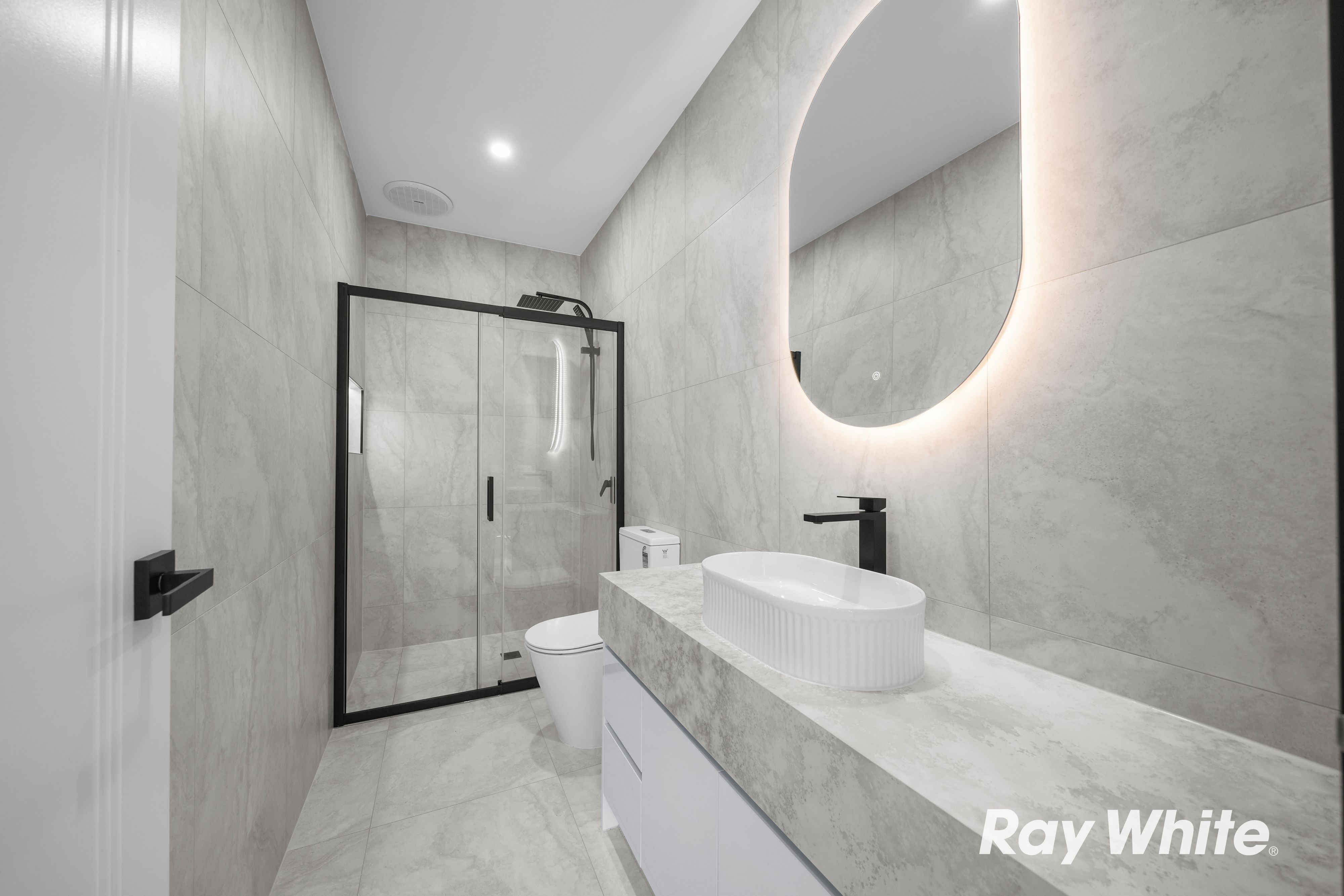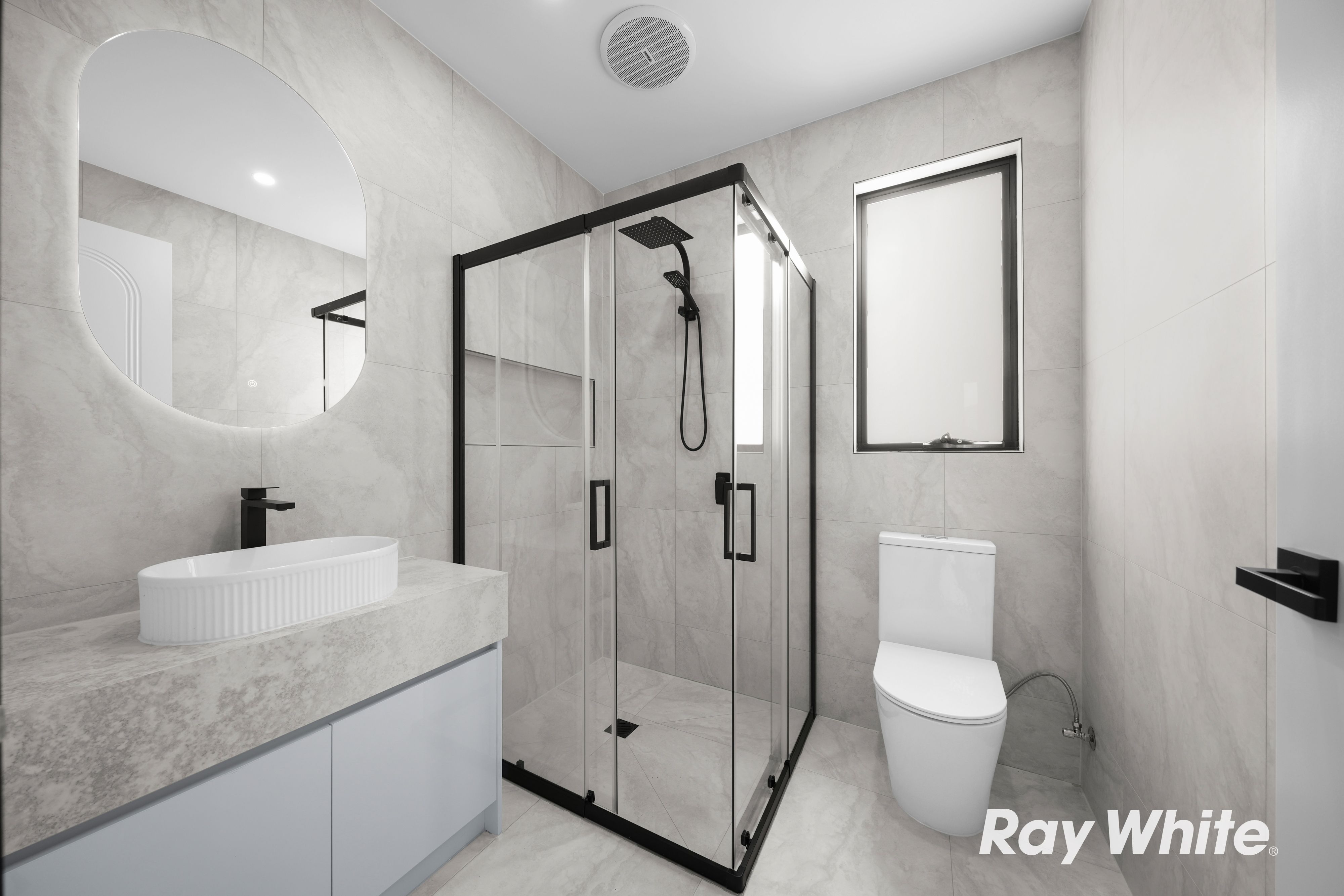 The bathrooms are equally impressive, featuring 200mm stone waterfall vanities and elegant finishes that enhance the home's luxurious feel. The master bedroom stands out with a striking raked ceiling, adding architectural character and a sense of space.