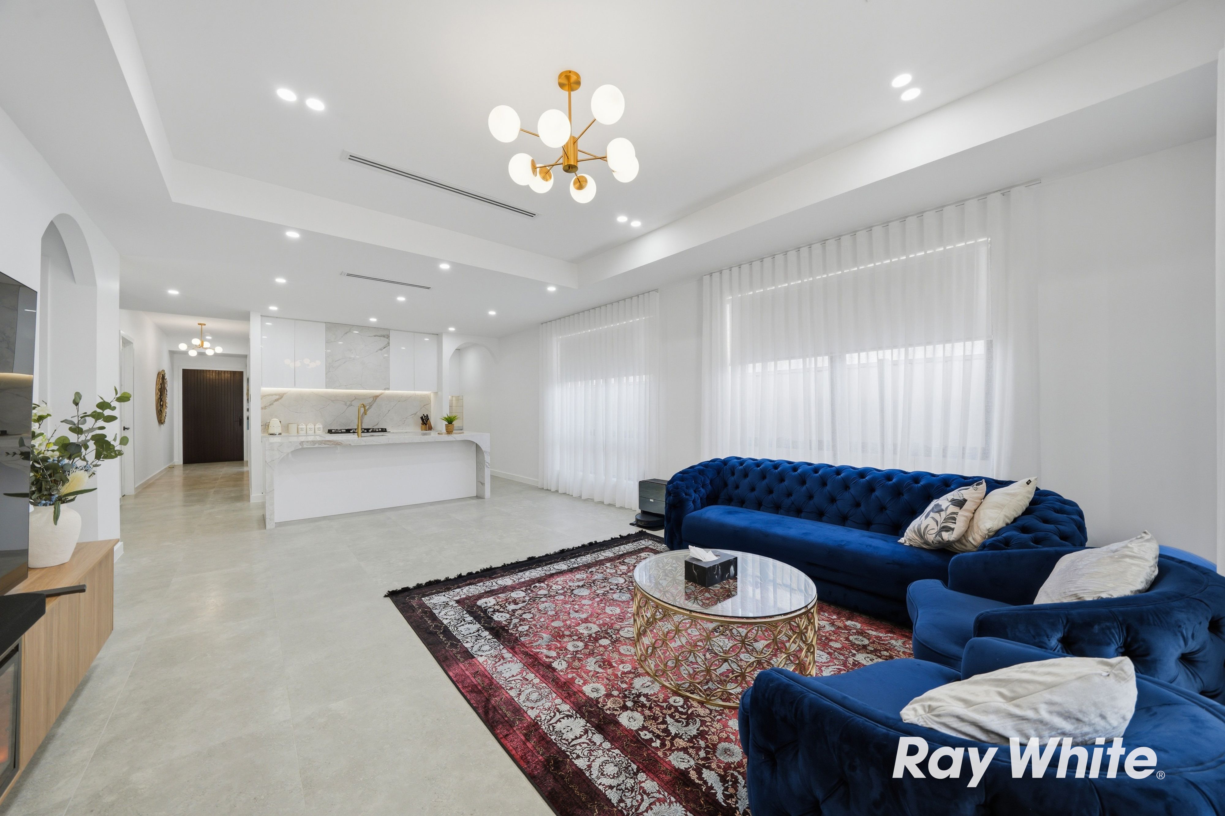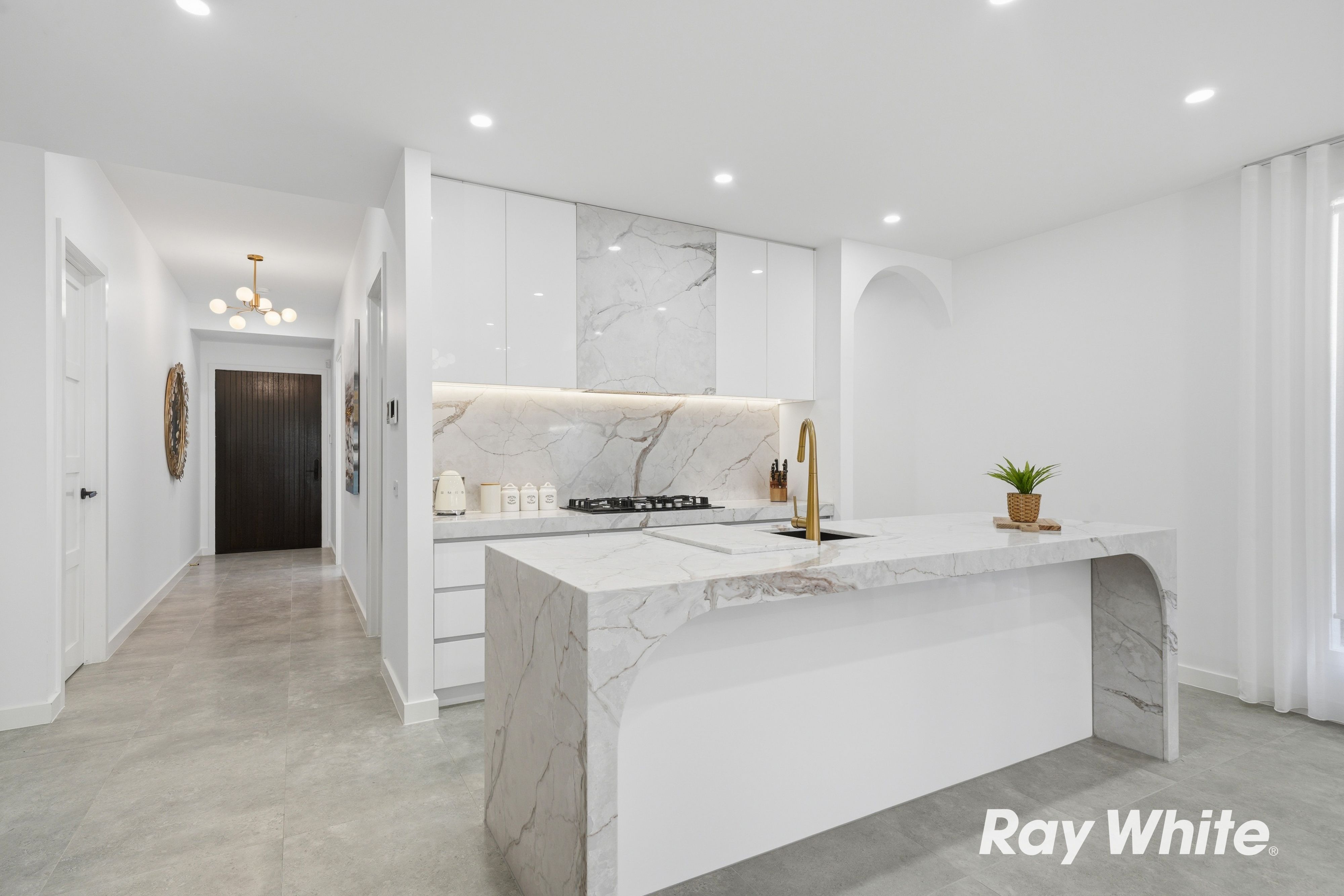 Step inside to experience high ceilings and a light-filled interior complemented by stunning 600x1200mm tiled flooring throughout the main living areas, while warm floorboards enhance the comfort of all bedrooms. The home is finished with premium marble stone surfaces throughout, reflecting quality craftsmanship and attention to detail.