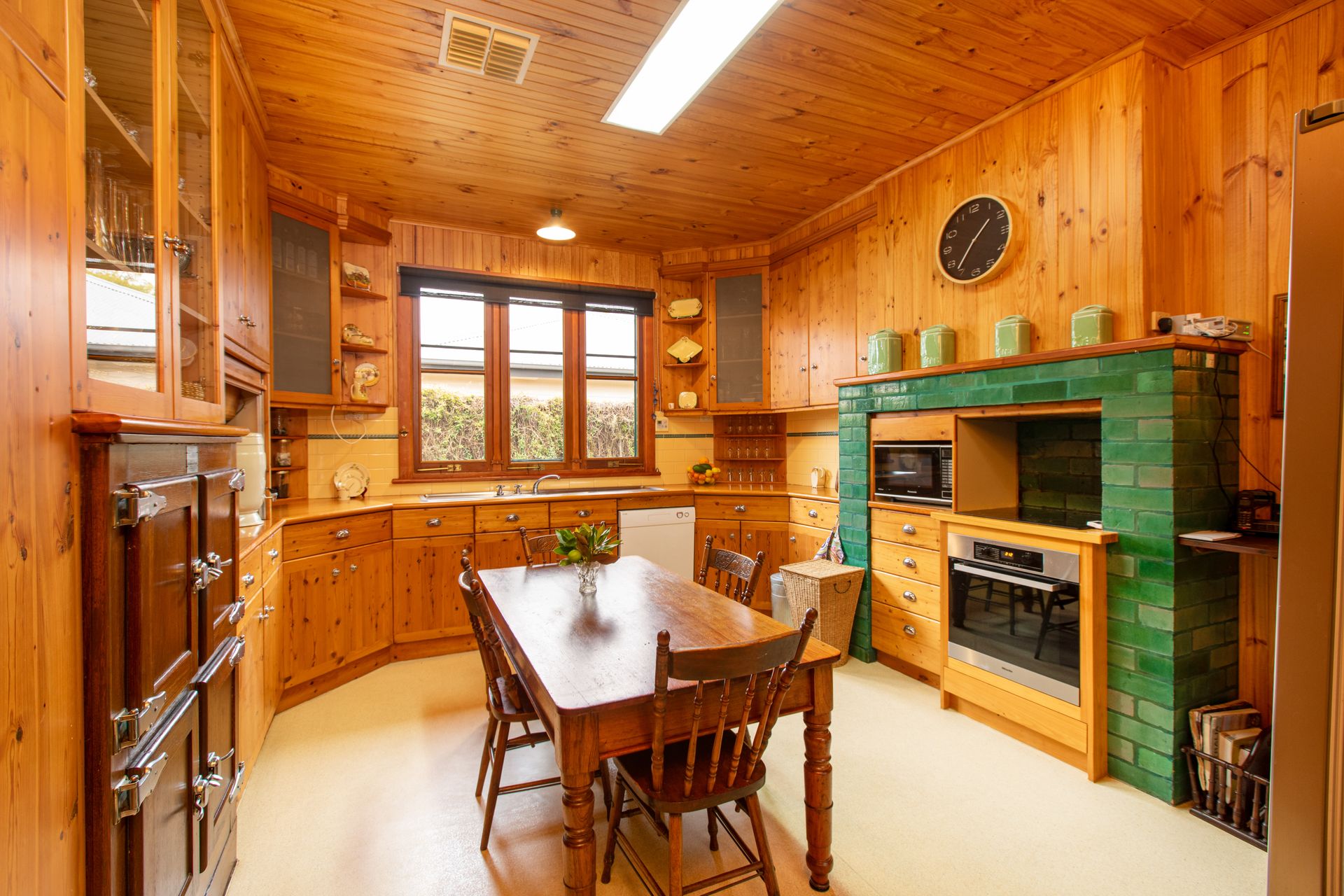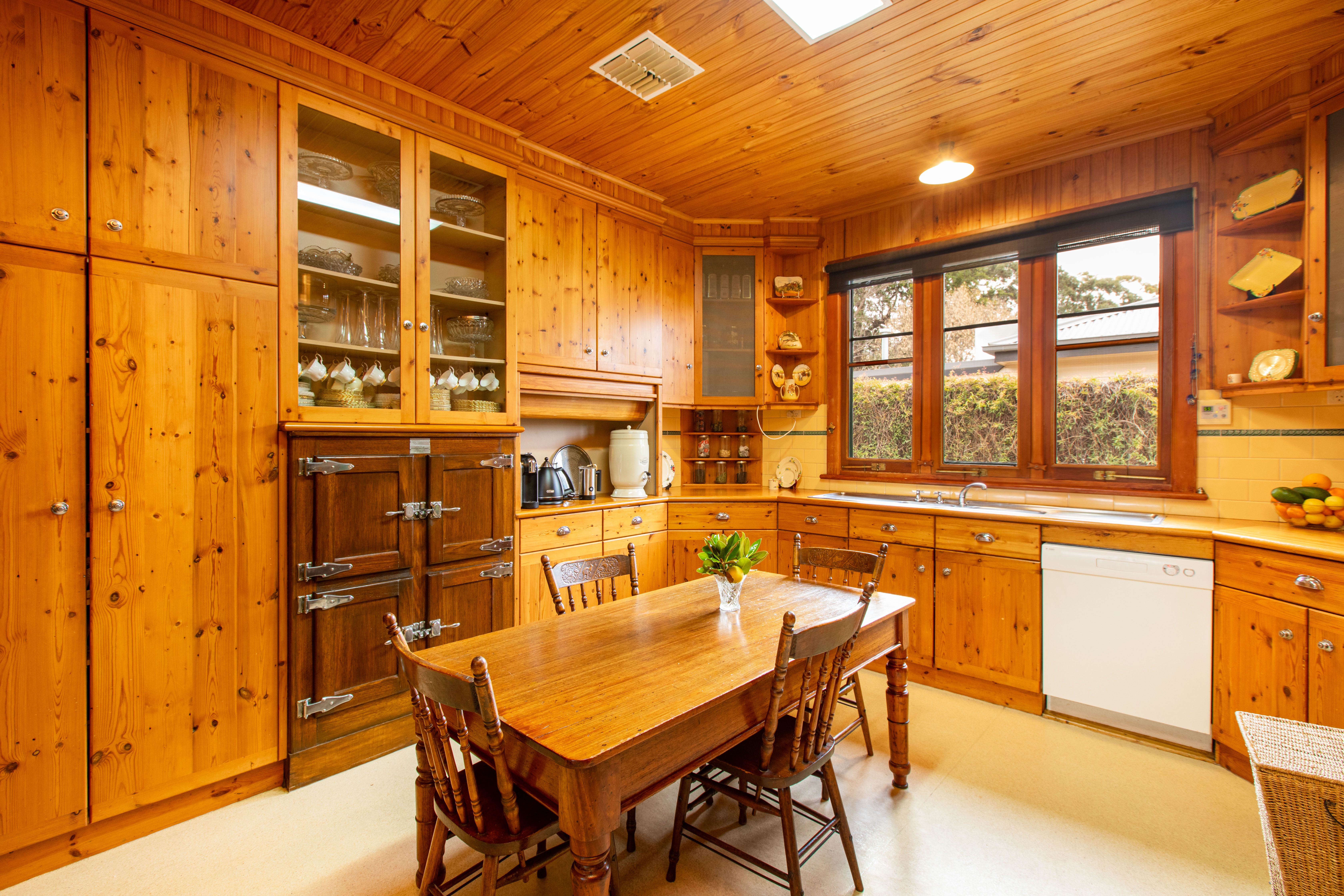 The original timber kitchen is the heart of the home and flows to the different living and meal zones. Open fire places, ducted gas heating and evaporative cooling provide for year round comfort