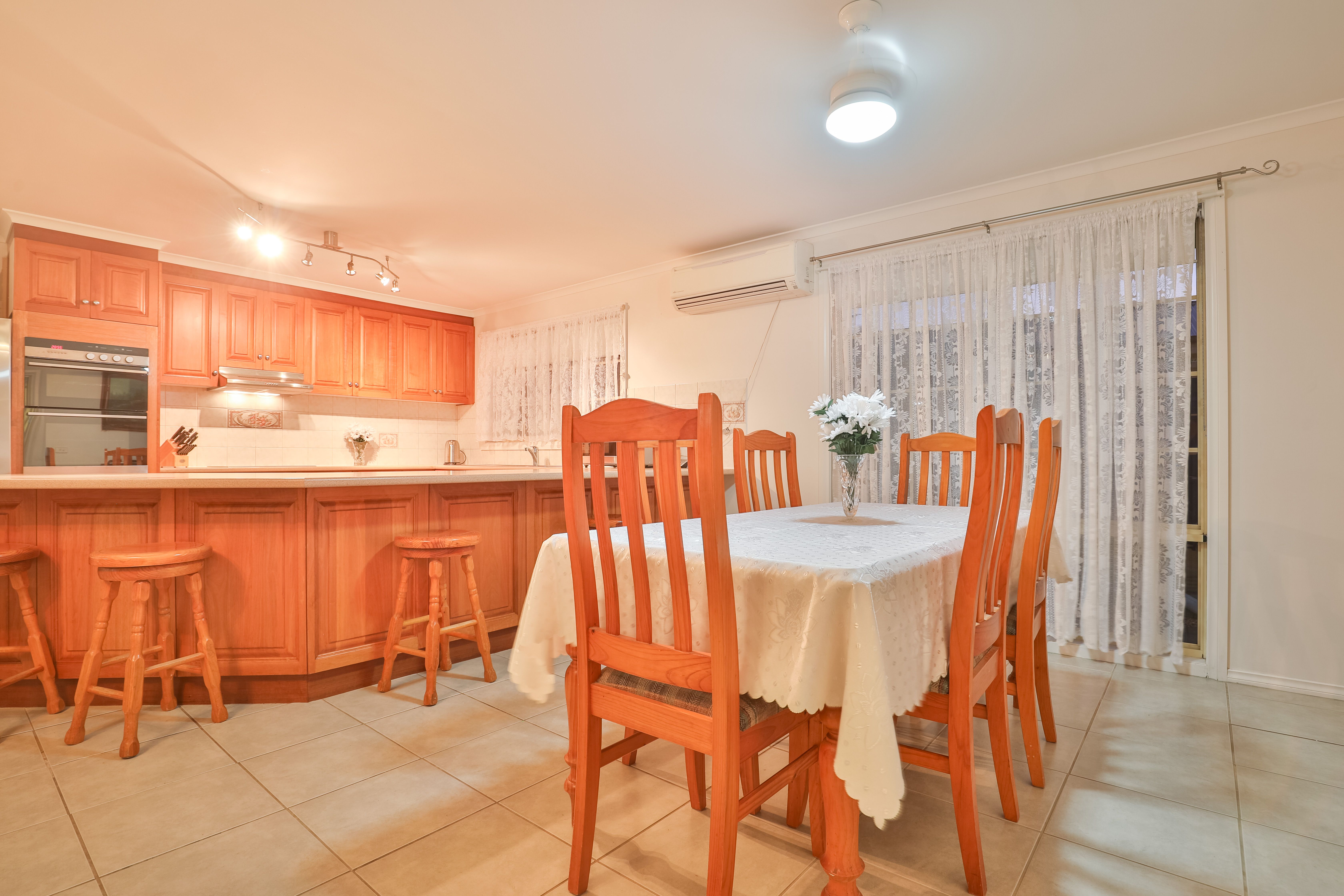 Offering four 'double bedrooms', all featuring BIR's whilst the master holds a walk in robe and en suite bathroom. Ducted evaporative cooling and gas heating services the home all year round, along with spilt system reverse cycle, all powered by the 5kW Solar Panel system.