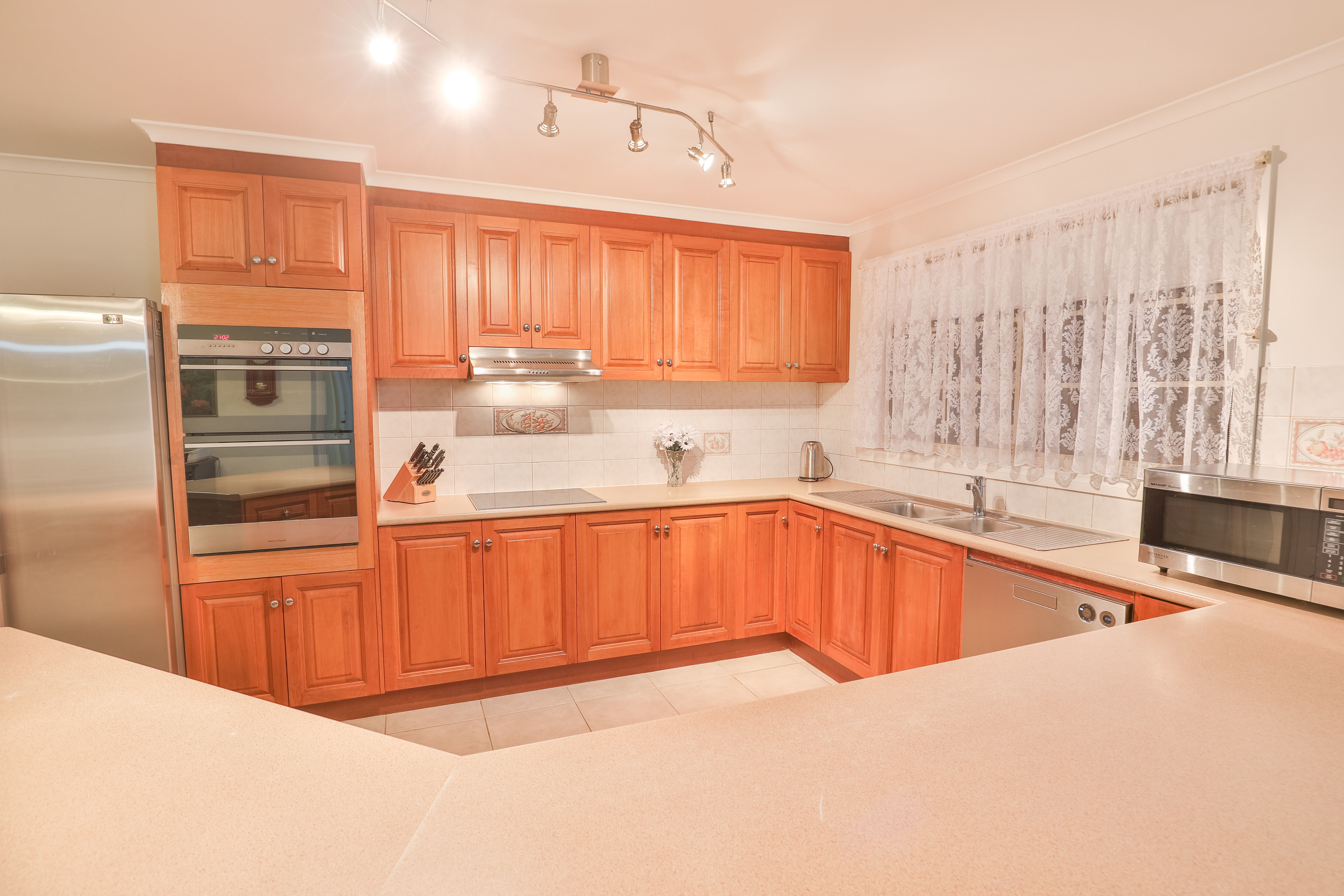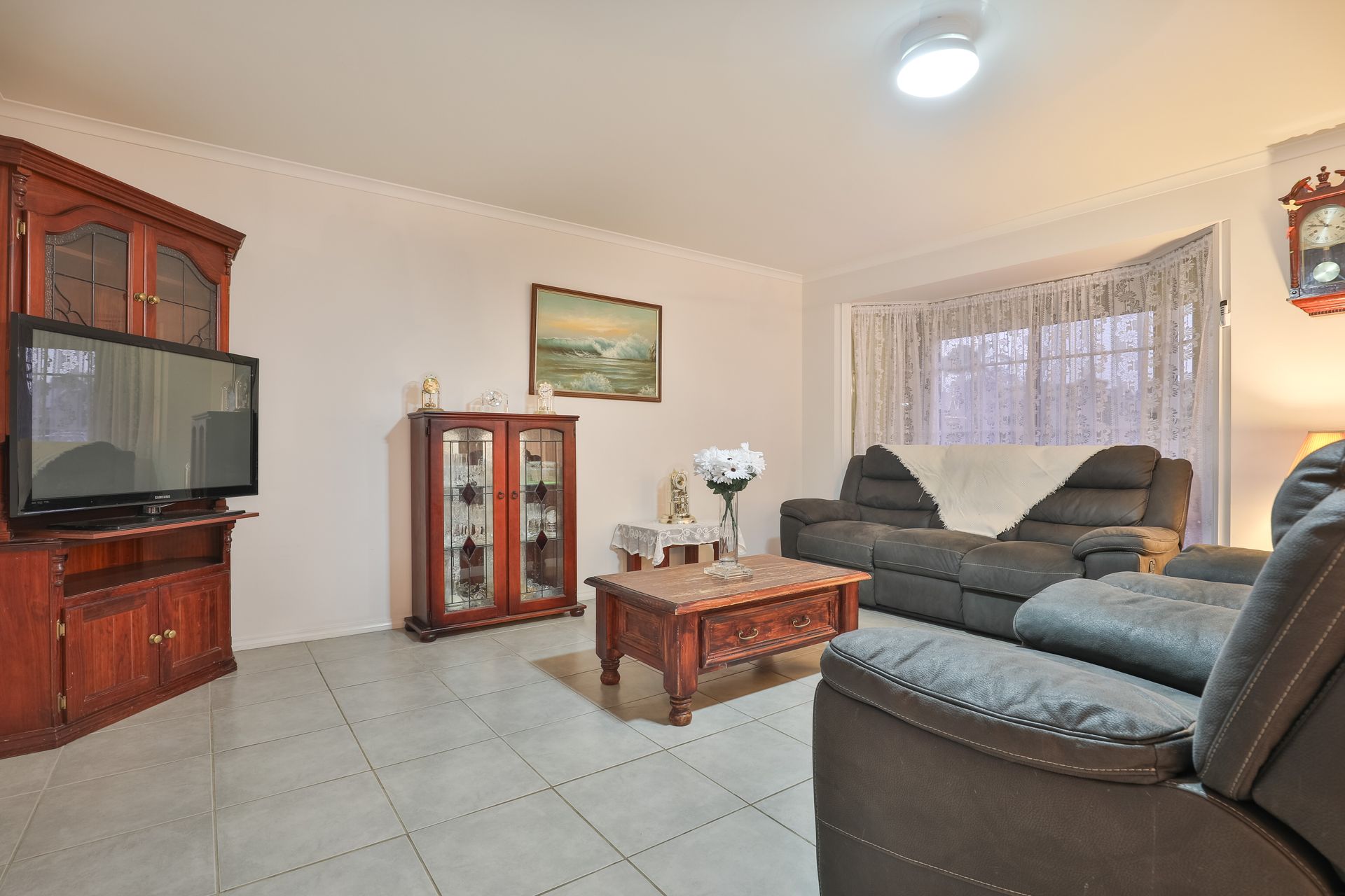 A surprisingly spacious set up, past an attractive sandstone front you'll step into a super spacious, open plan living space. This area connects all from your solid timber kitchen, holding an abundance of storage, to a tiled lounge, dining/family room.