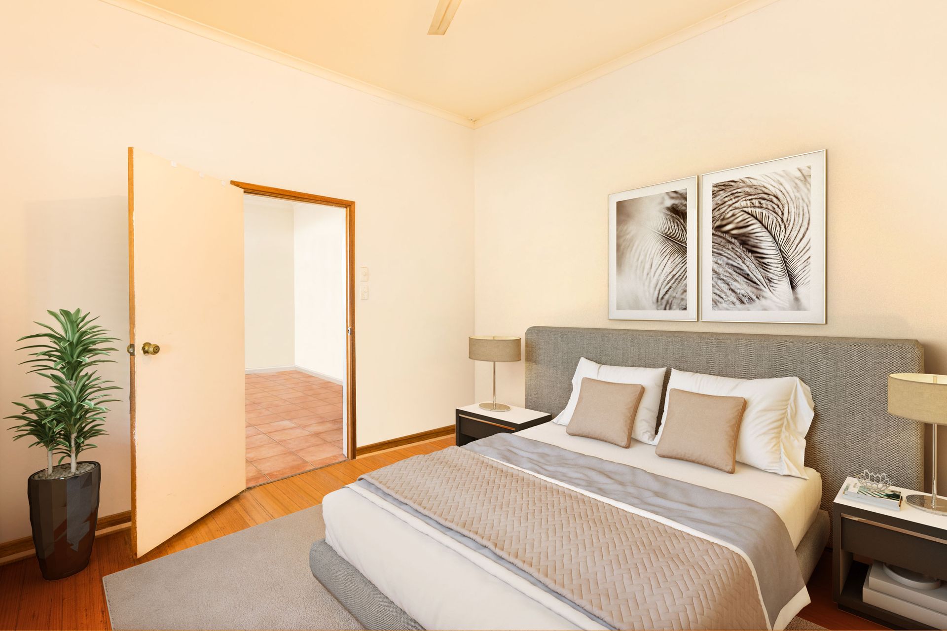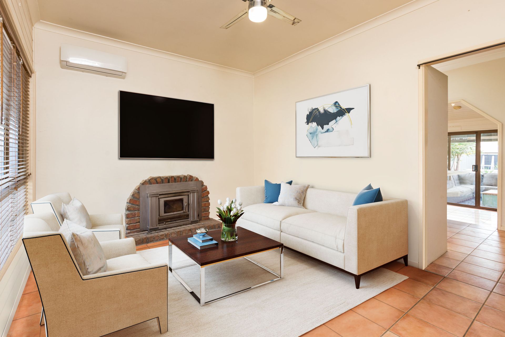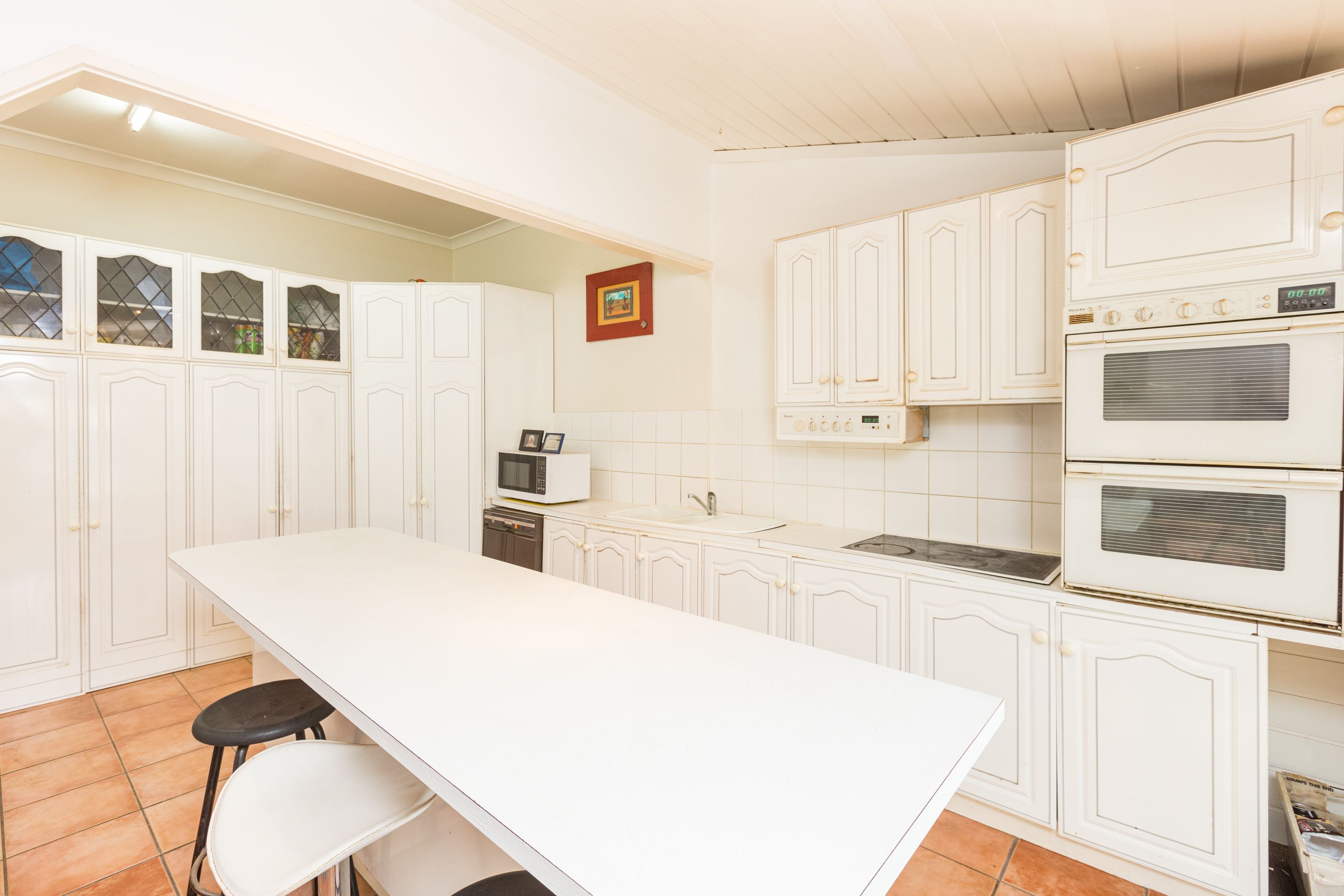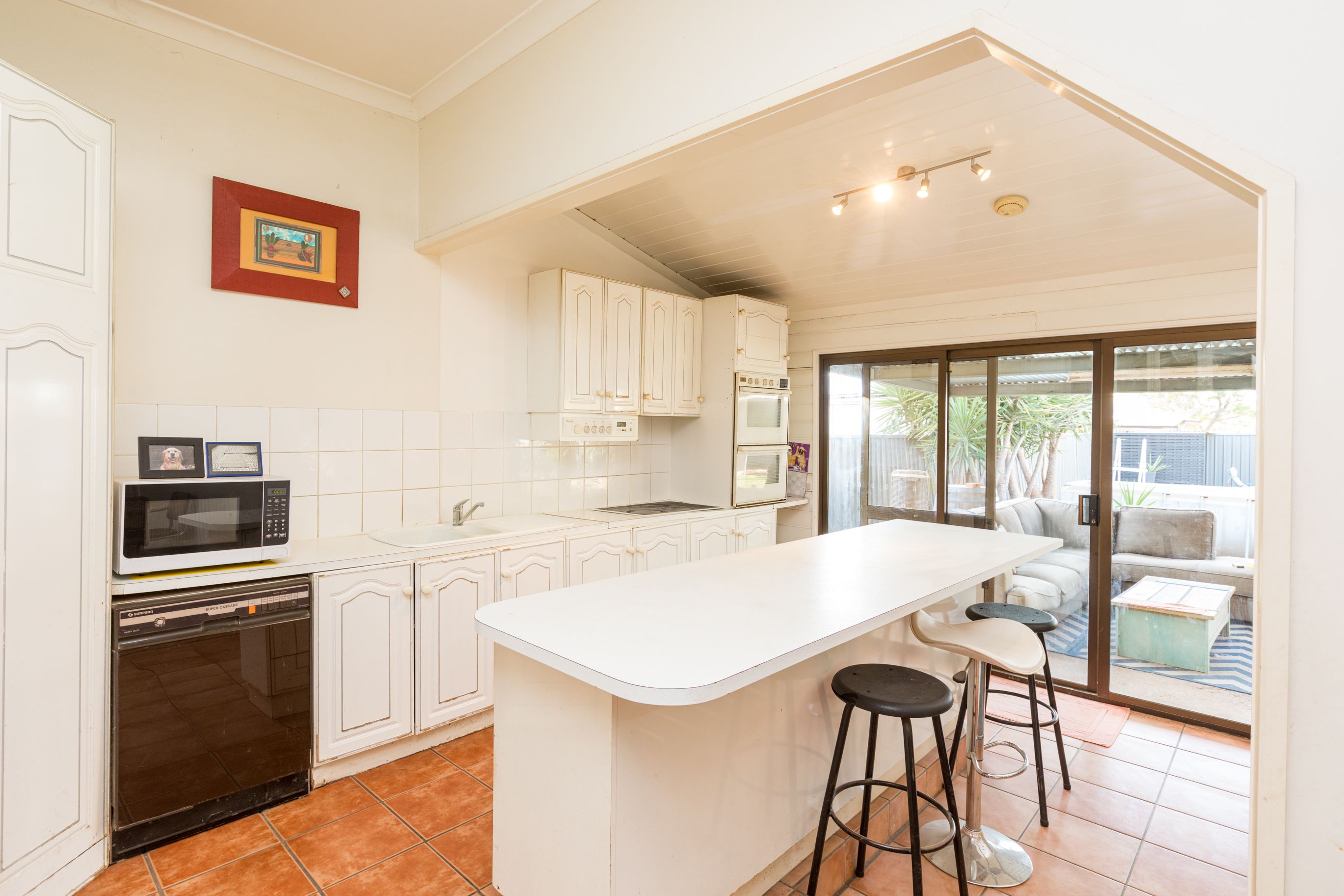 The kitchen is bright and well-equipped with a dishwasher, wall ovens and a large island ready for casual dining. When friends drop by, you can gather in the living room or step out to the covered alfresco and take in views over the yard.