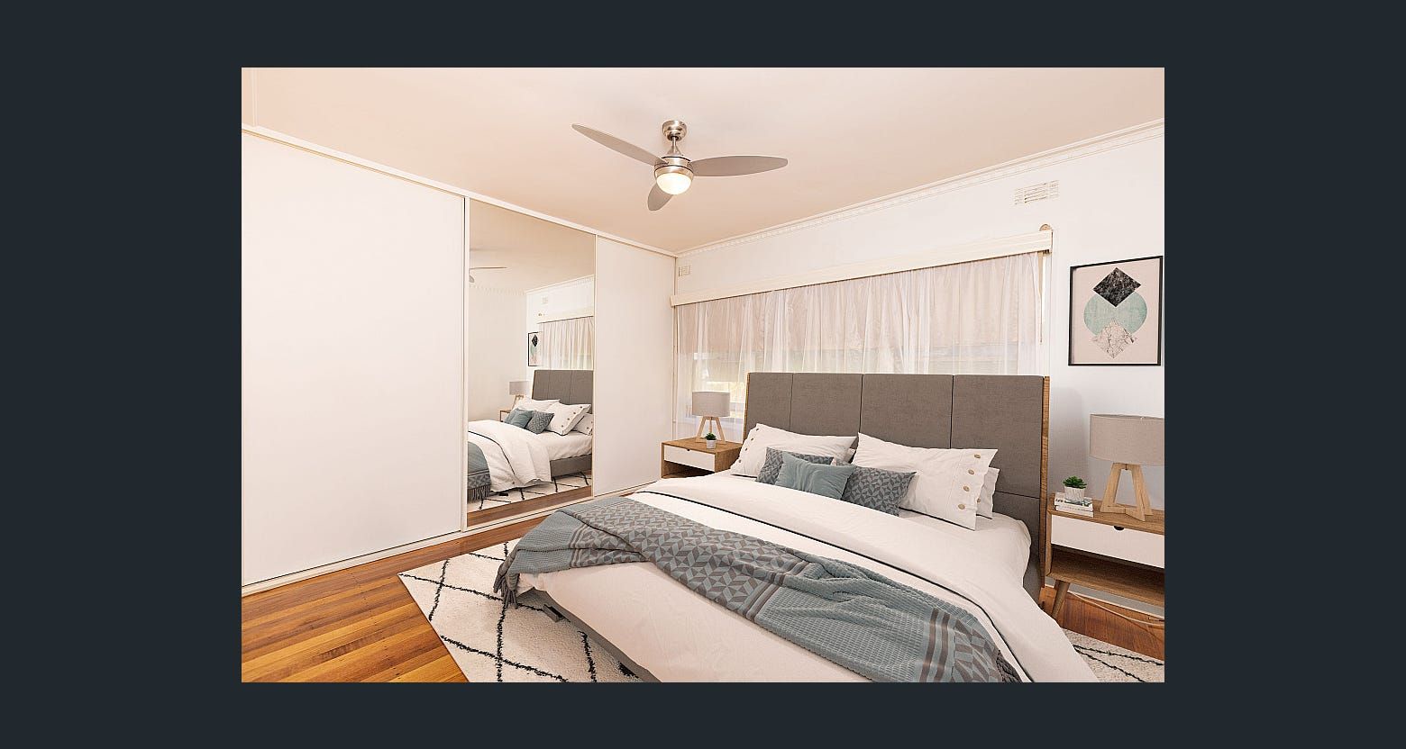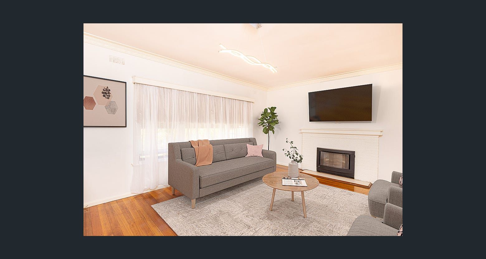A beautiful light filled lounge room with gorgeous polished floorboards throughout.