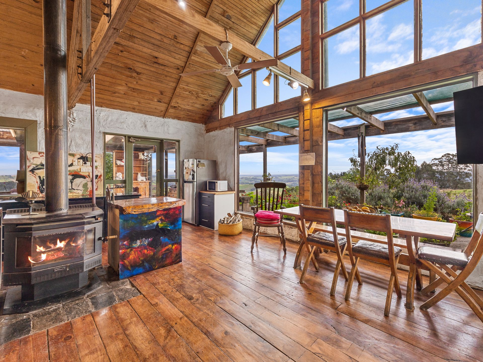 The two bedroom main homestead offers 180 degree views and has been built using timbers sourced and milled from the property itself. Polished timber floors, picture windows and mud brick walls are just a few of the captivating features of this home.