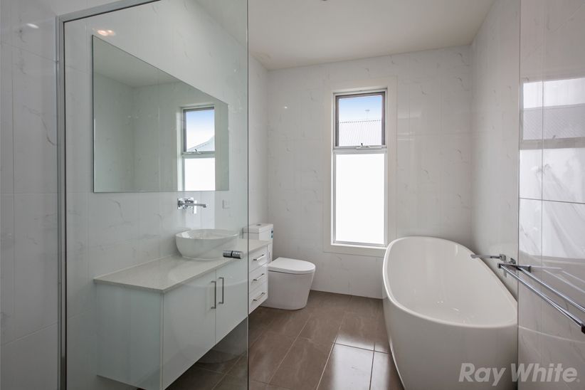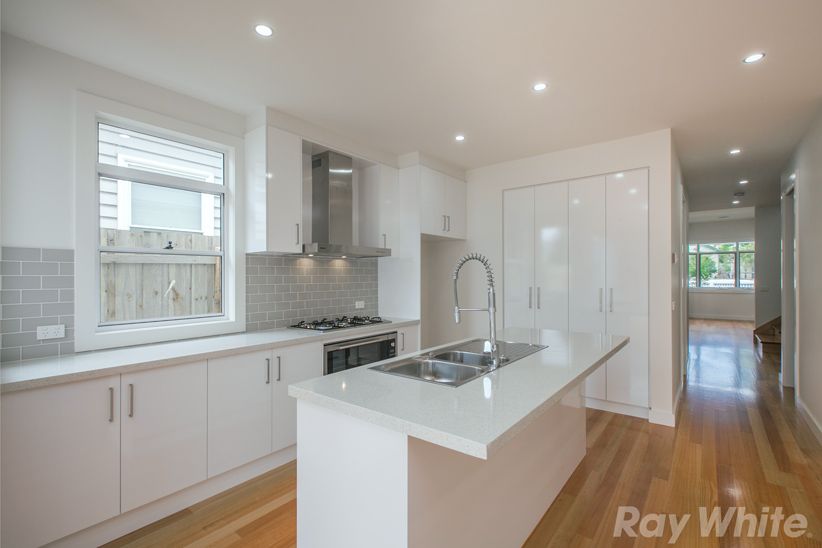Features elegant sitting room off the entry, open plan living and dining area with access to the North-facing landscaped courtyard, designer kitchen with stone bench tops and Blanco stainless-steel appliances, four bedrooms, 3 bathrooms, ducted heating, split-system air conditioners, video intercom, alarm, and double remote garage accessed from rear lane.