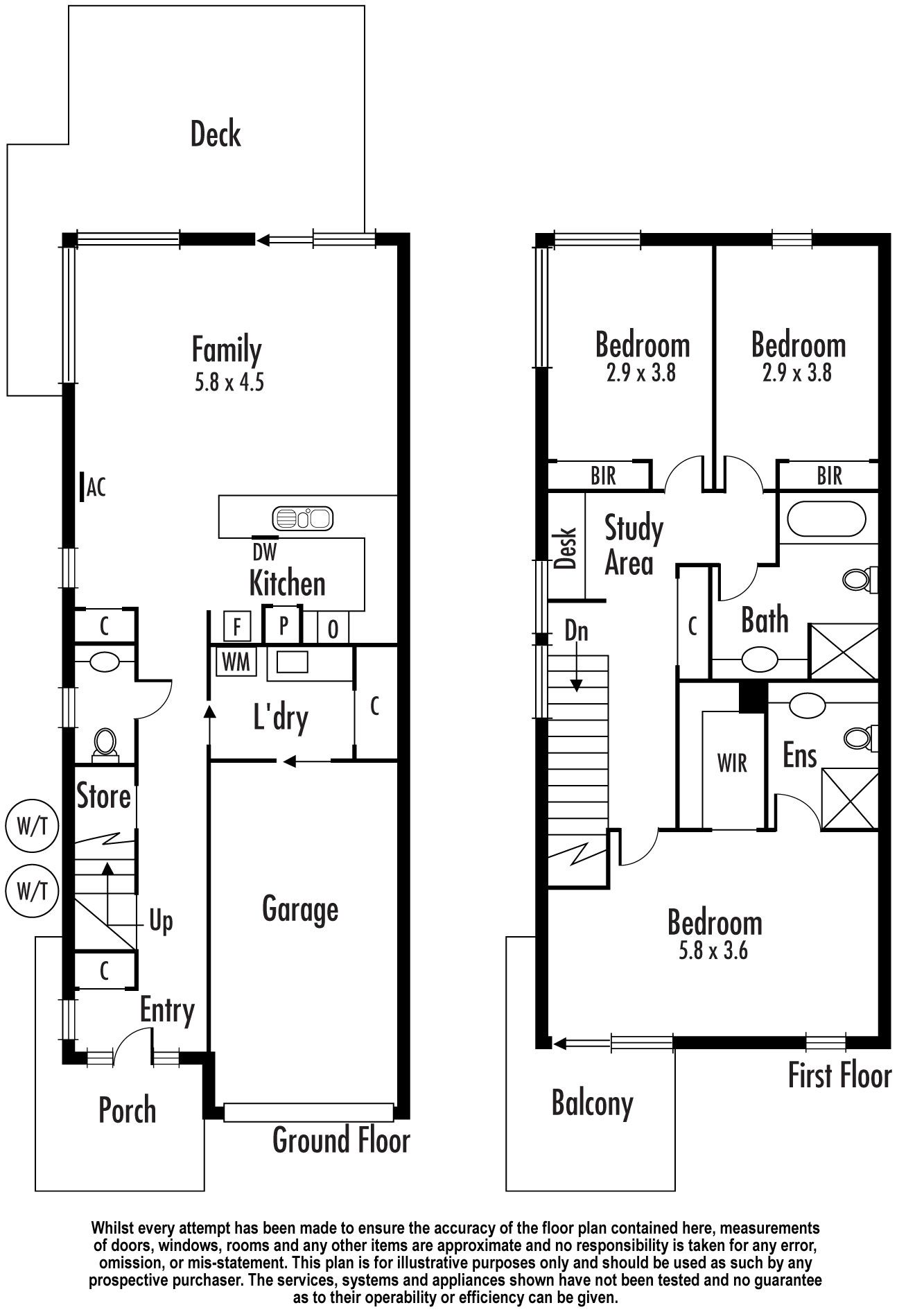 The carpeted upstairs area features a study nook with built in bench, two bedrooms with spacious BIRs & ceiling fans & the master bedroom with ensuite & large WIR. The master bathroom has a toilet, bathtub, shower & sink.