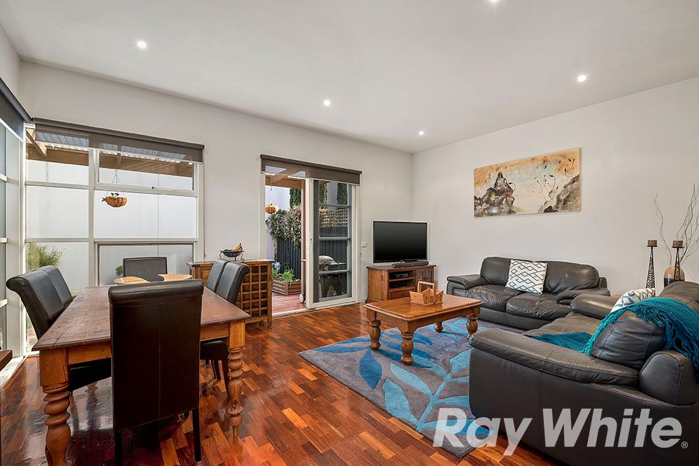 This stunning two storey three bedroom townhouse located within walking distance to the many amenities Mordialloc offers including the Woodlands Golf Course, parks, sports grounds, train station, beach & the funky Mordialloc Eatery Precinct. Offering a single lock up garage with additional car space & internal access through the spacious laundry. The front private courtyard opens into the entrance way of the home where you are greeted with a cloak cupboard & polished floorboards throughout the downstairs area. There is a bathroom with toilet & sink for convenience with more storage under the staircase. The kitchen features stone bench tops with a two drawer Fisher & Paykel Dishwasher & stainless steel appliances, & overlooks the dining & living area which opens into the outdoor entertaining courtyard area. North facing, the morning sun greets the sunlit undercover area with ample space & low maintenance gardens.
