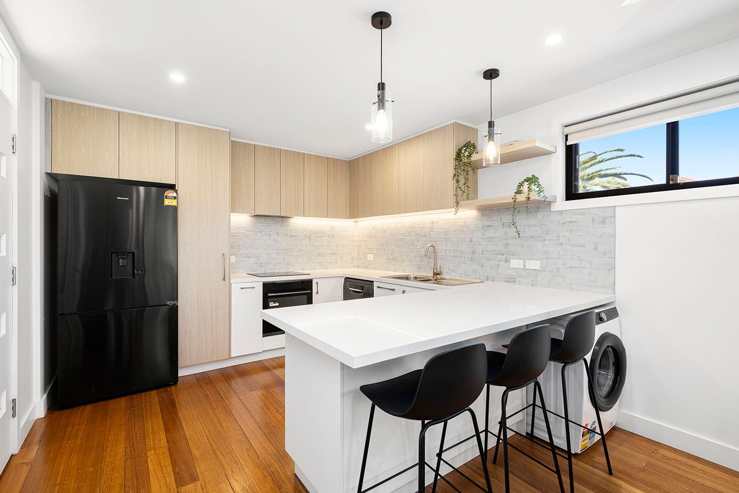 Step inside to a stunning white-washed stone kitchen, where subway tiles, Hettich cabinetry and premium Electrolux appliances (including induction cooking and Bosch dishwasher) set the tone for effortless modern living.