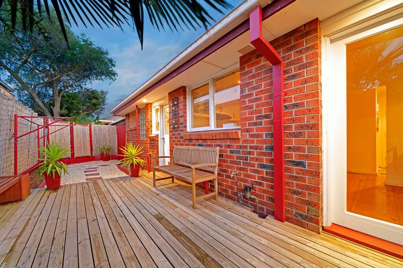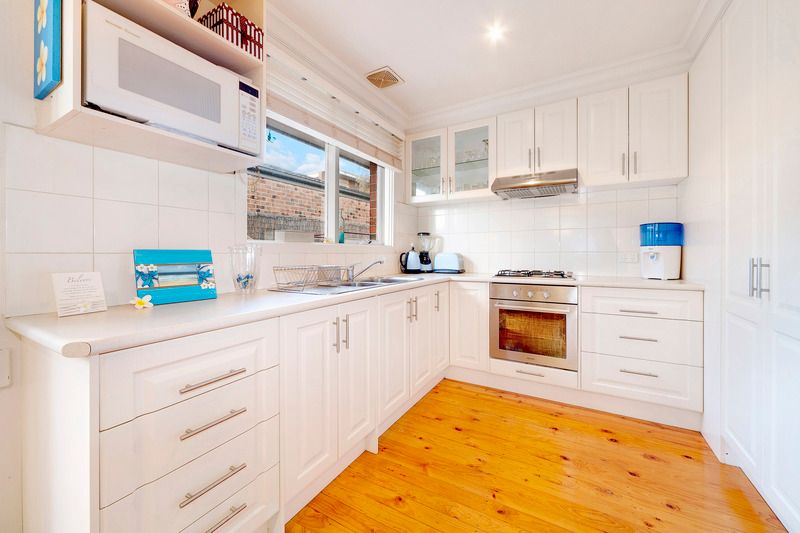 Situated in a sought after location on the high side of the street, this unit offers the opportunity to experience low maintenance living at its best. The polished floorboards lead from the entrance hall to the generous lounge with its windows overlooking the courtyard and air conditioning for summer comfort. Conveniently adjacent is the stylish kitchen with ample cupboard space and meals area. Both bedrooms feature built in robes with the main having direct access to the fully tiled bathroom. Entertainers will love the recently renovated outdoor area lined with bamboo screens and featuring built in bbq and timber deck leading to a tranquil area of white stones. All this PLUS ducted heating, 2 car accommodation and the convenience of shopping centre, train, schools and beach all nearby.