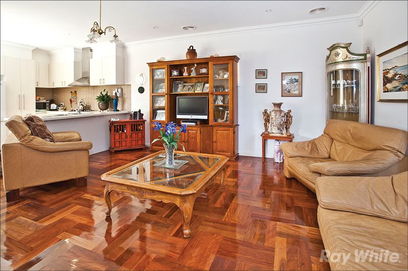 Making a memorable impact this contemporary double storey streetfront townhouse offers spacious proportions, an elegant interior and an exceptional low-maintenance lifestyle, set in the desirable MWSC catchment area. Enticing to families and professionals alike, parquetry flooring flows seamlessly through an open plan layout with spacious living merging with a contemporary Stone kitchen and meals area, with sliding doors opening out to a private entertaining courtyard enjoying northerly light. Upstairs is a dedicated sleeping zone with 2 robed bedroom, one with direct access to a luxurious bathroom while the robed master bedroom is privately zoned downstairs complete with ensuite. Finished to the highest standard with powder room, ducted heating and cooling, security alarm, water tank, double garage and stunning timber staircase, superbly located a short walk to Syndal Station, Syndal shops, Wesley College moments to The Glen.