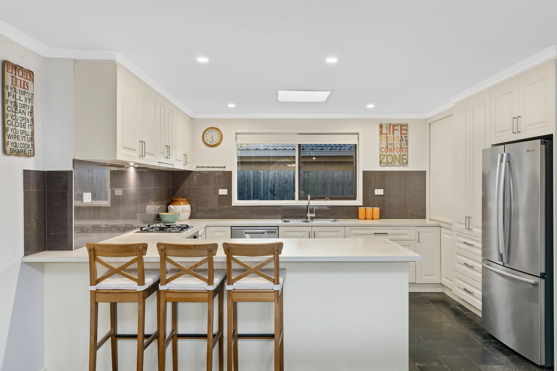 Relishing a wonderful relationship between inside and out, this spacious bowl of court home delivers a variety of living spaces and represents a haven of family enjoyment in the coveted Haverbrack Estate. Advantaged by updated carpet and a built-in fireplace, the formal lounge and dining room provides a comforting tone with an effortless flow through to the casual meals/family room and kitchen boasting a Blanco gas stove, Miele oven and Fisher & Paykel dishwasher. Creating entertaining ease, the home includes a rumpus room for cooler weather gatherings plus a splendid outdoor entertaining zone that leads out to the established backyard. Set on the ground floor are two of the four bedrooms, including a master bedroom with his/her built-in-robes and renovated ensuite, while the two upstairs bedrooms are accompanied by an ensuite effect bathroom and retreat with balcony boasting beautiful park aspects. A fabulous study ensures the home is suited to the modern family, with extras including a third bathroom, separate toilet, laundry, excellent storage, ducted heating, split system air conditioning, garden shed plus a double garage. Situated in a popular location, close to Mulgrave Primary, Nazareth College, reserves, playgrounds and walking trails, Waverley Gardens Shopping Centre, buses plus Monash and EastLink Freeways.