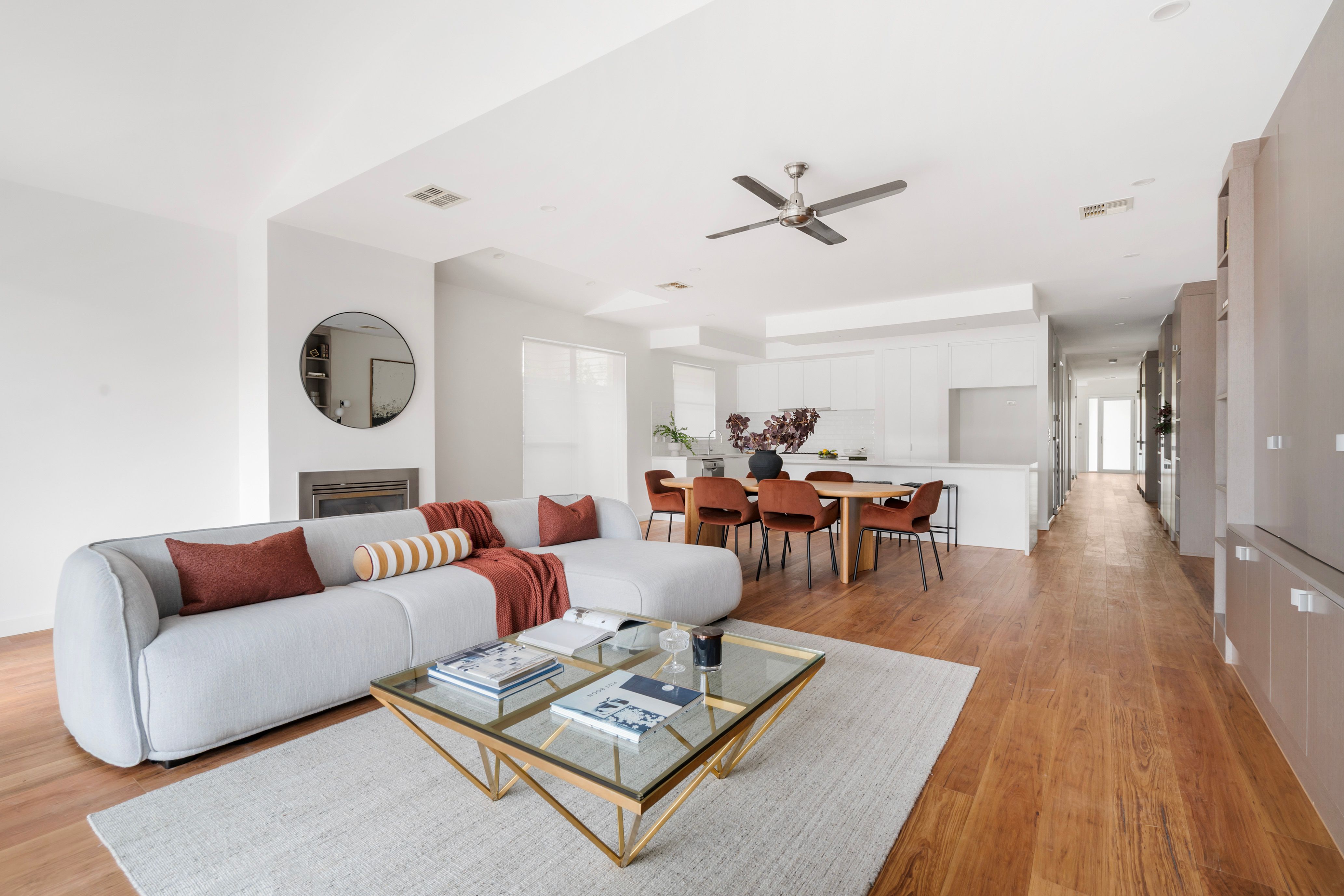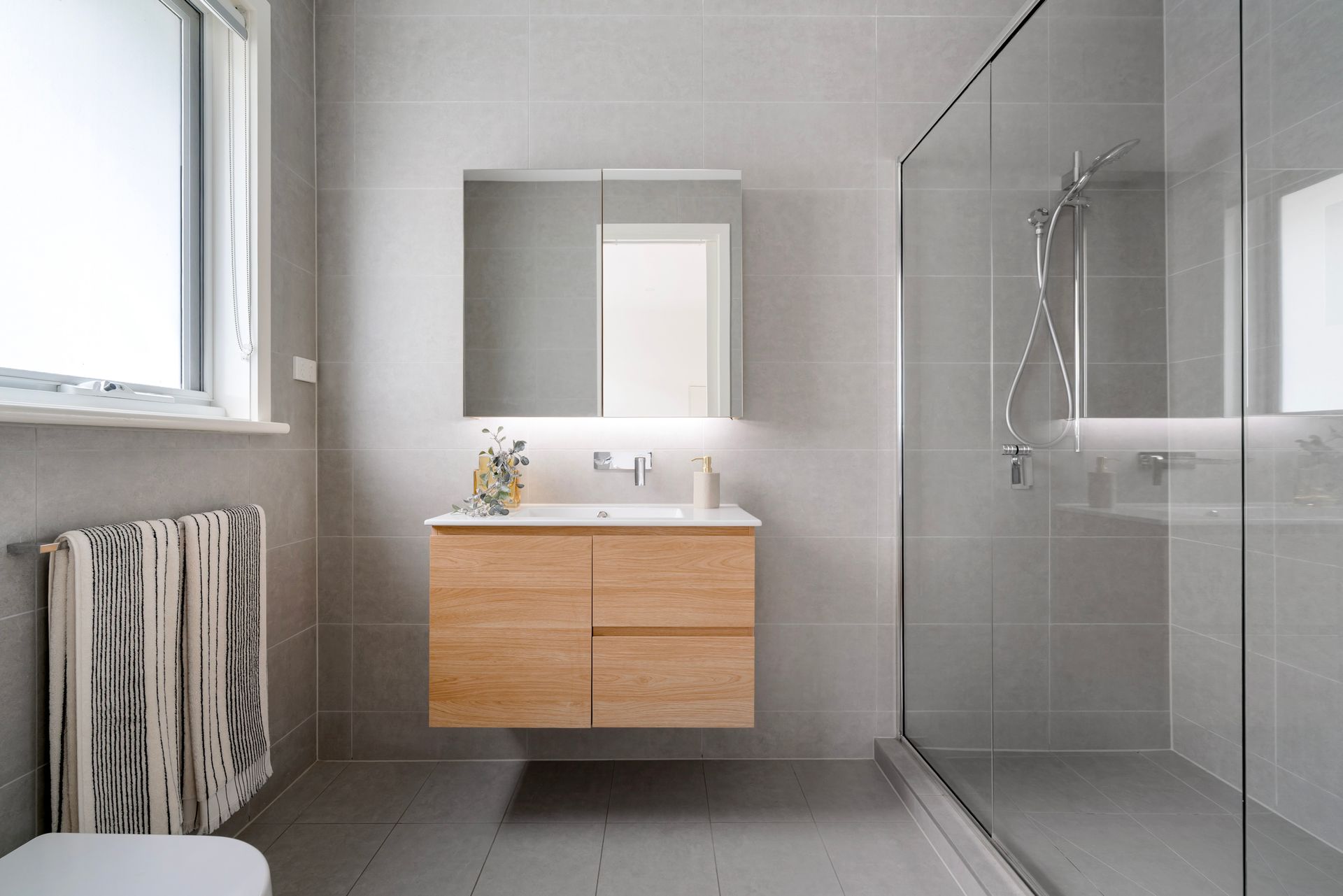 The double vanity family bathroom confirms the focus on quality that defines this home, further illustrated by ducted heating and cooling, polished floorboards, downstairs laundry and separate powder room.