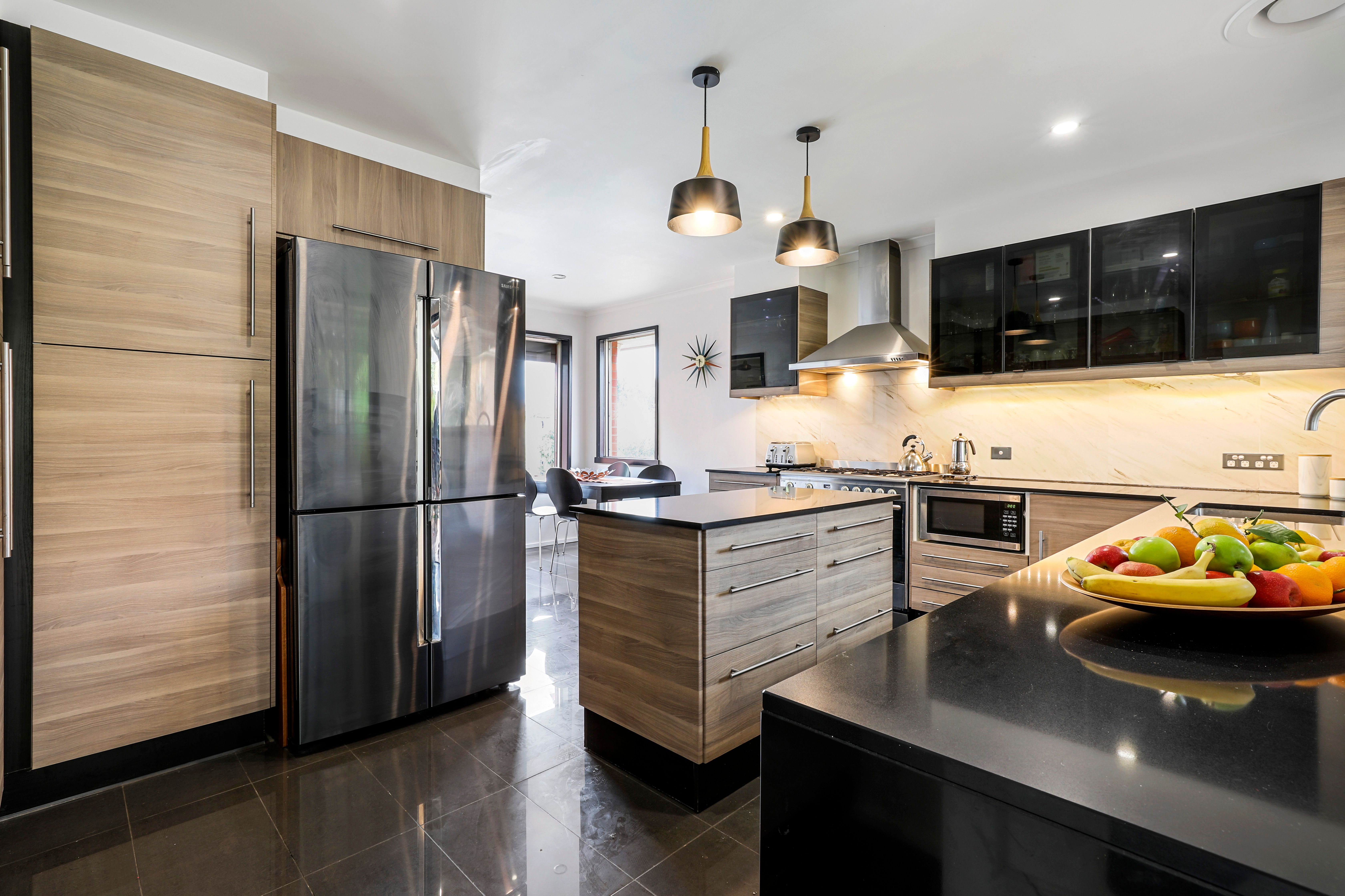 • Gourmet kitchen with stone bench-tops, marble splash-back, quality joinery, soft close cupboards, under cabinet lighting, large pantry, stainless steel appliances, moveable island bench and European style laundry facilities