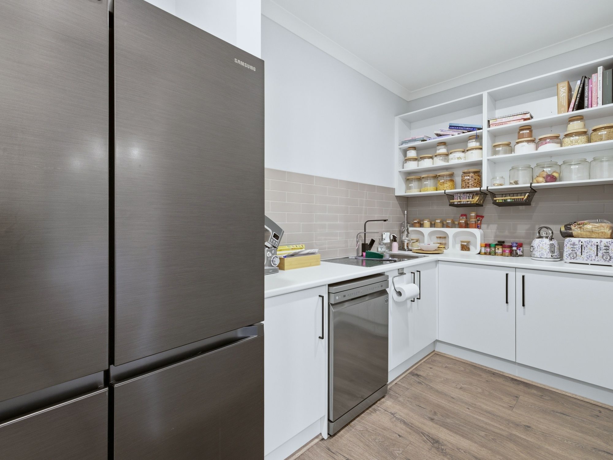 Moving deeper into the residence, the floor plan opens up into an expansive heart where the kitchen, meals, and family areas blend seamlessly. This kitchen is a chef's dream, featuring stone benchtops and high-quality appliances including its own dishwasher, but the real surprise lies behind the scenes in the butler's pantry. This secondary workspace is a rare find, equipped with an additional dishwasher, a second sink, and extensive open shelving, making it the perfect staging area for entertaining or keeping the main kitchen clutter-free.